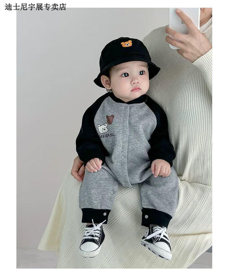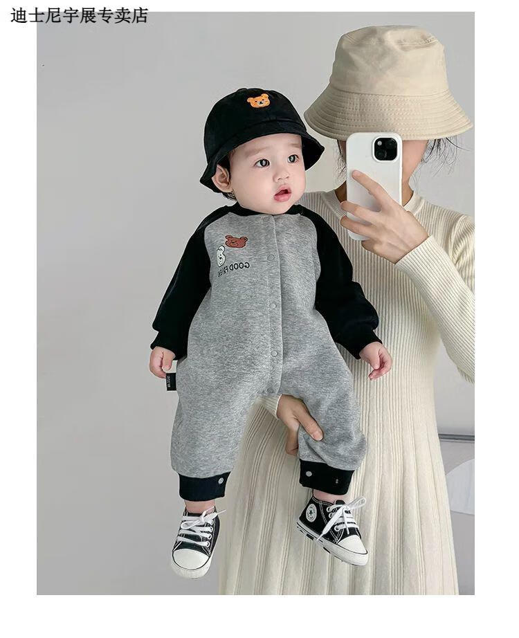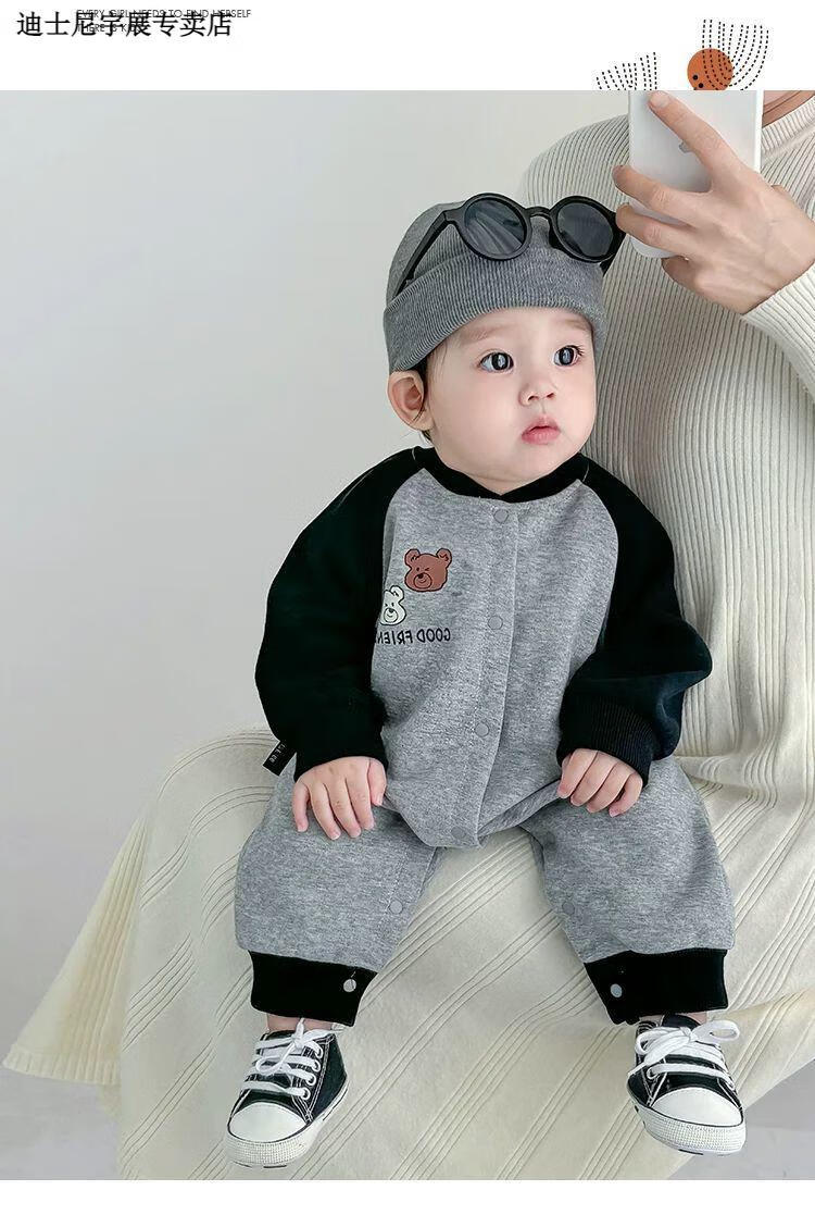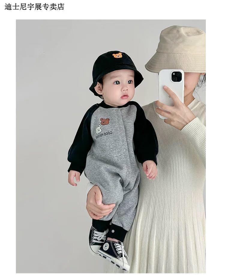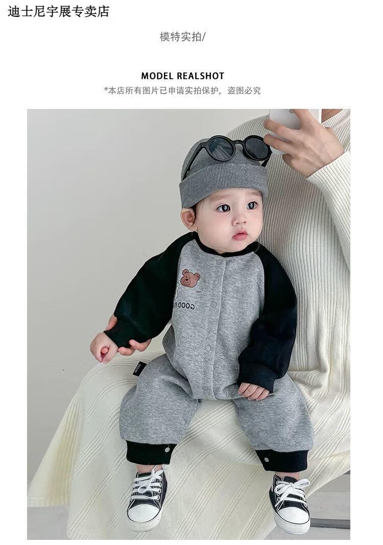 G.duck2024婴儿衣服小熊连体衣早初秋季款装男女宝宝超萌洋气ins哈衣 灰色 100cm