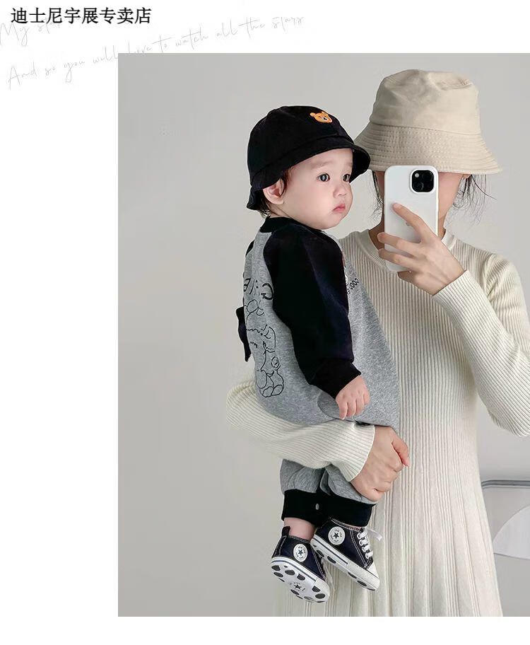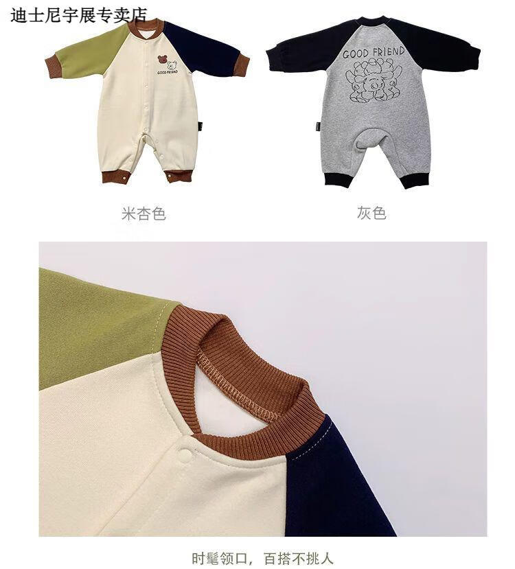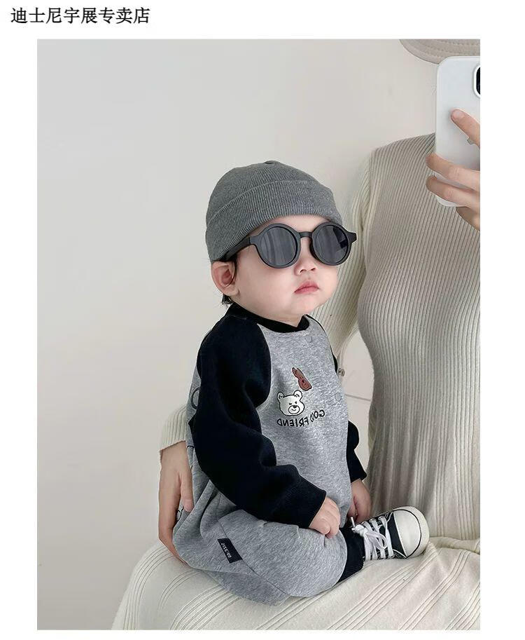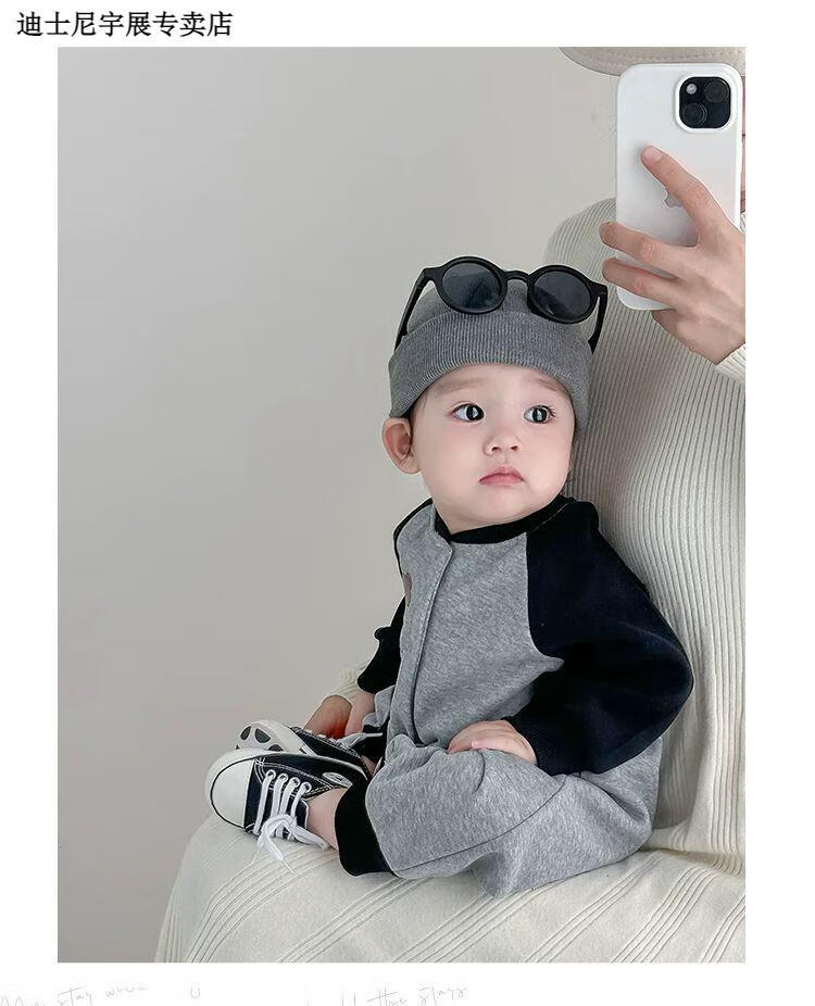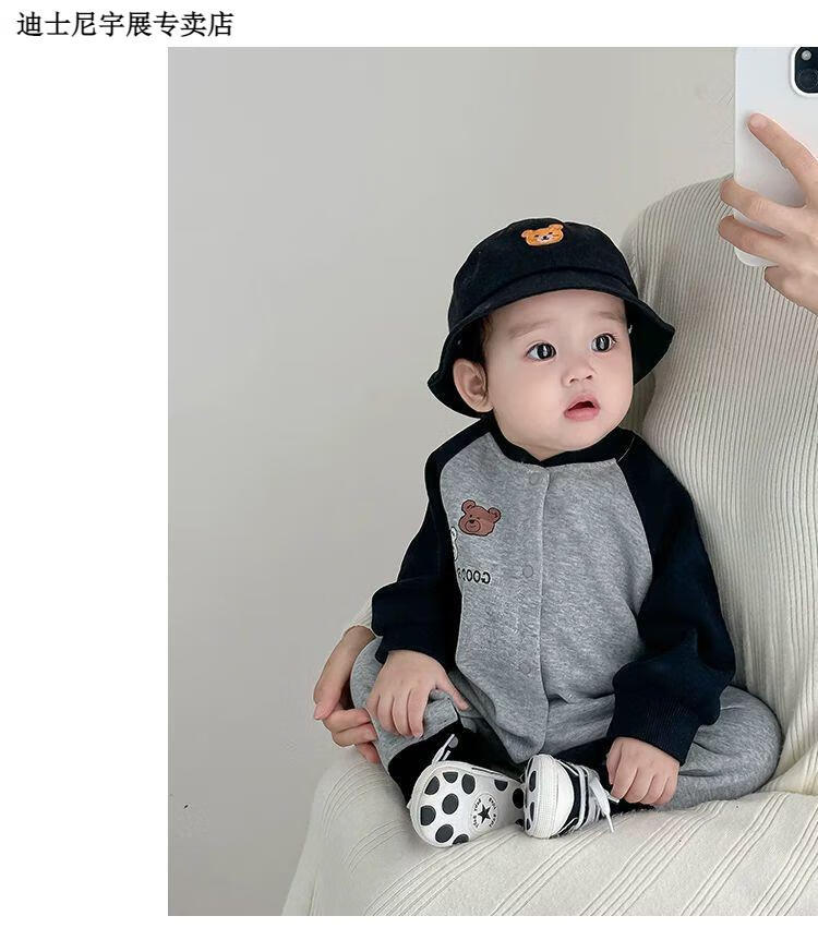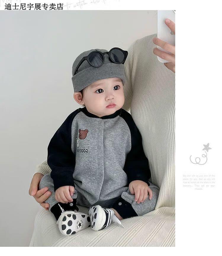 G.duck2024婴儿衣服小熊连体衣早初秋季款装男女宝宝超萌洋气ins哈衣 灰色 100cm