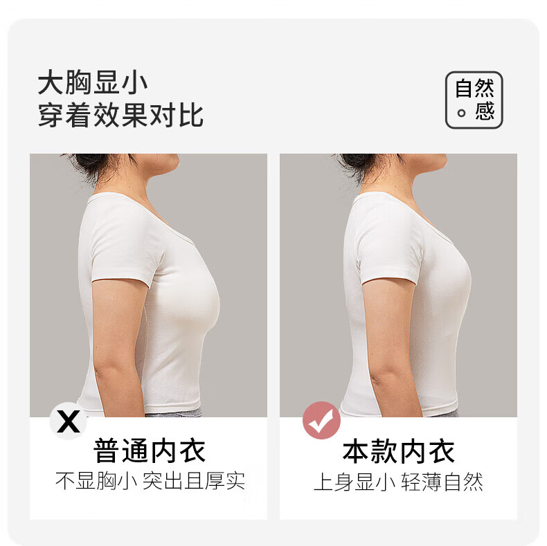 千奈美无痕内衣女大胸显小侧收副乳薄杯无钢圈聚拢调整型运动文胸 白玉灰 75B C