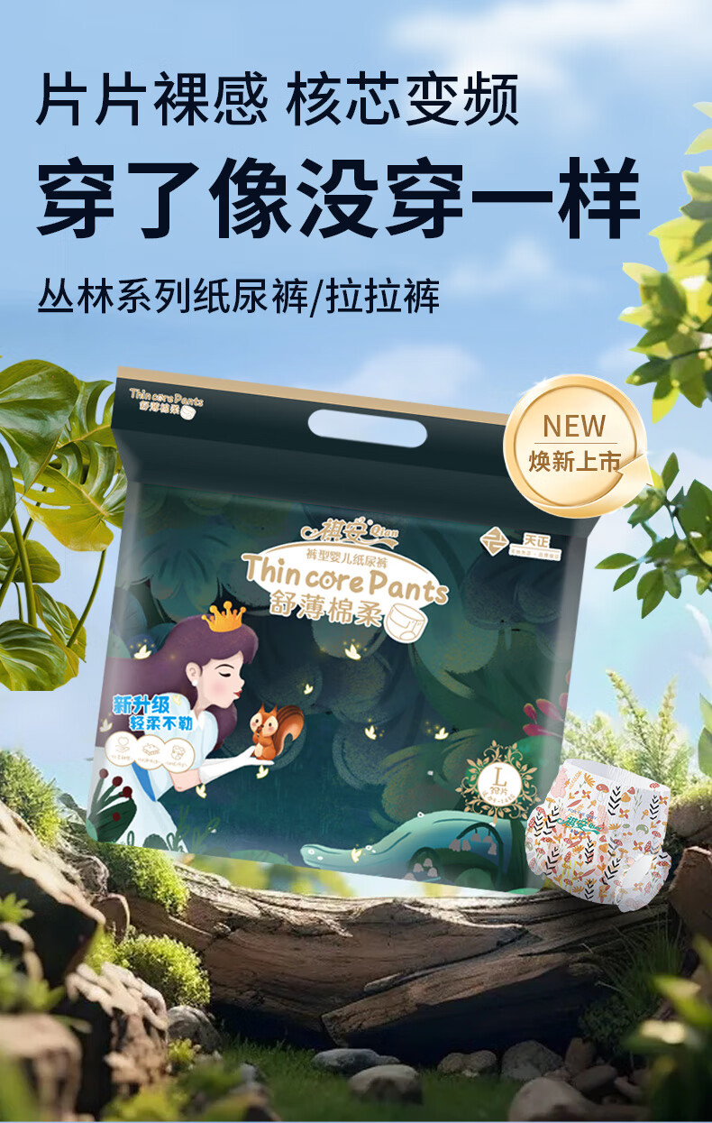祺安【专属回购】丛林系列婴儿拉拉裤不勒腰宝宝尿裤成长裤3包装 丛林三包装拉拉裤XXXL码 90片