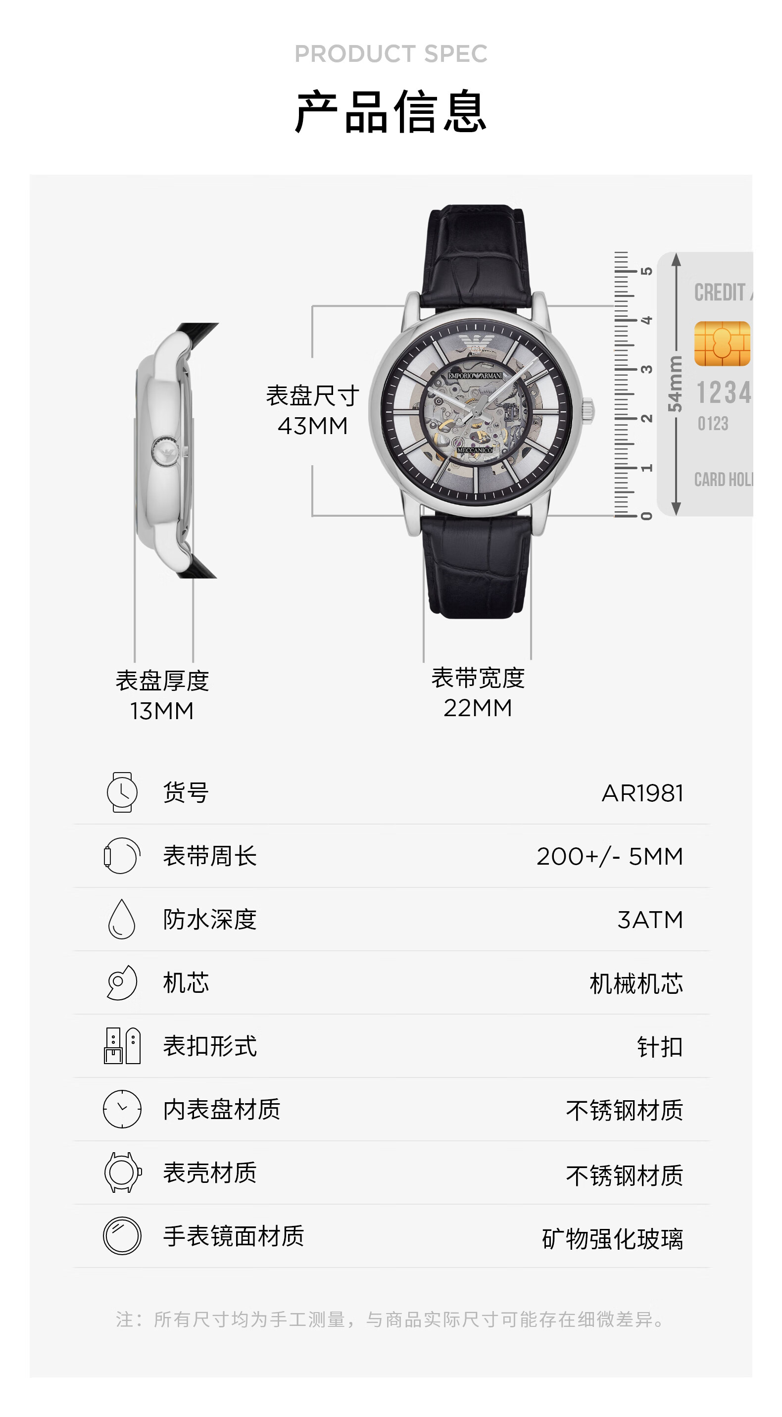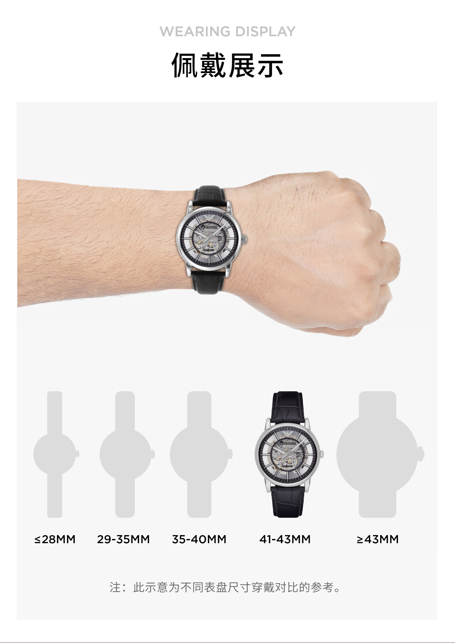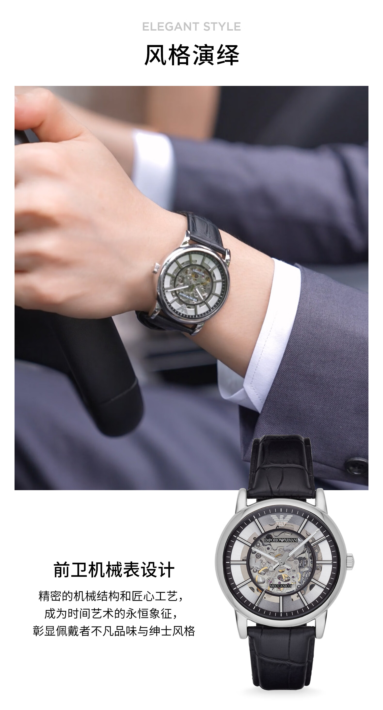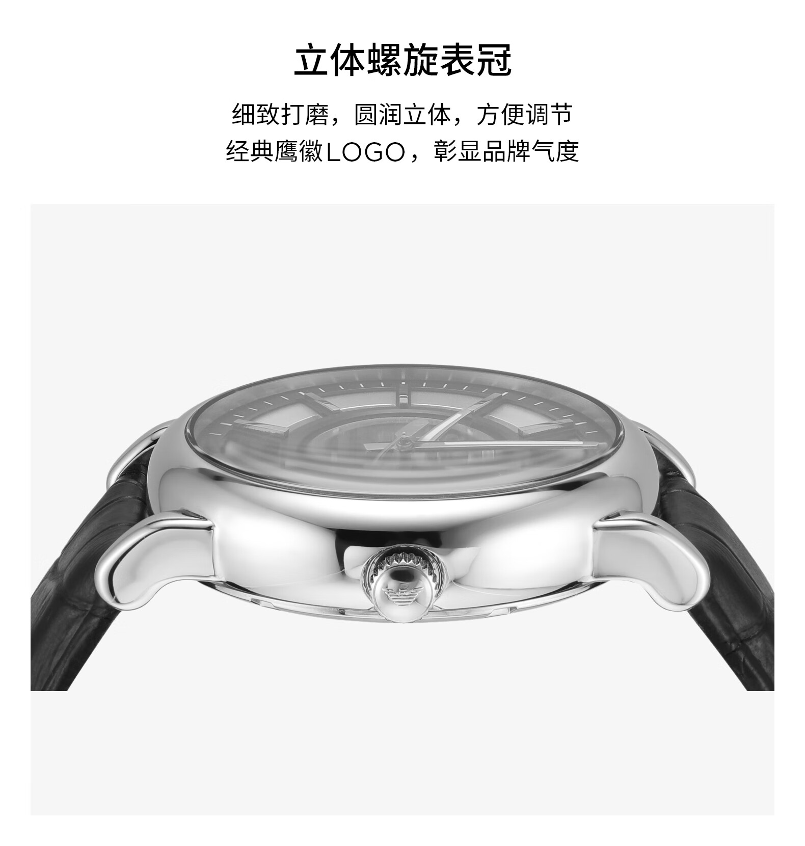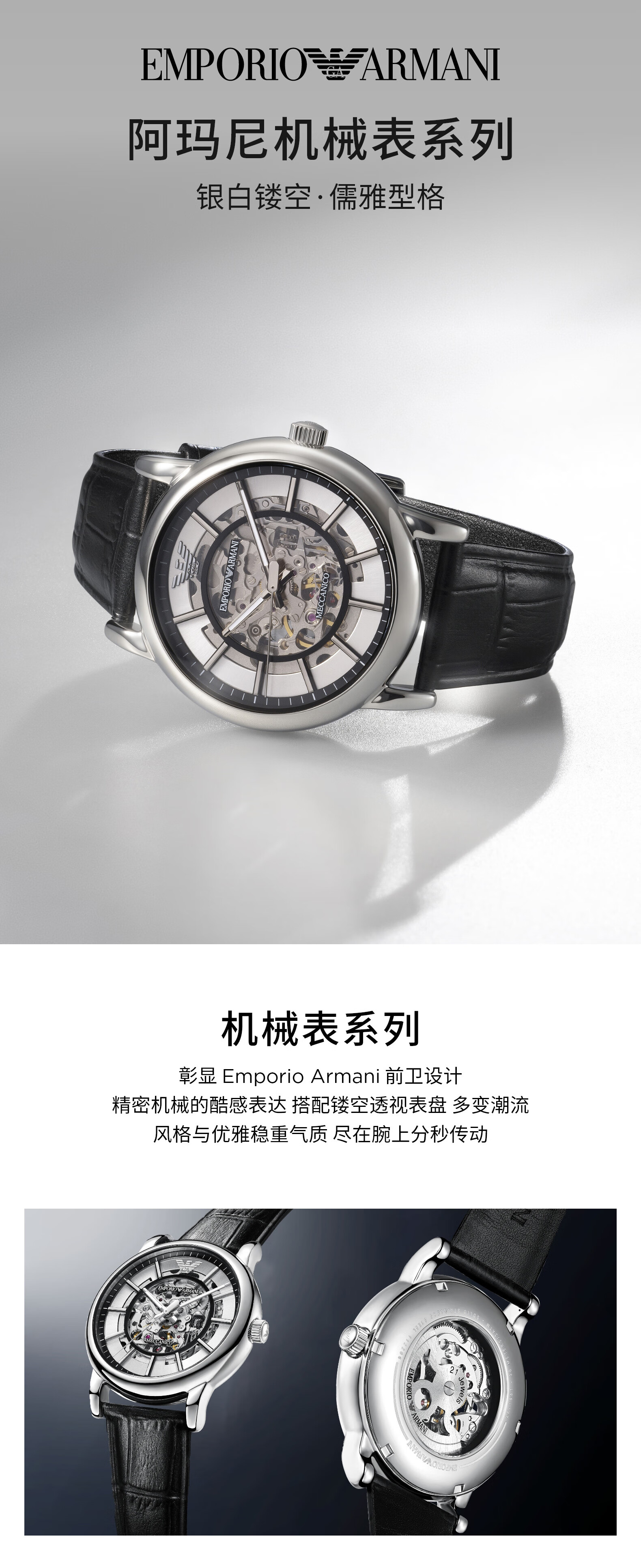 EMPORIO ARMANI阿玛尼手表男士全自动机械表皮带镂空机械3.8女神节友送男友礼物 AR1981 43mm