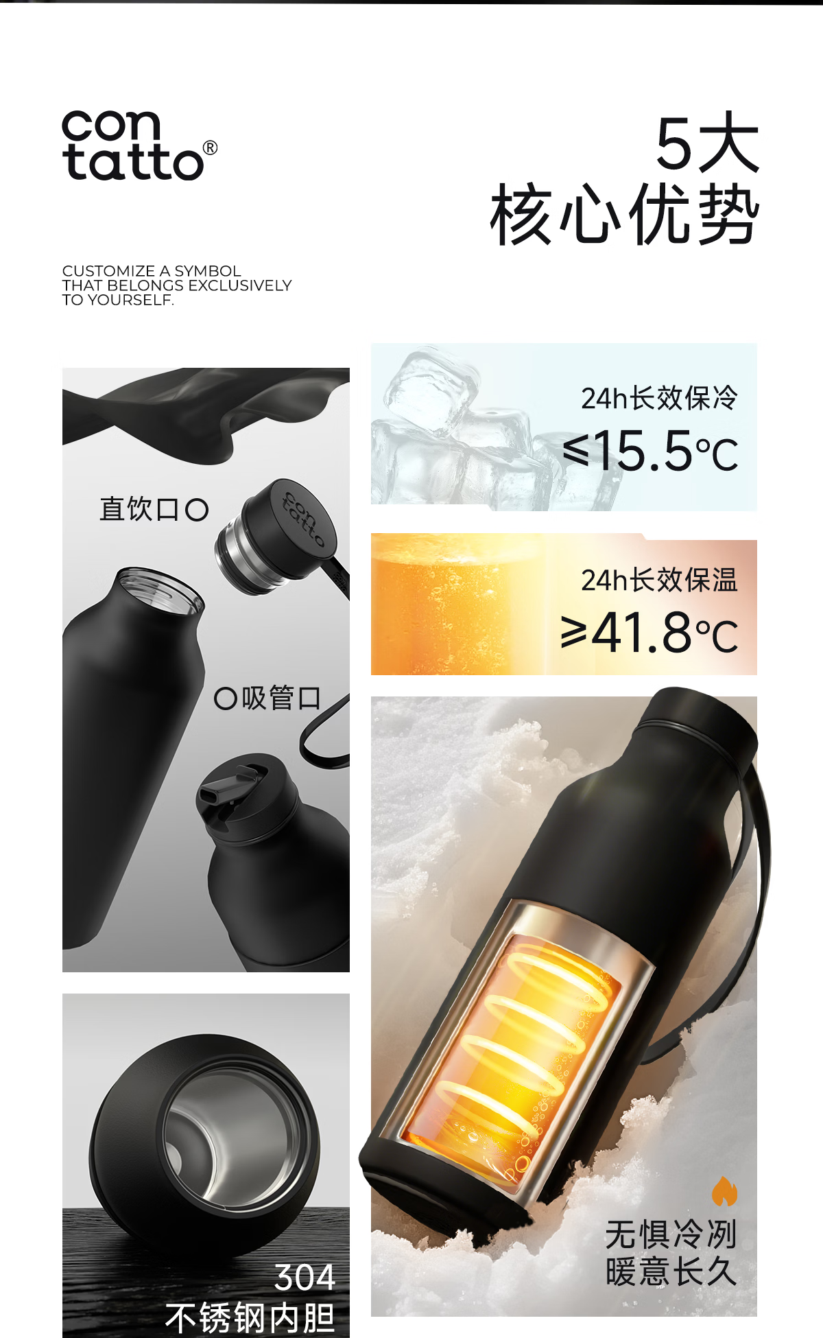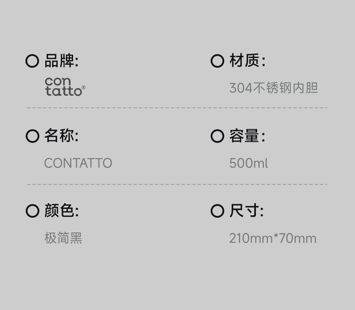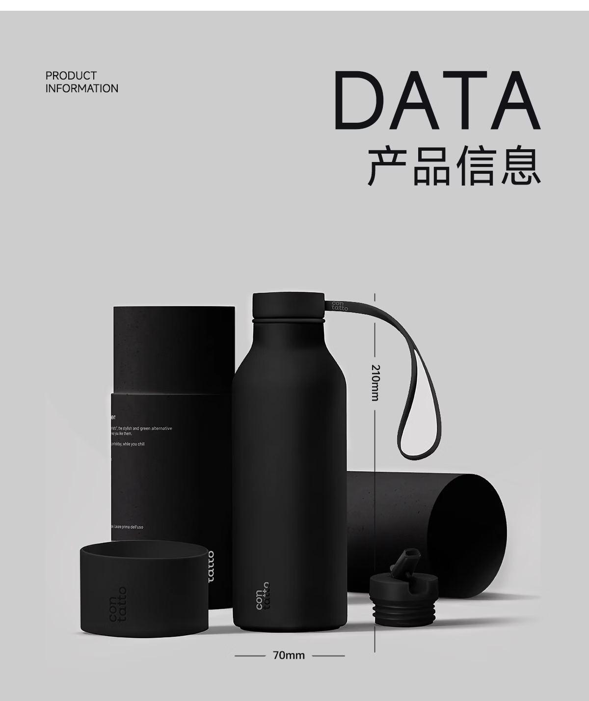 吉姆蓝杰contatto吉姆蓝杰车载运动不锈钢保温杯男士户外杯子男生颜值水杯 极简黑500ml可定制