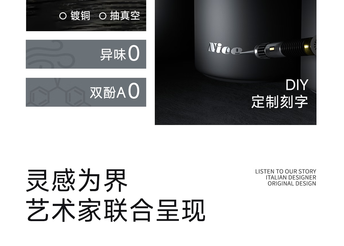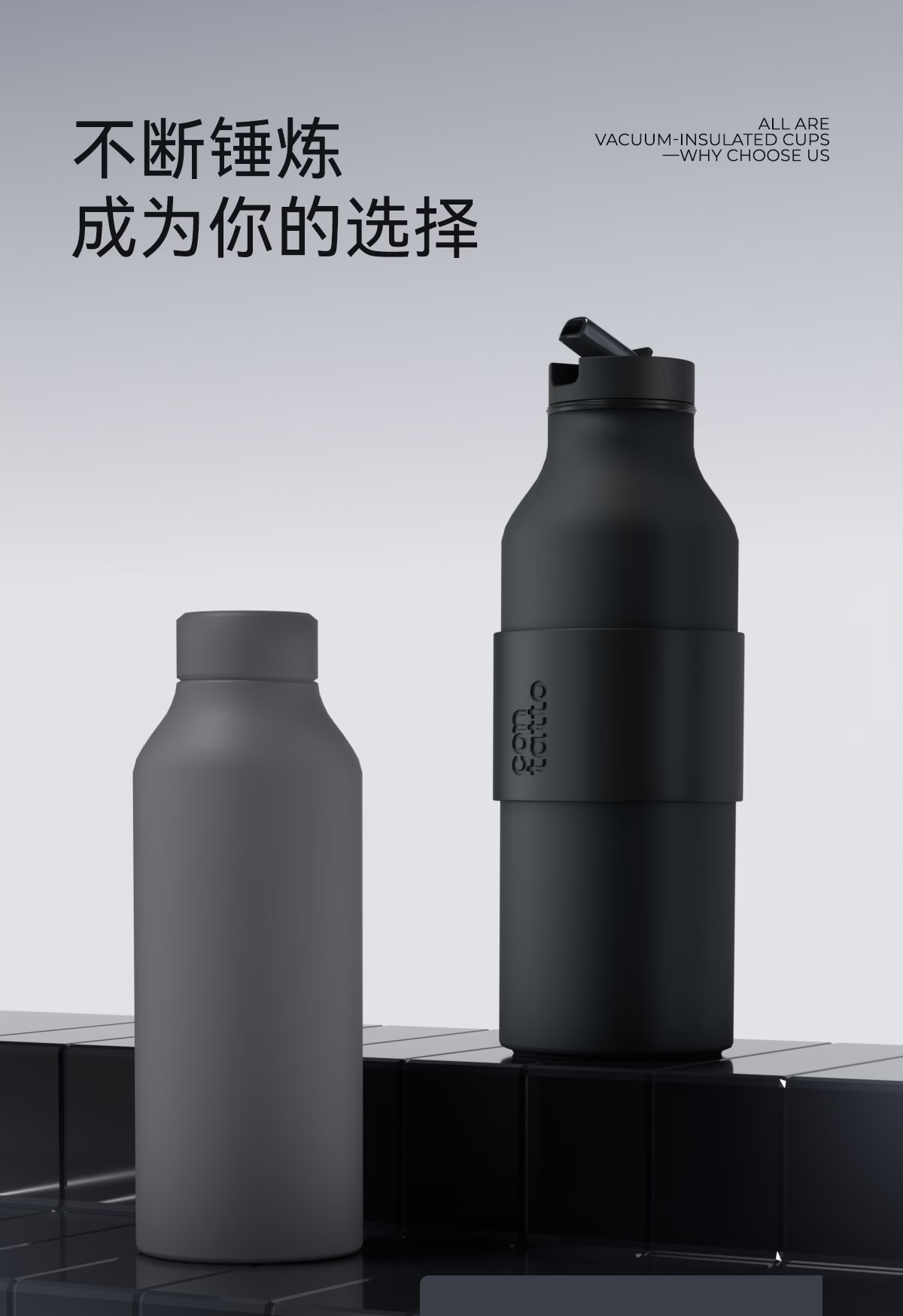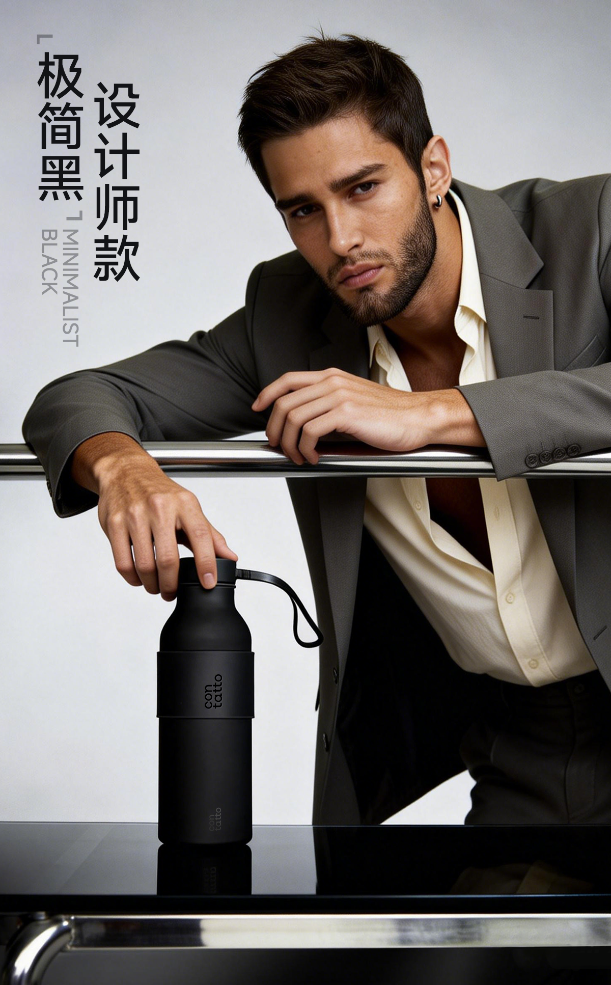 吉姆蓝杰contatto吉姆蓝杰车载运动不锈钢保温杯男士户外杯子男生颜值水杯 极简黑500ml可定制