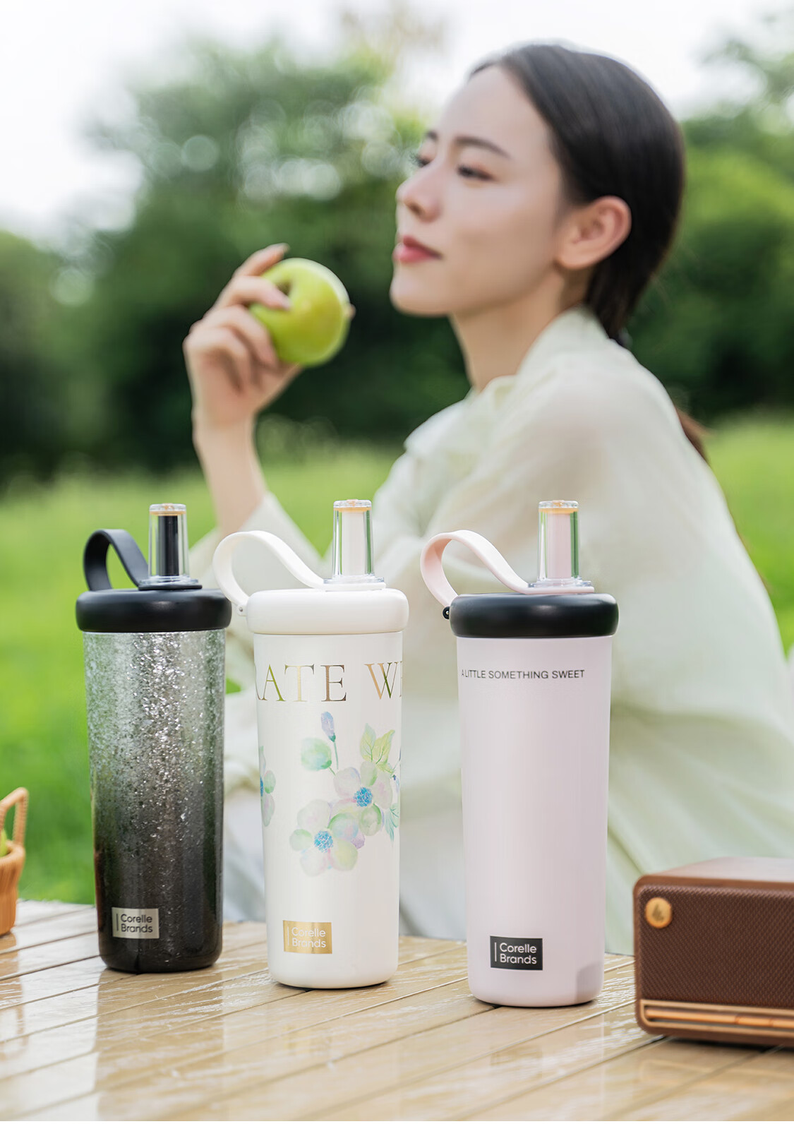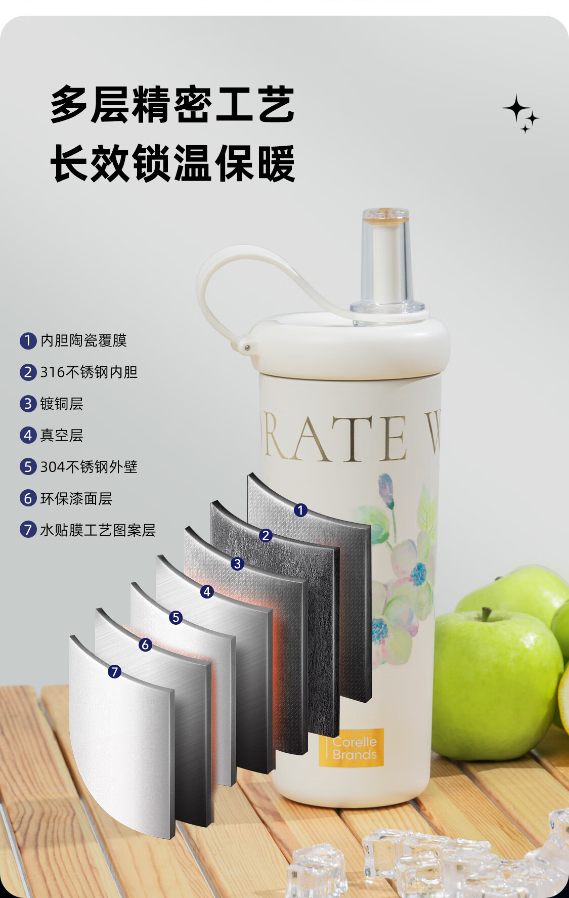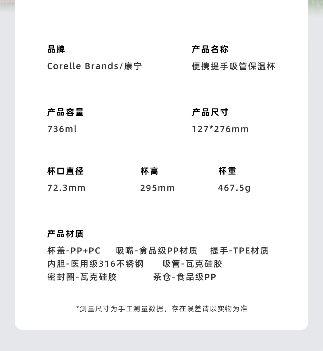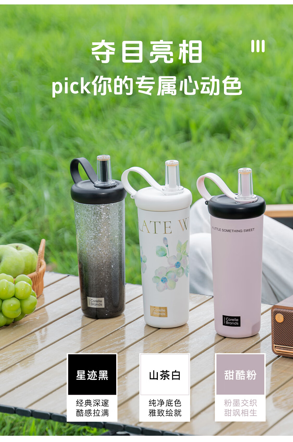 CORELLE康宁吸管杯女生高颜值316食品级不锈钢保温杯水杯随行杯政府补贴 甜酷粉736ML【316不锈钢内胆】