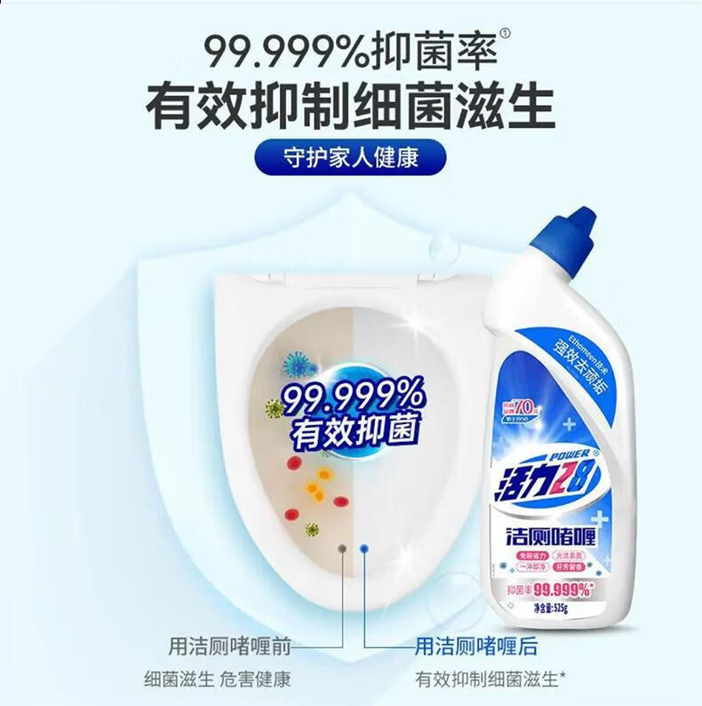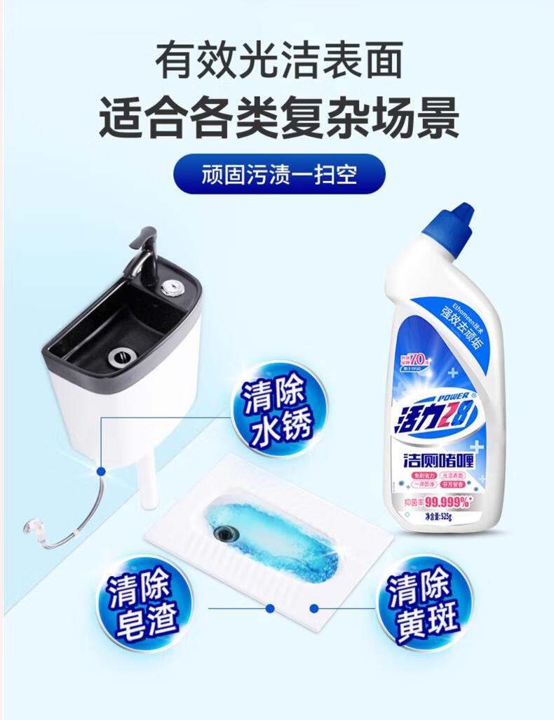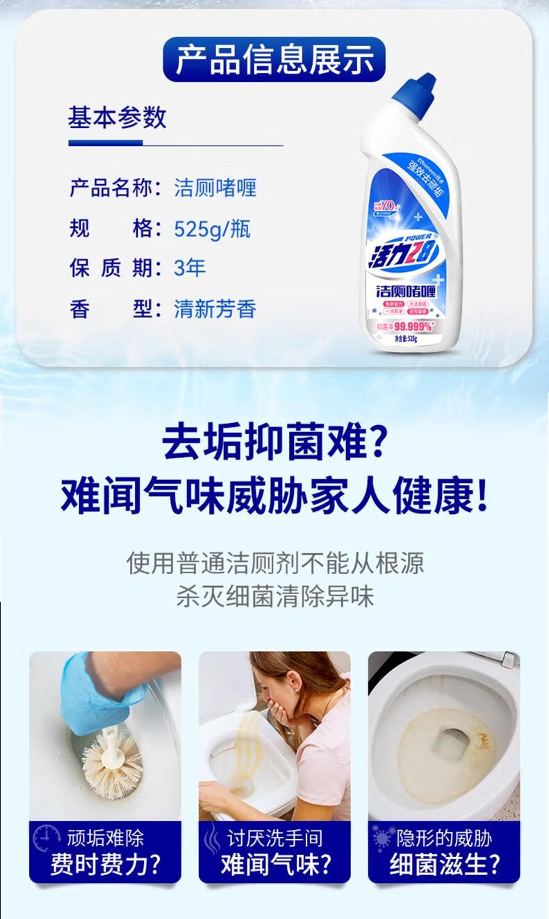 活力28洁厕啫喱525g洁厕液强效抑菌去味清香型马桶清洁剂 强力去垢 3瓶装