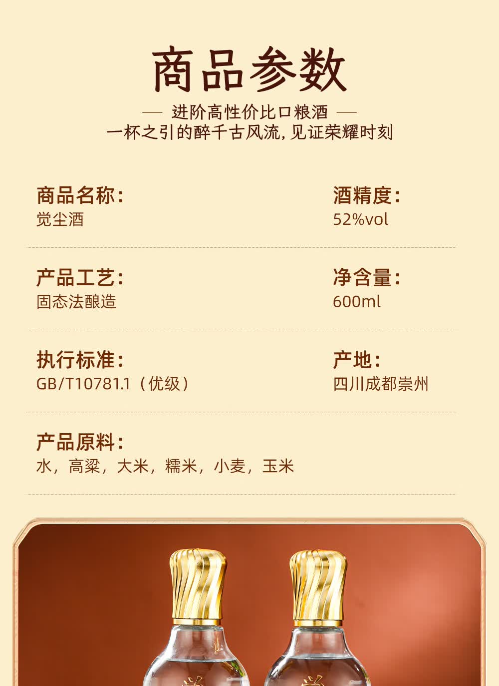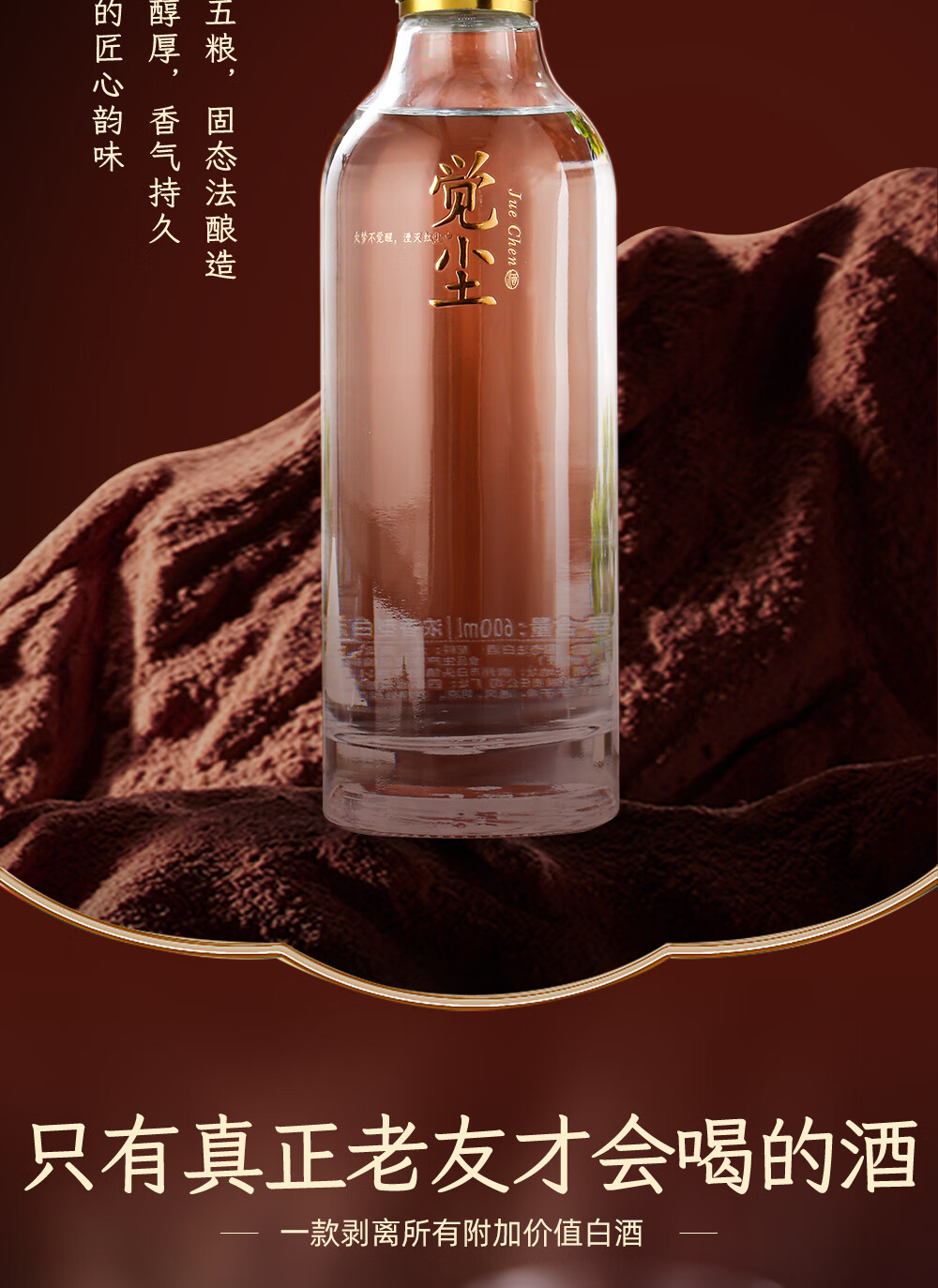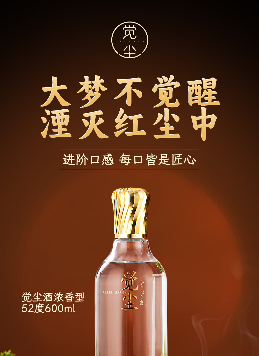 觉尘酒浓香型白酒52度高端光瓶纯粮食酒整箱白酒粮食酒口粮自饮宴请 52%vol 600mL 6瓶 1箱
