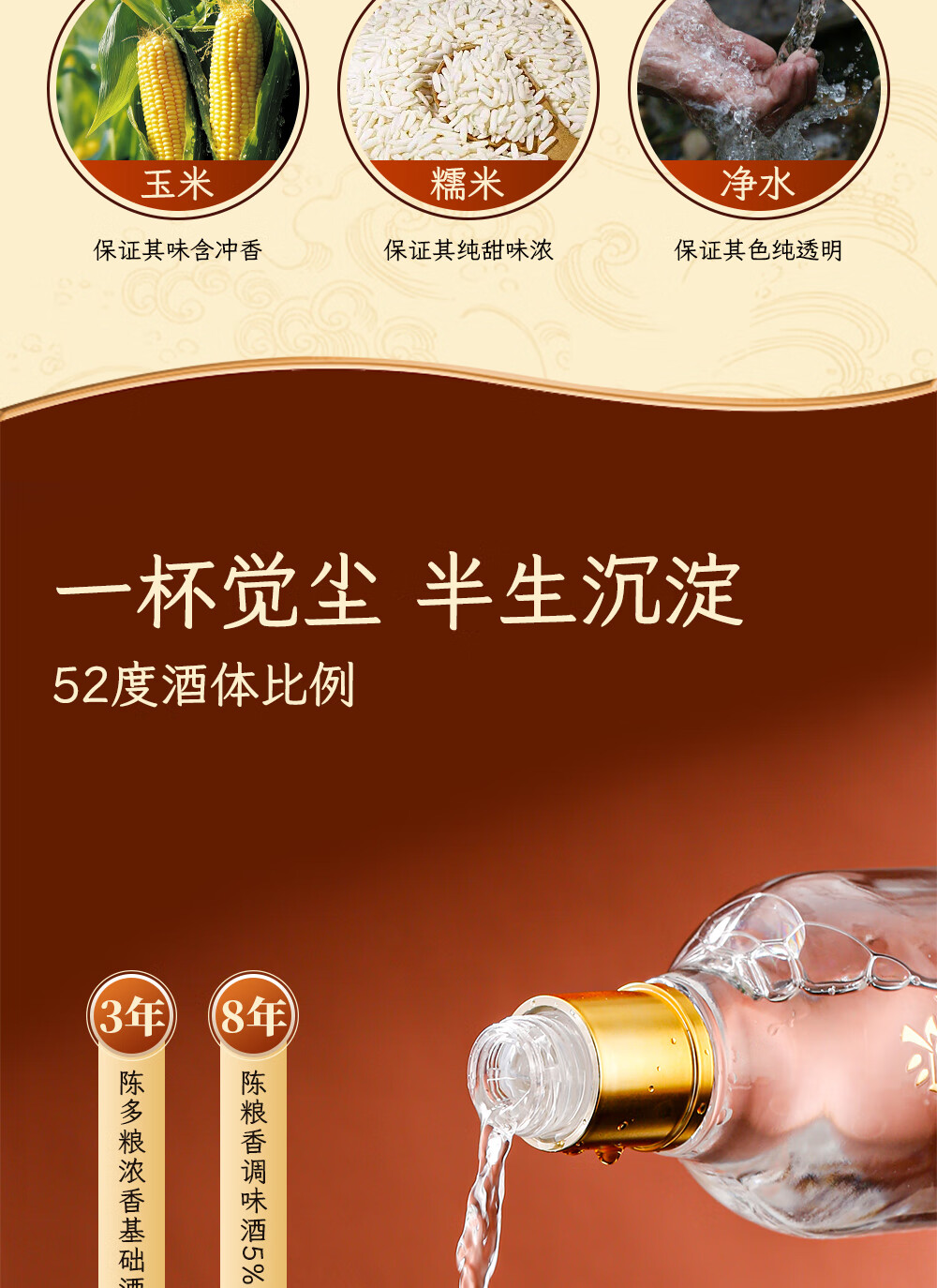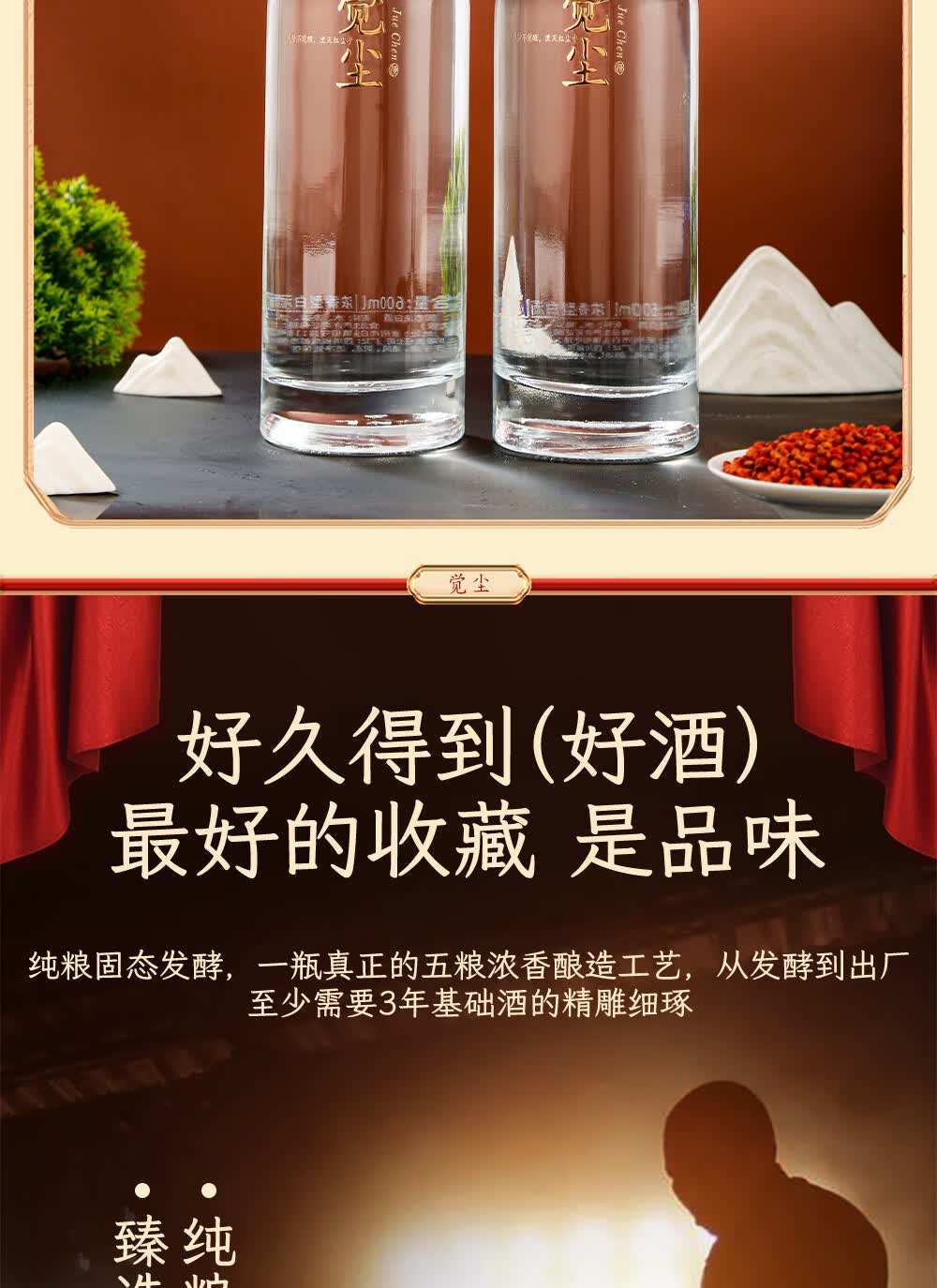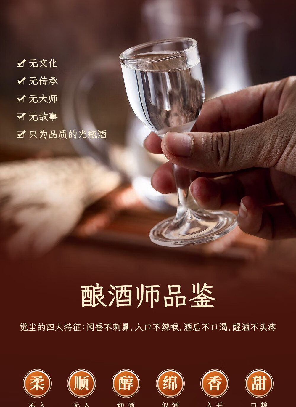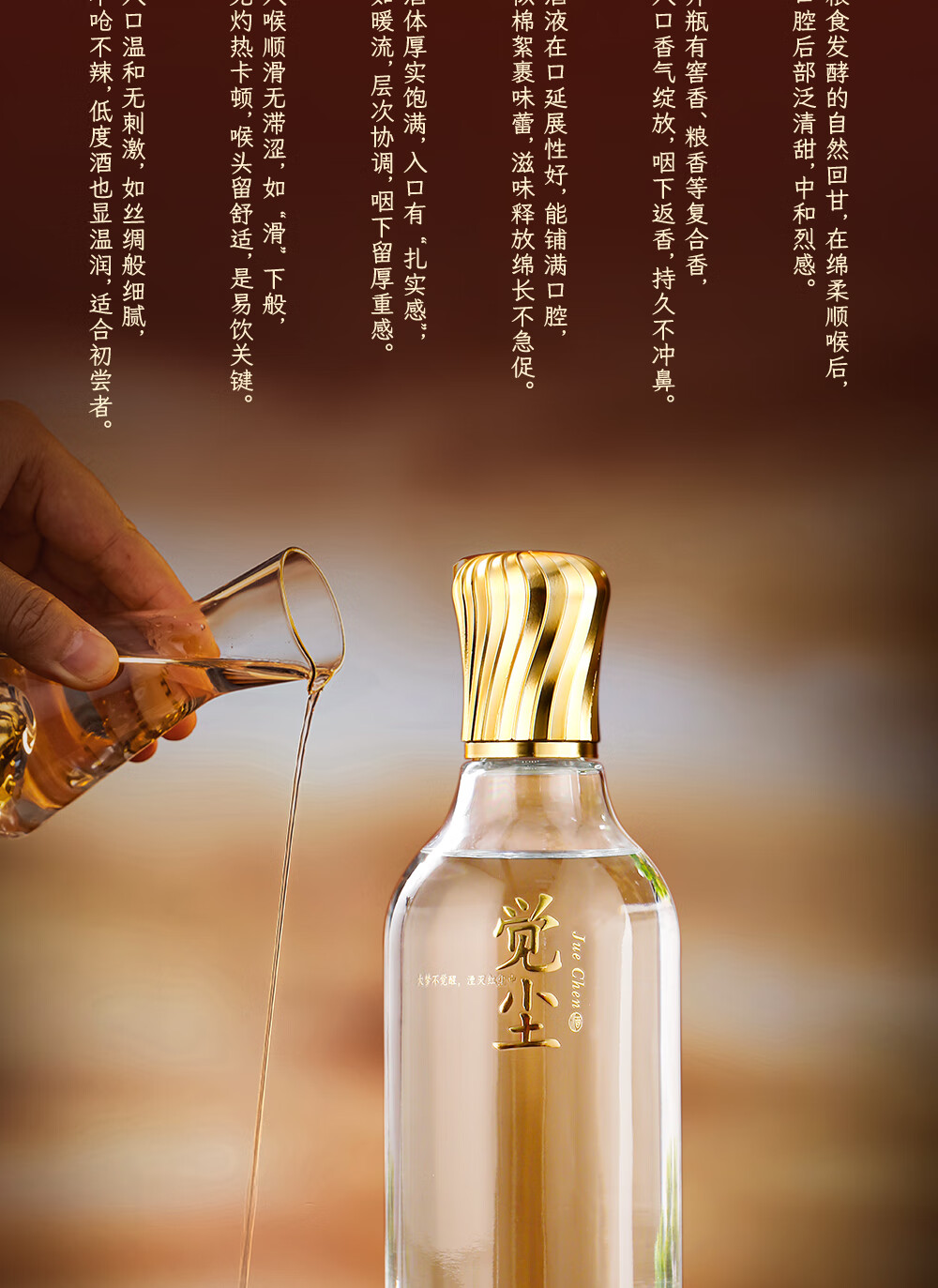 觉尘酒浓香型白酒52度高端光瓶纯粮食酒整箱白酒粮食酒口粮自饮宴请 52%vol 600mL 6瓶 1箱