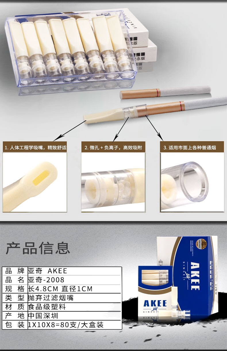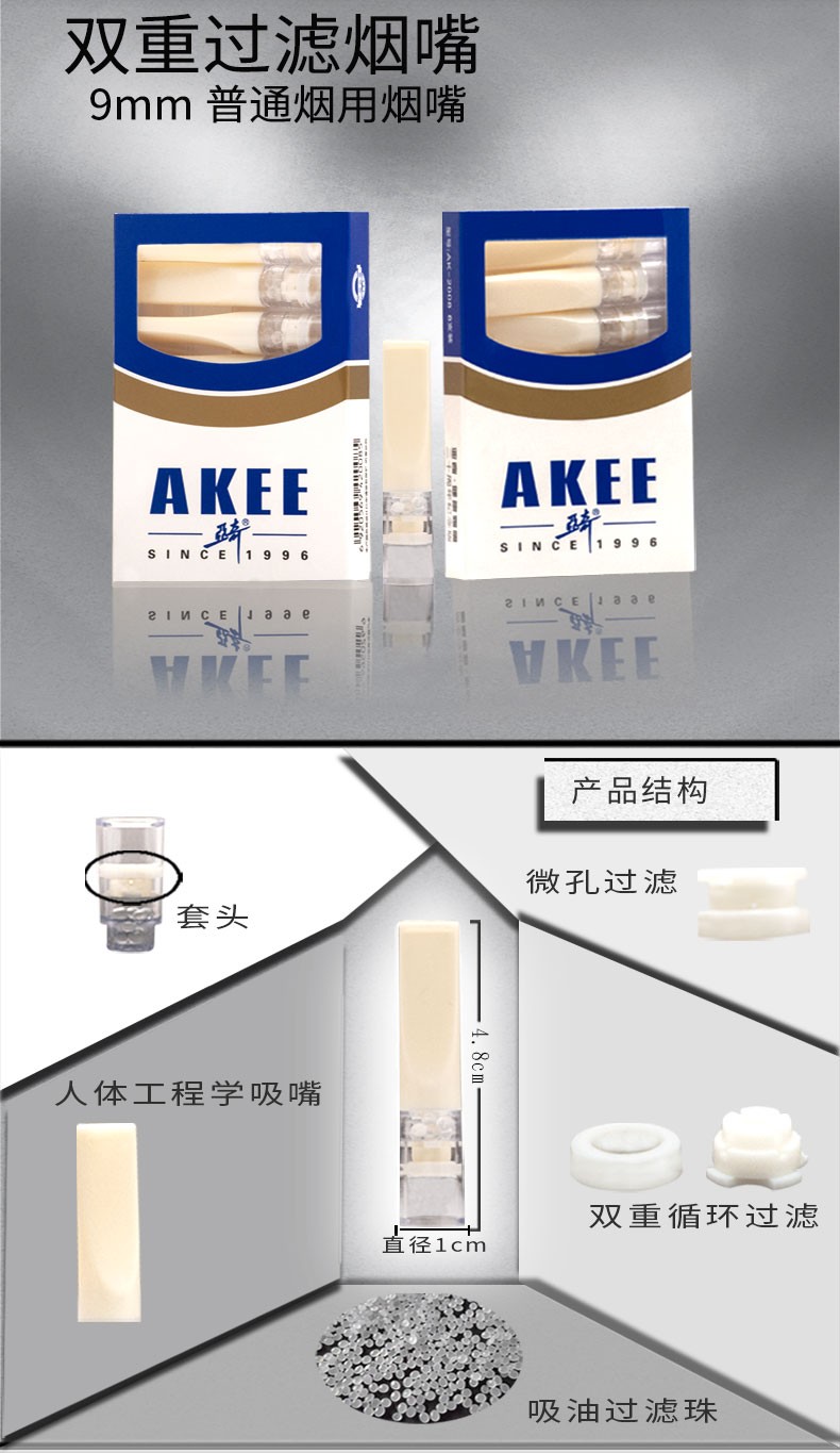 亚奇 AKEE一次性过滤烟嘴香菸过滤嘴男士抛弃型烟嘴过滤器净烟AK2008 酒红色一大盒 80支
