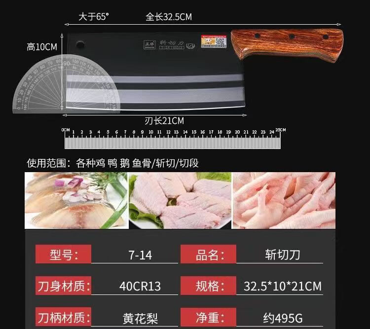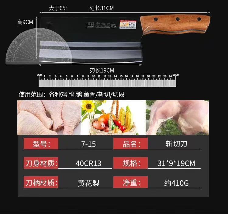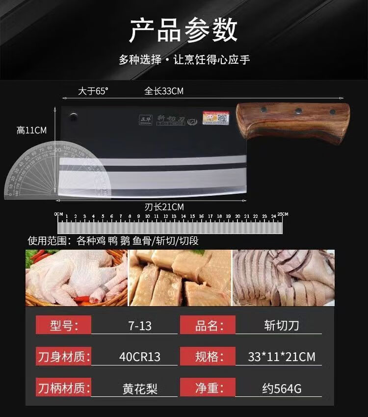 大足龙水正华斩切刀家用菜刀厨房刀具切菜切肉切片刀砍切两用刀 7-13【砍切刀】大号