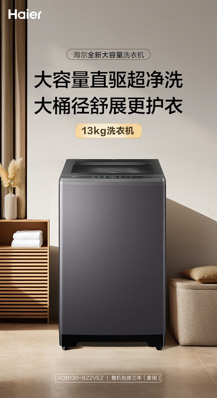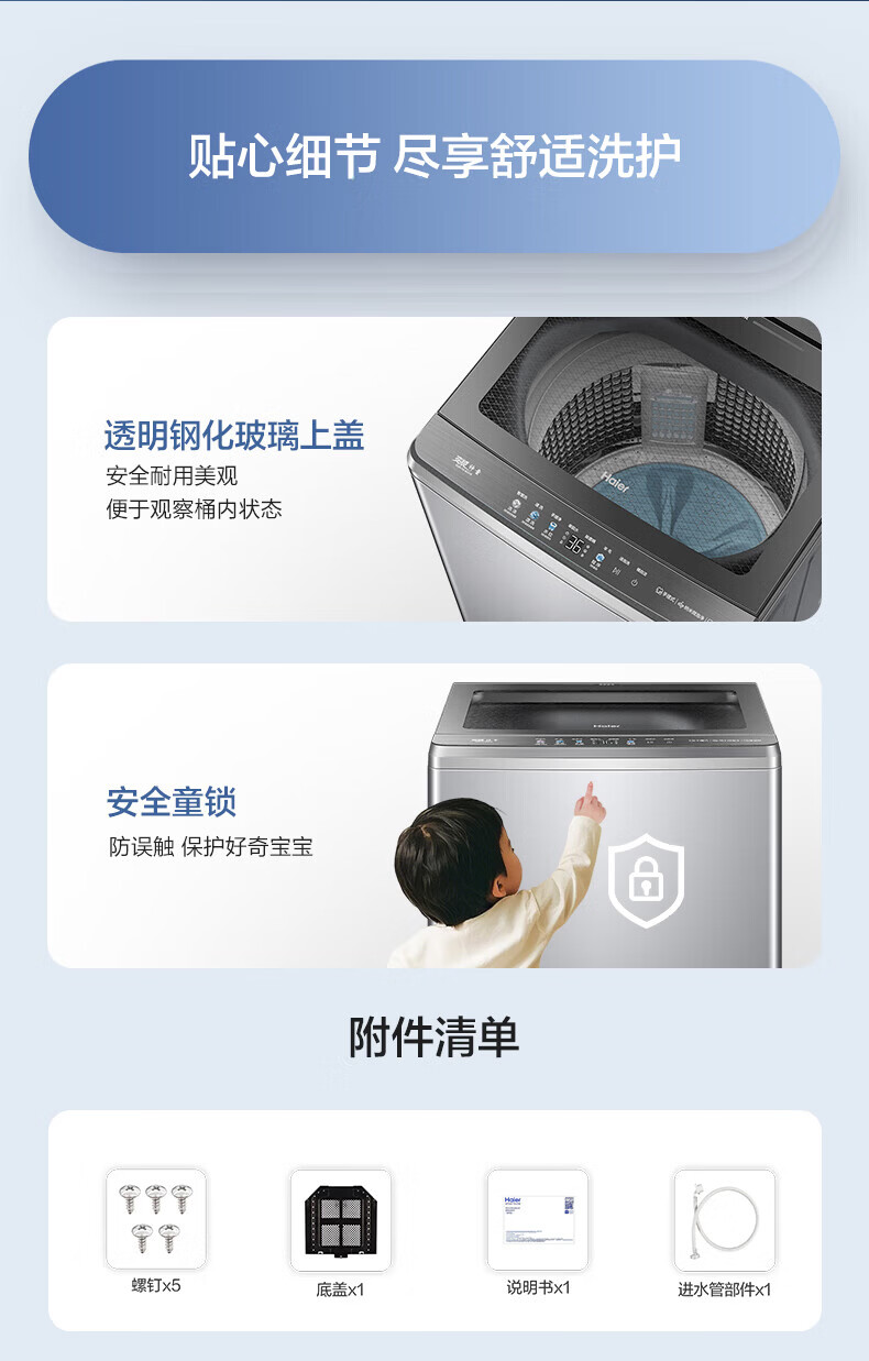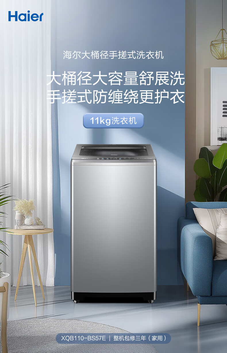 海尔(Haier)波轮洗衣机全自动手搓式防缠绕懒人家用大容量上翻盖直驱变频除菌螨一级能效焕新补贴15% 【升级款】11公斤+手搓式防缠绕+语音播报 波轮