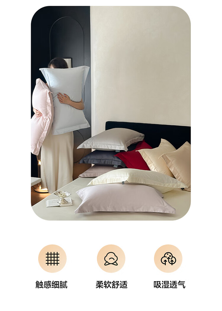 ROLAND LIVE50支双股全棉长绒棉枕套一对装 纯棉枕头套单人枕芯套罩48x74cm SW全棉长绒棉枕套单件-长期主义朗姆酒红 一对 单枕套48x74cm