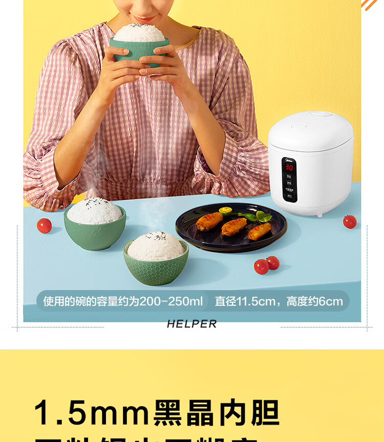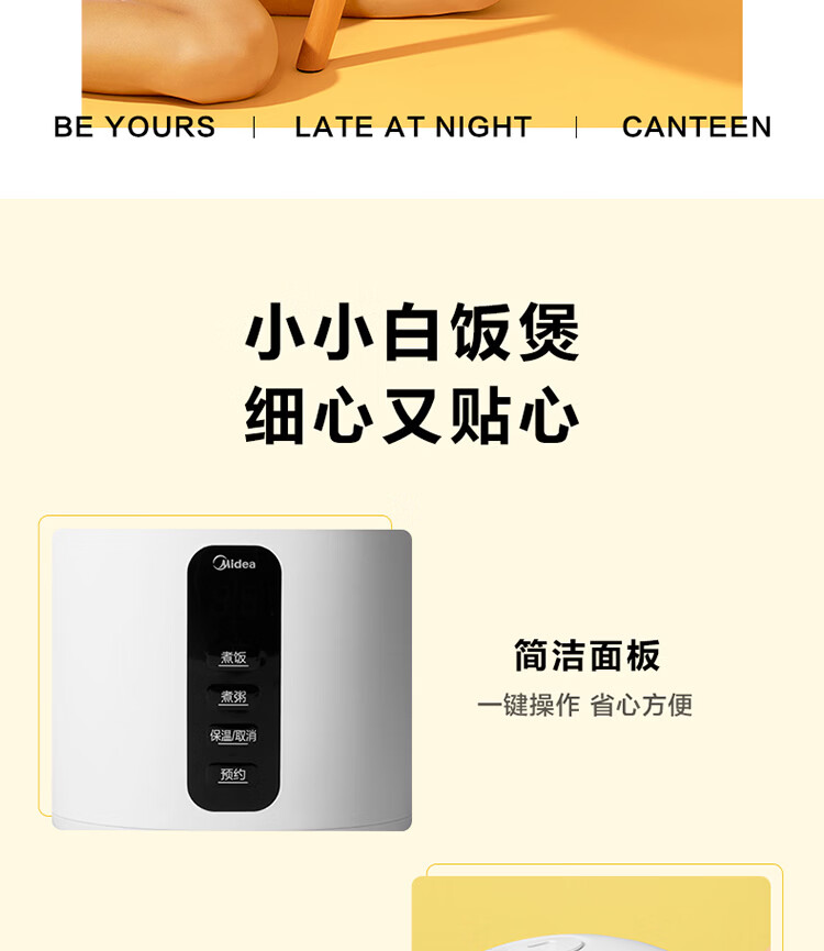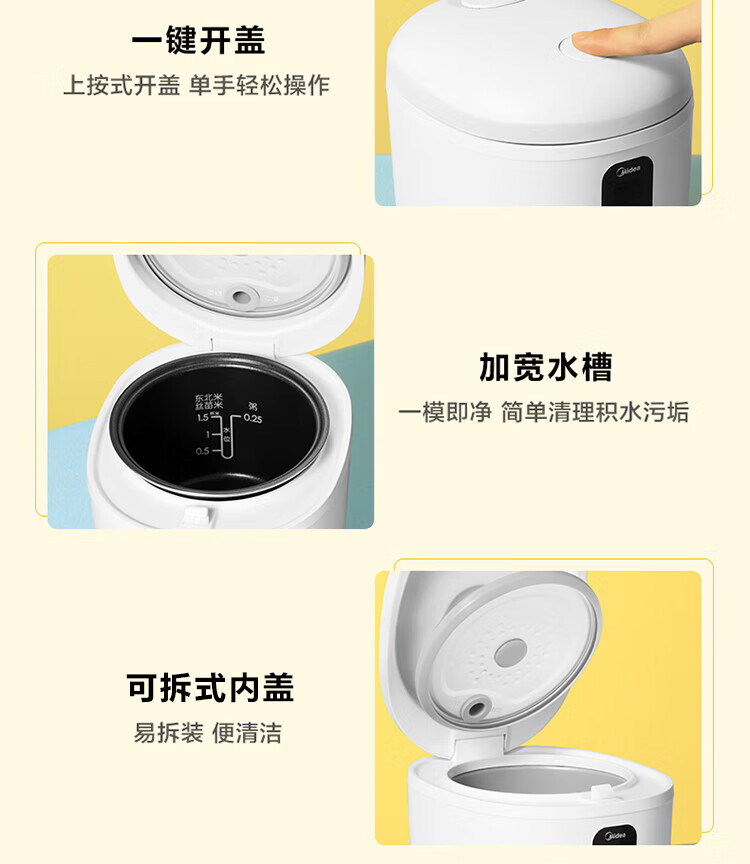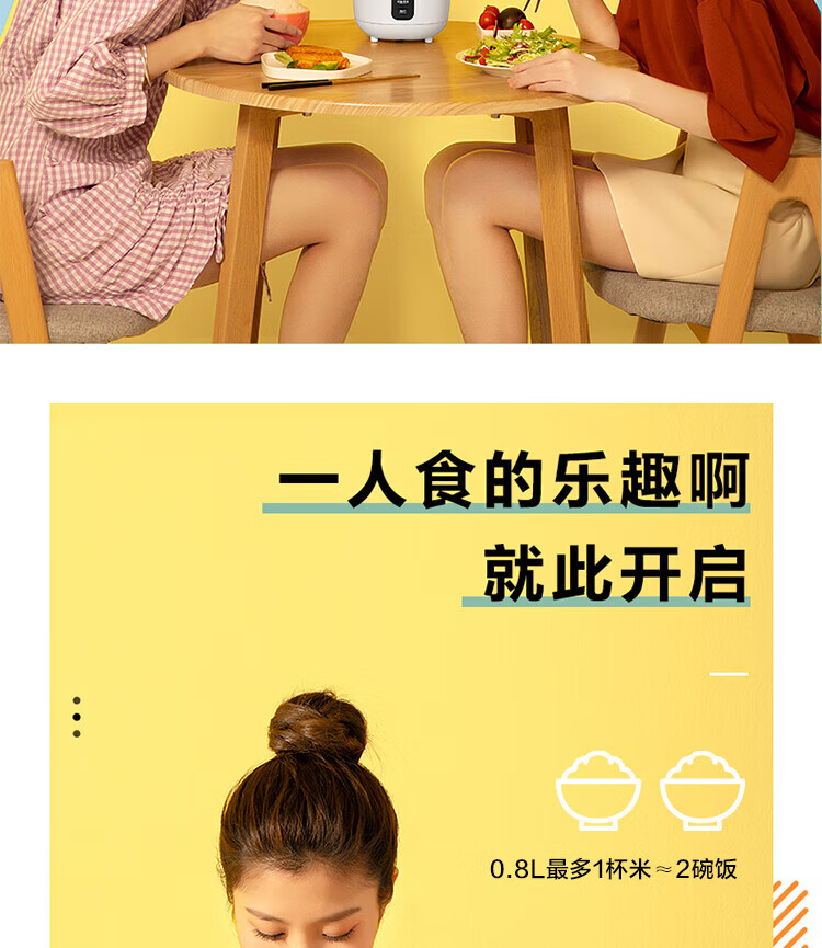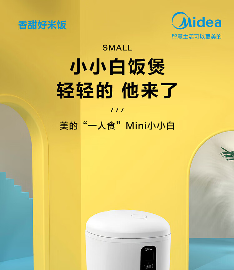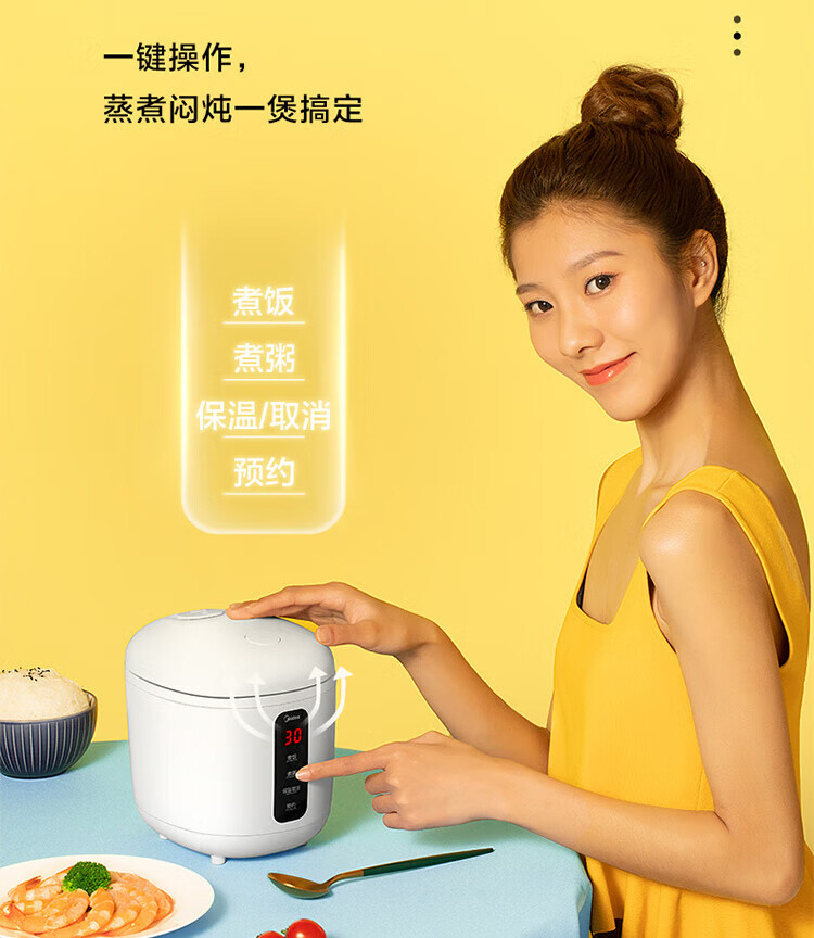 美的(Midea)【迷你】电饭煲小电饭锅 1-2人小容量一人食0.8L 便携单人宿舍旅行 智能预约微压不粘锅内胆米饭锅 【精致迷你煲 | 24小时预约】 0.8L