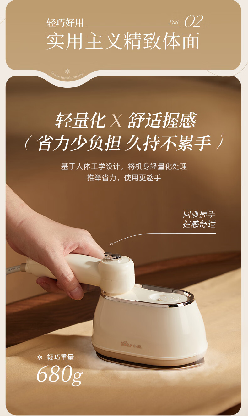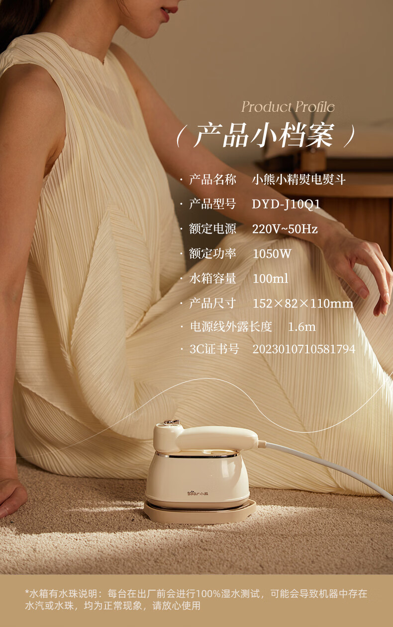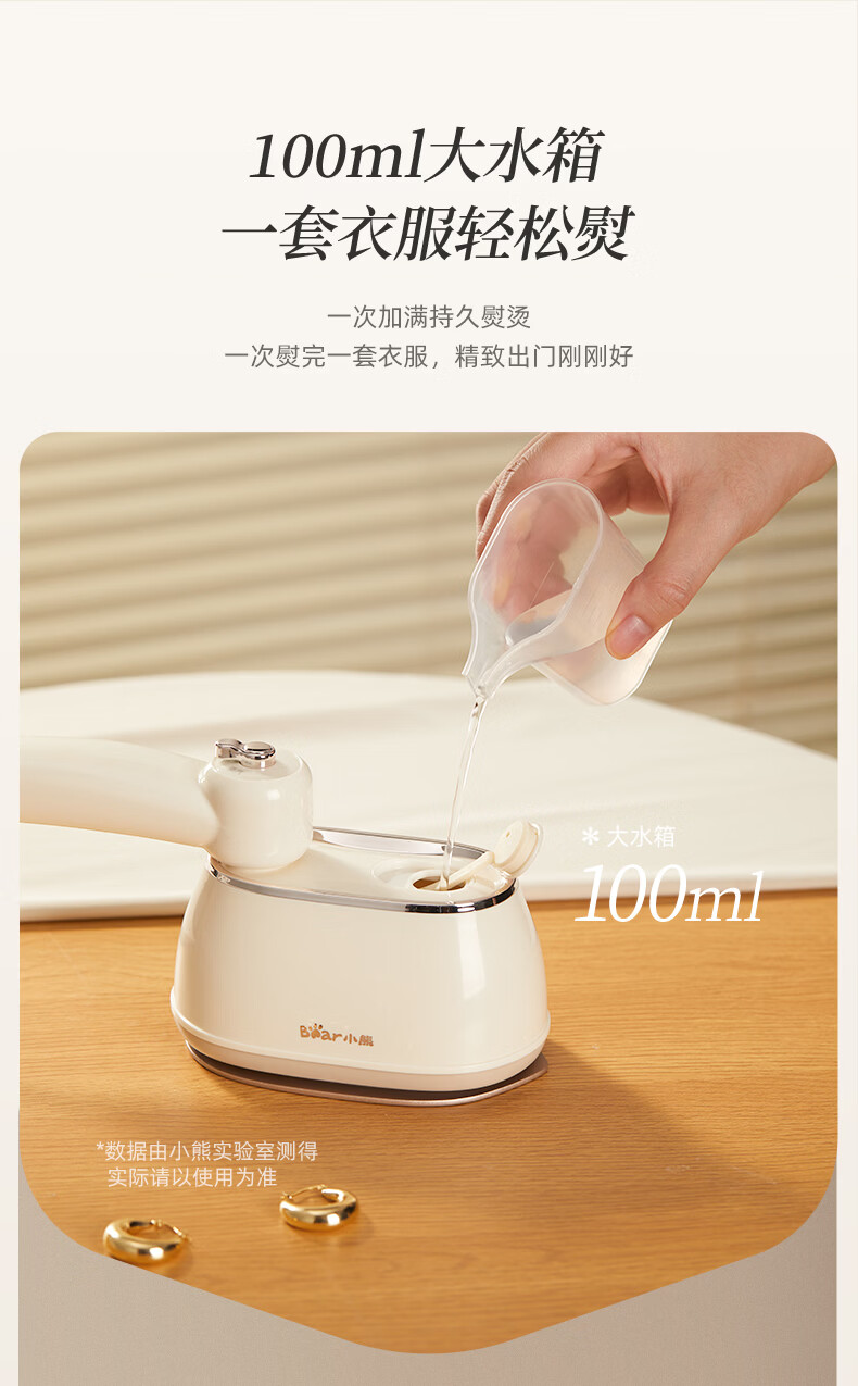 小熊(Bear)手持挂烫机17G/MIN大功率蒸汽100ML水箱电熨斗蒸汽熨烫机家用微增压便携出差宿舍团购礼品J10Q1