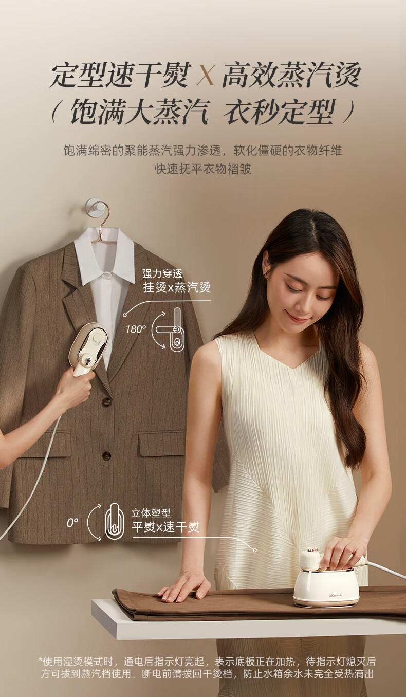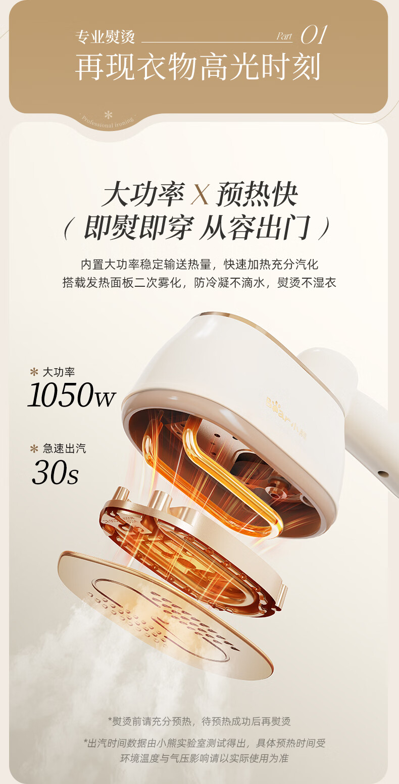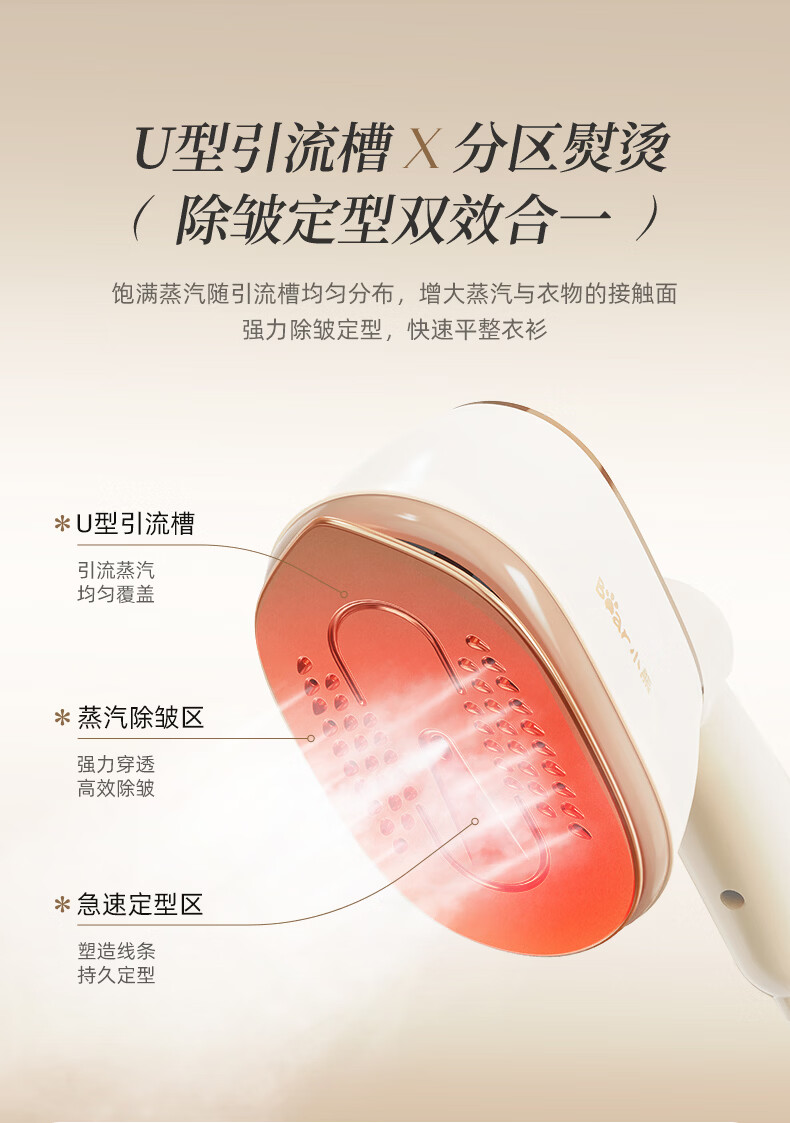 小熊(Bear)手持挂烫机17G/MIN大功率蒸汽100ML水箱电熨斗蒸汽熨烫机家用微增压便携出差宿舍团购礼品J10Q1