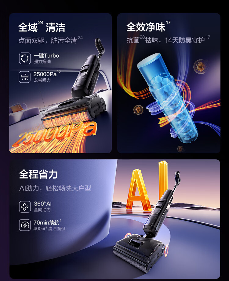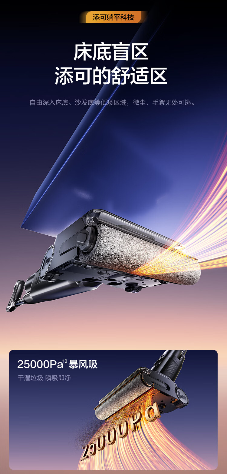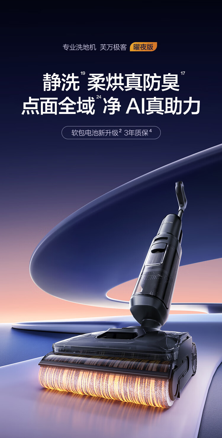 添可极客曜夜【 AI真助力 25Kpa暴风吸】祛顽渍防臭0缠毛躺平洗地机吸拖一体自动清洗扫地机器人
