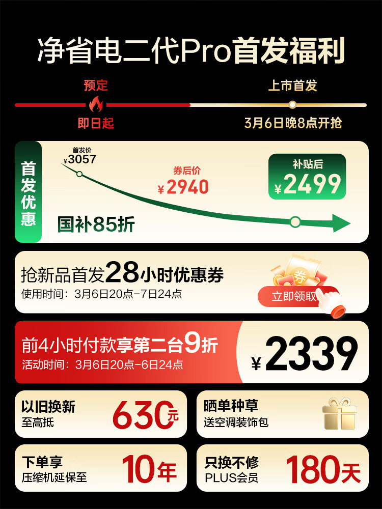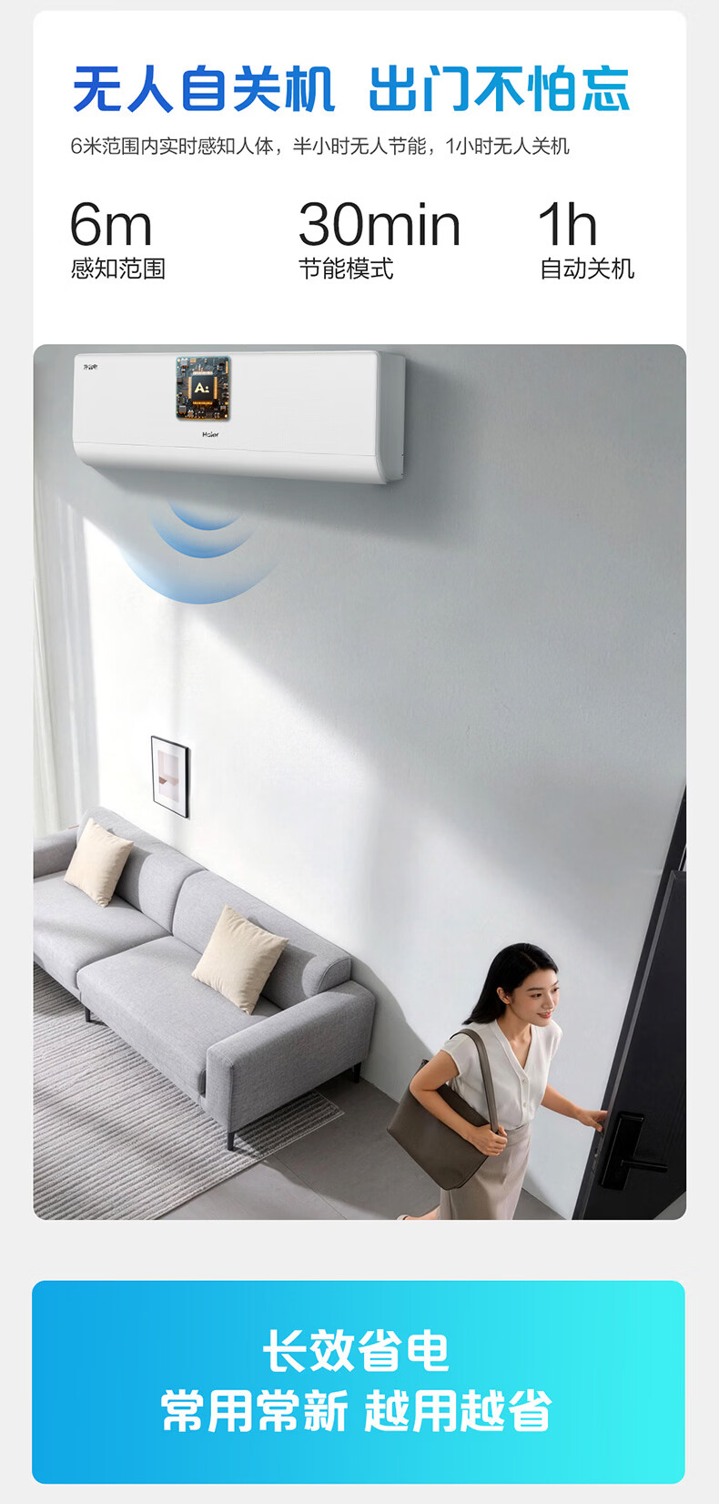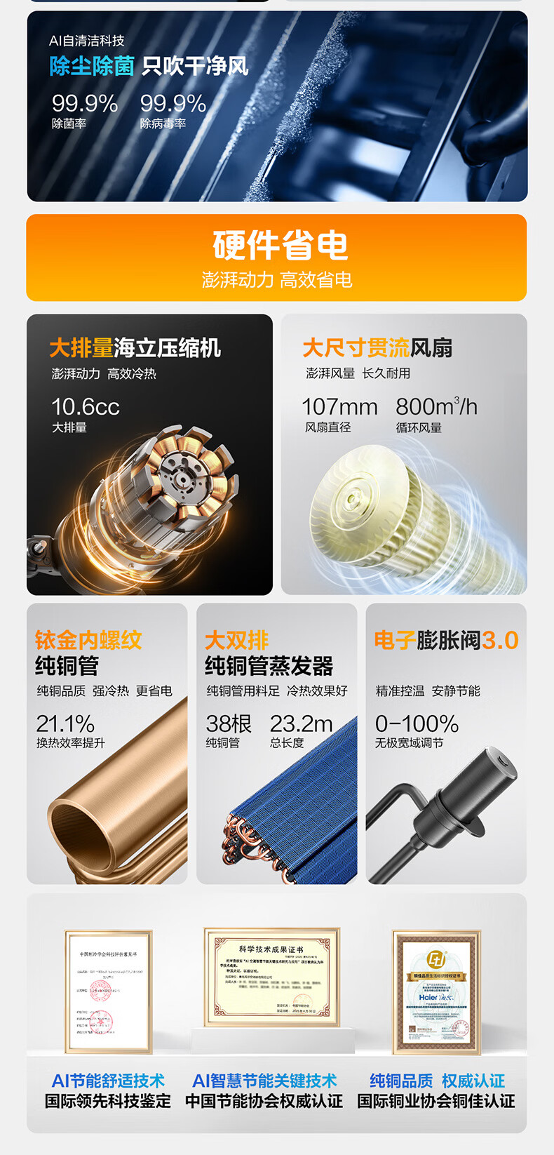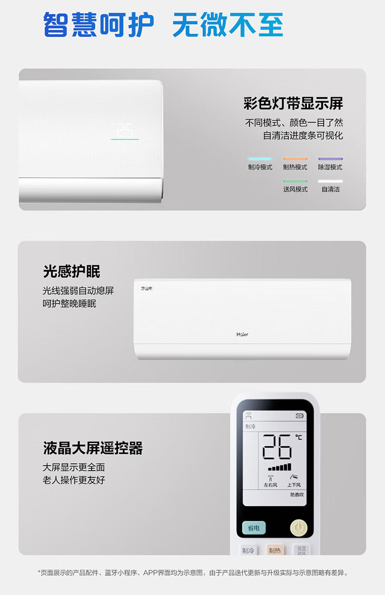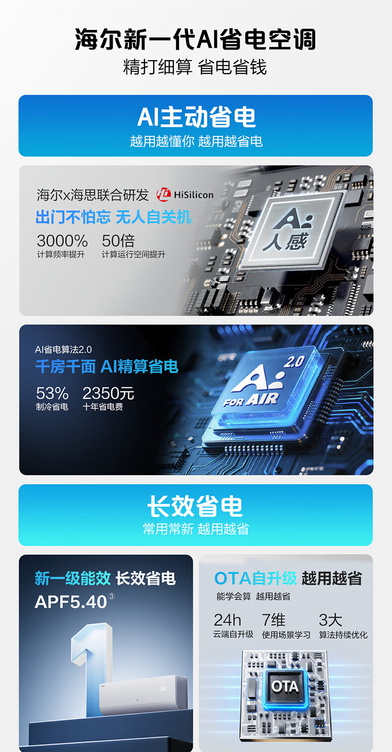 海尔空调 净省电二代Pro大1.5匹挂机 新一级能效变频 升级大双排纯铜管蒸发器 国家补贴KFR-35GW/E1-1U