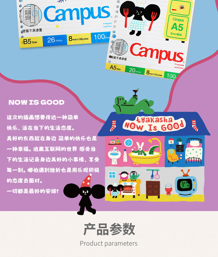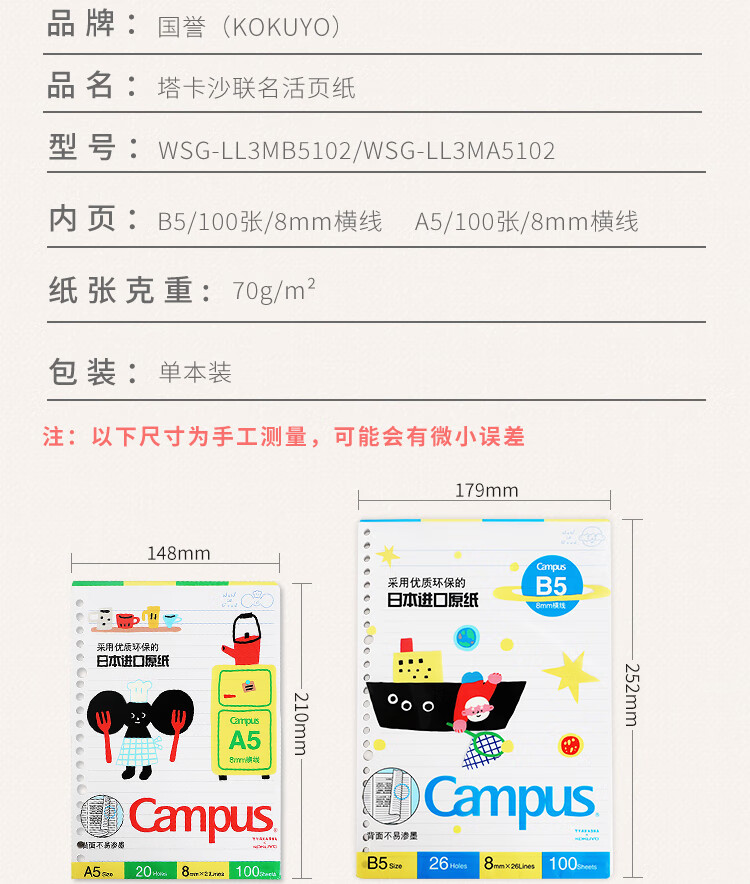 国誉(KOKUYO)【热门商品】国誉(KOKUYO)Tyakasha塔卡沙联名活页纸活页本替芯 B5/100张 WSG-LL3MB5102