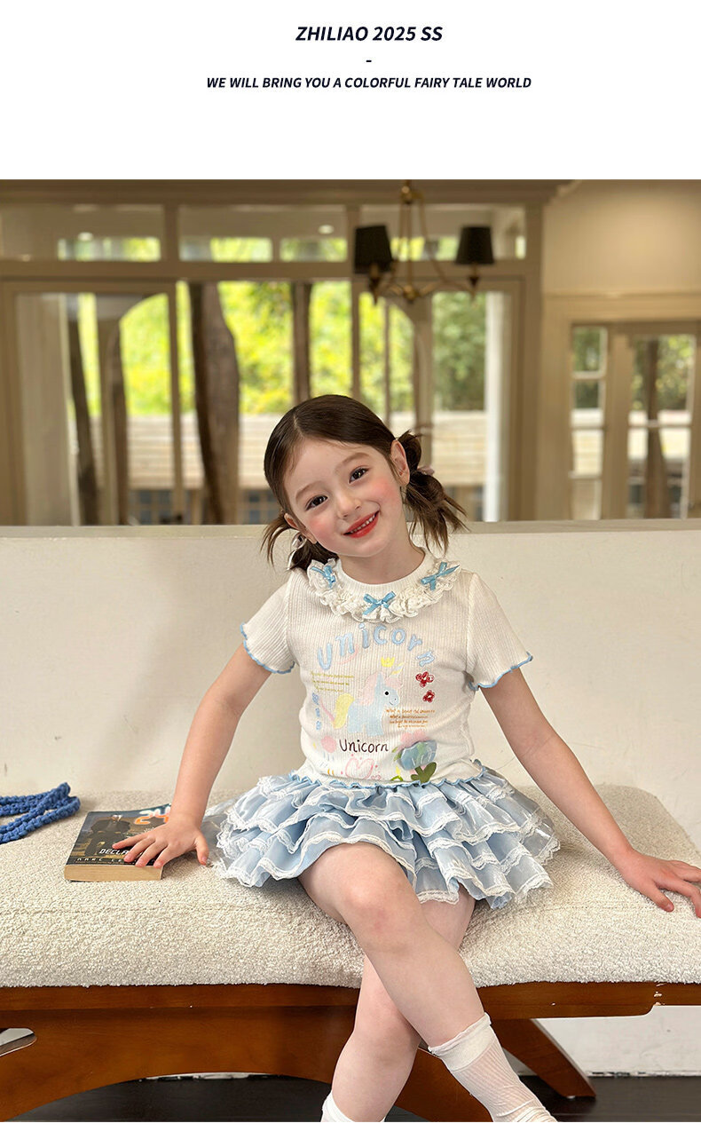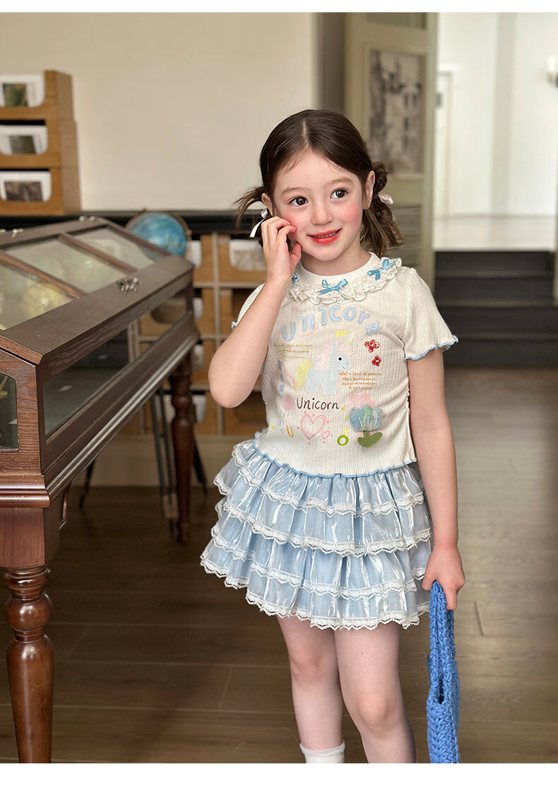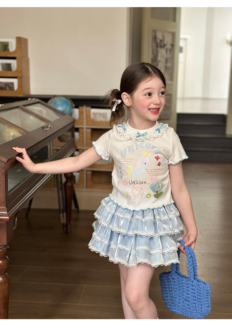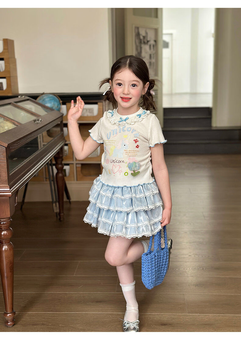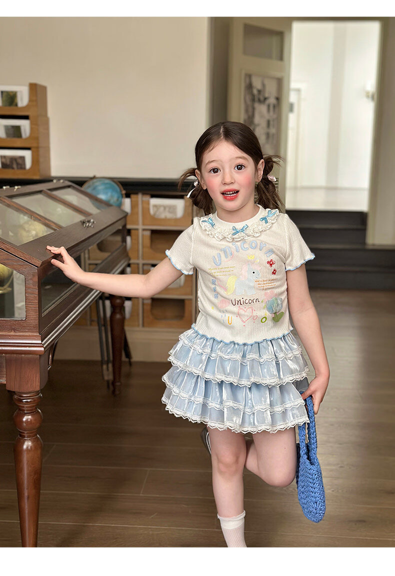 栀了成长记女童装甜美花边修身上衣2026春季儿童新款时髦短袖T恤 白色 上衣 110 cm