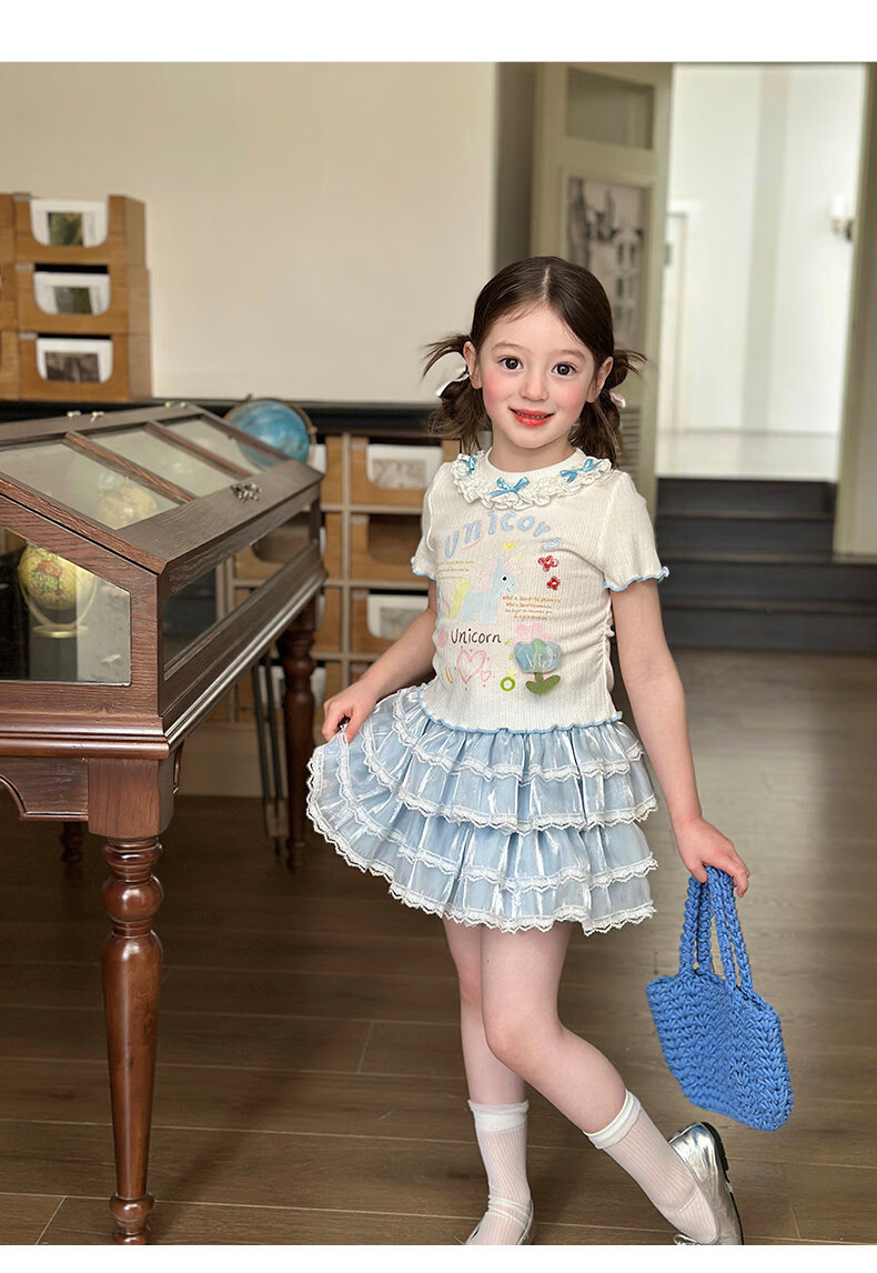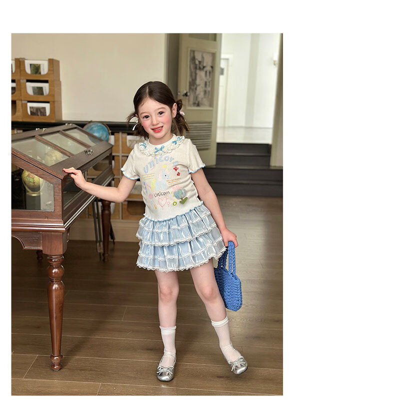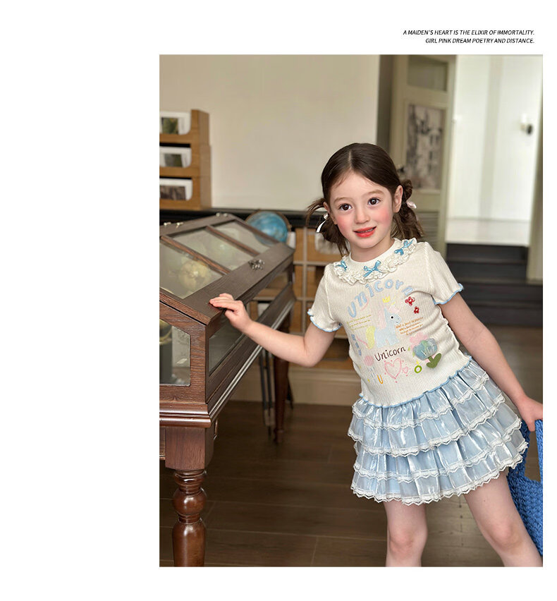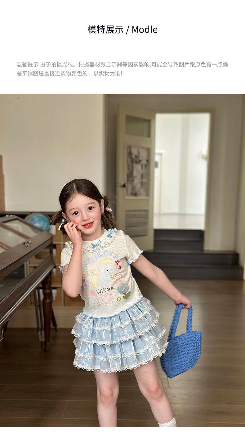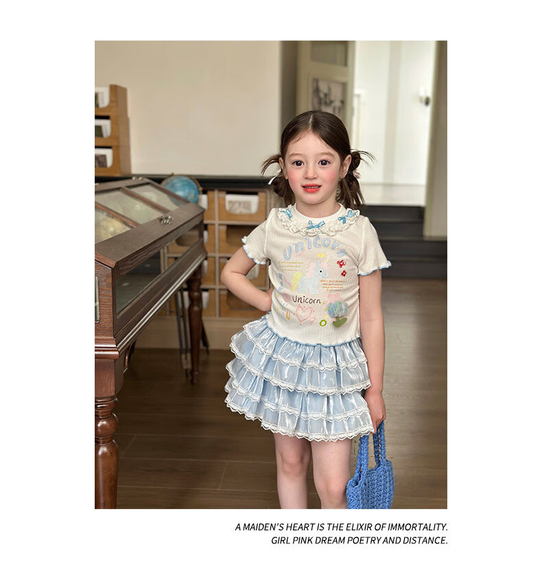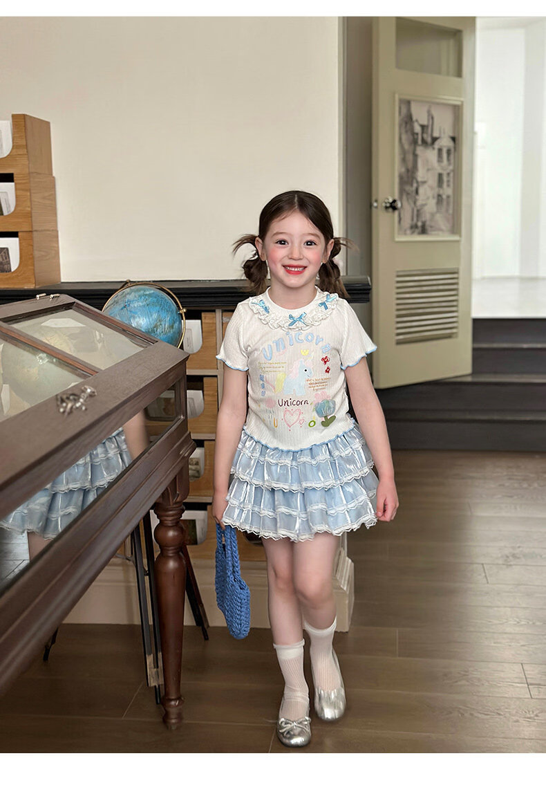 栀了成长记女童装甜美花边修身上衣2026春季儿童新款时髦短袖T恤 白色 上衣 110 cm