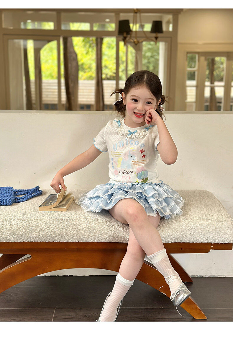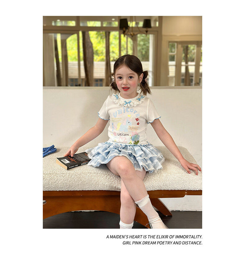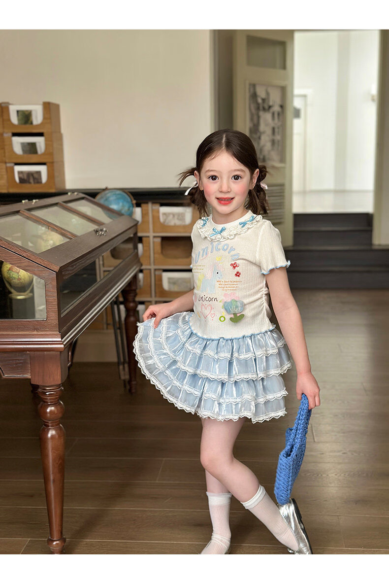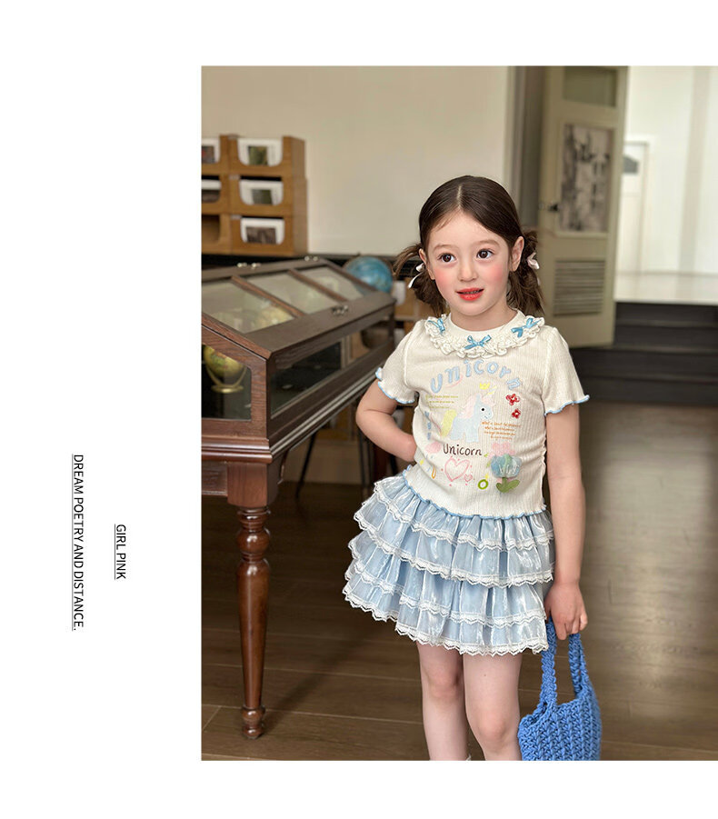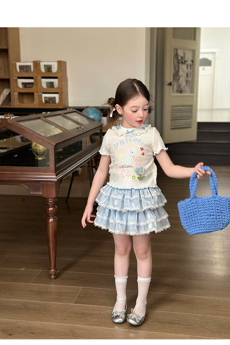 栀了成长记女童装甜美花边修身上衣2026春季儿童新款时髦短袖T恤 白色 上衣 110 cm