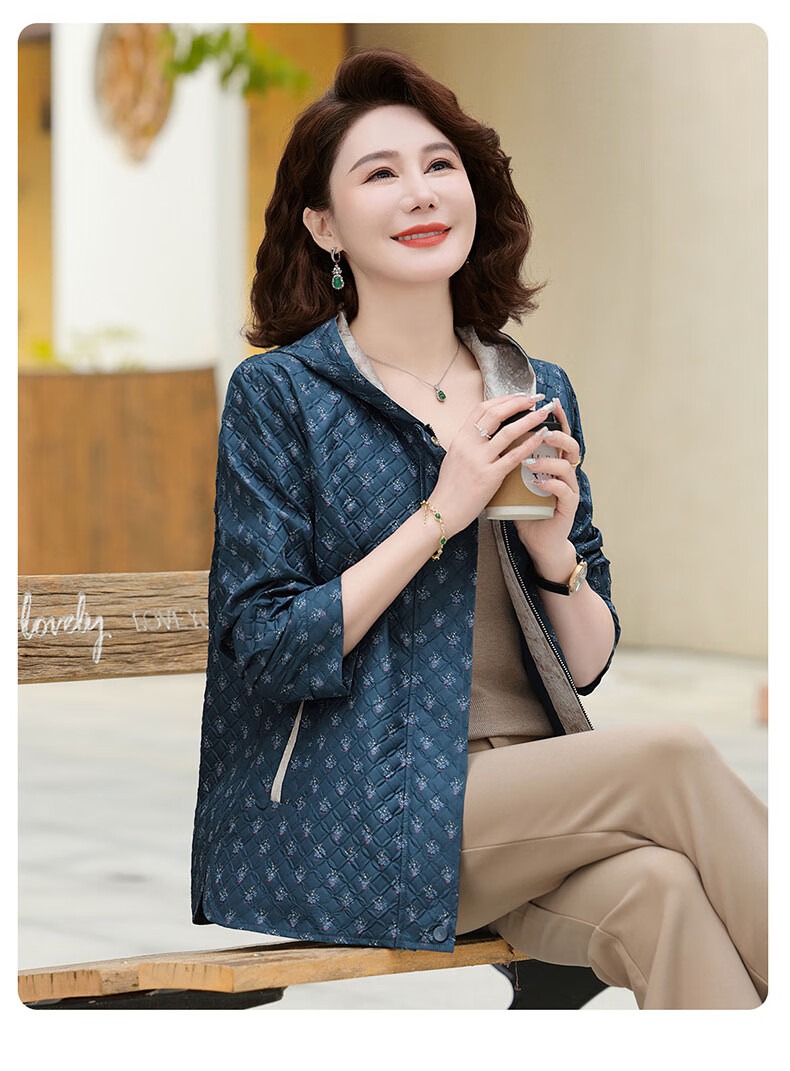 孜颜中老年女装春装夹克2026新款50-60岁洋气妈妈装春秋外套老人衣服 2503蓝色 XL 建议80-100斤