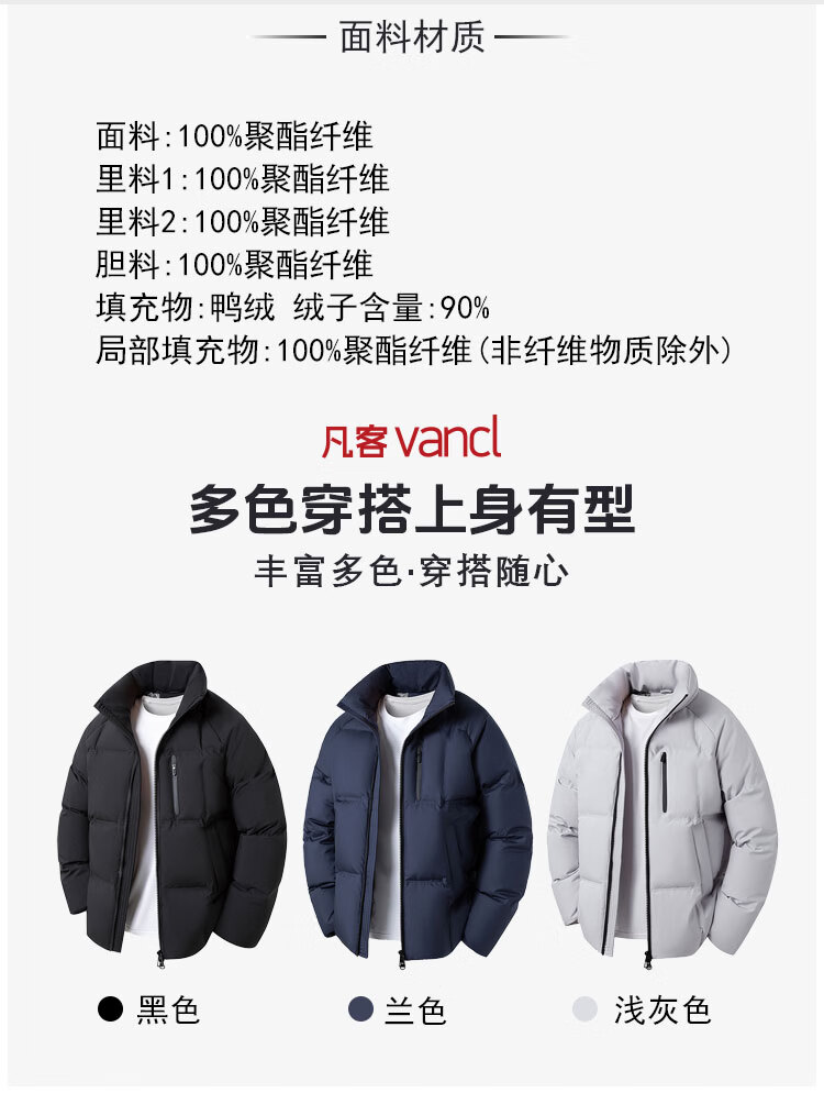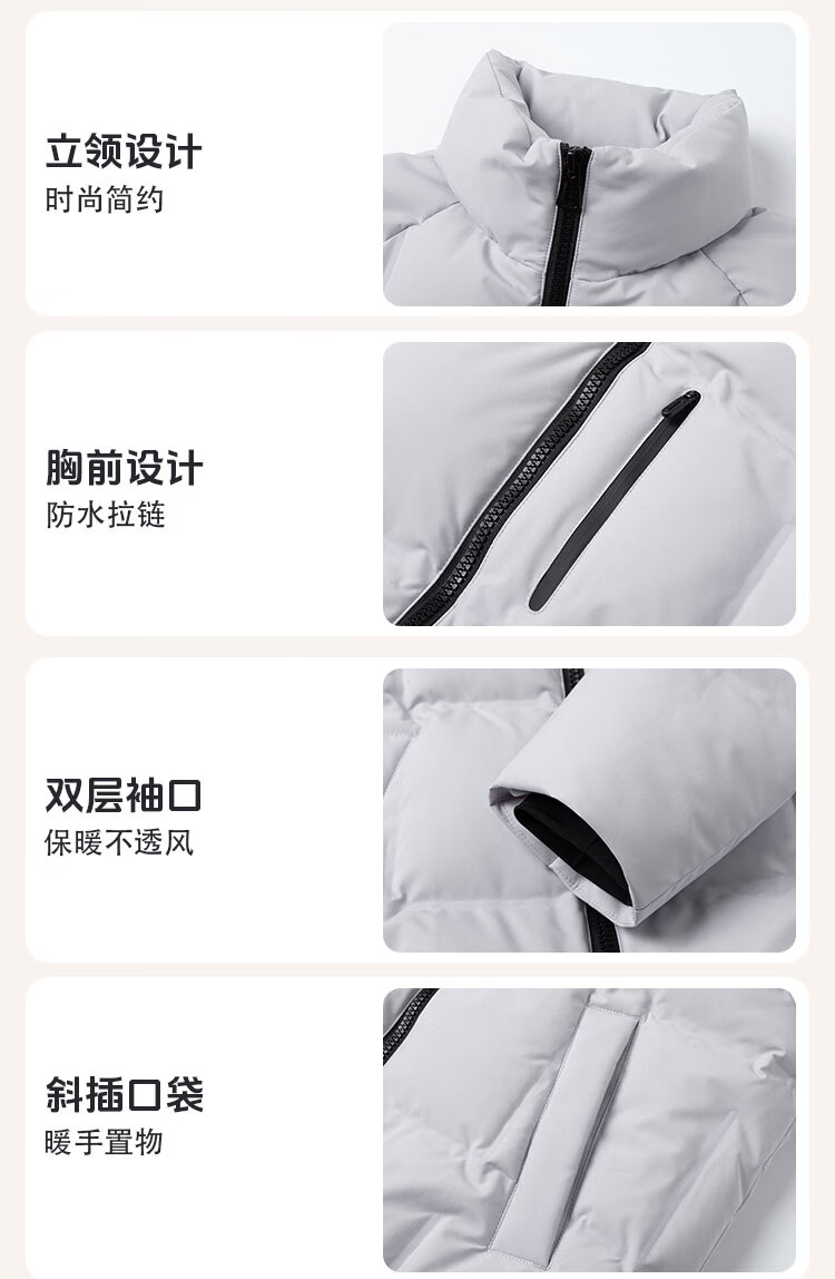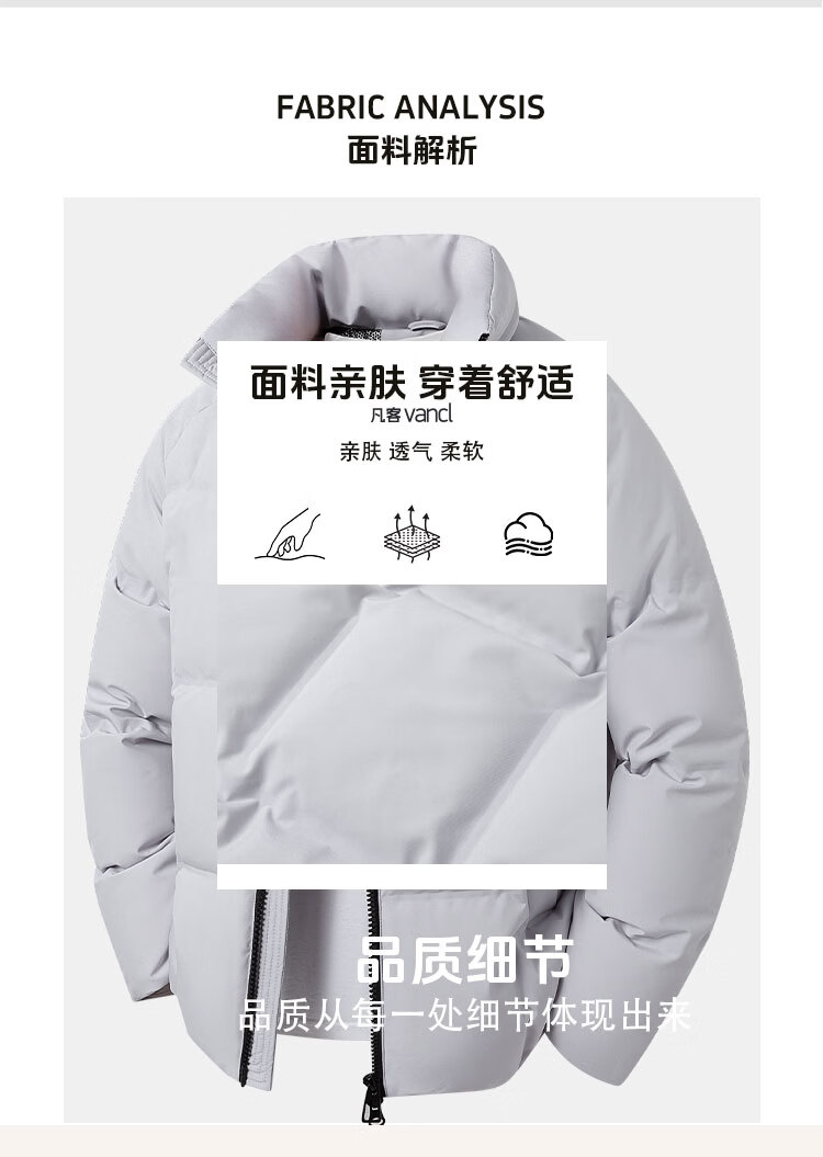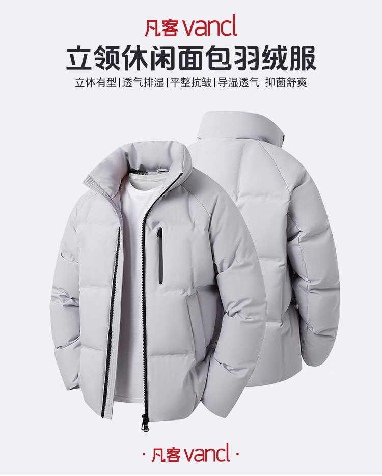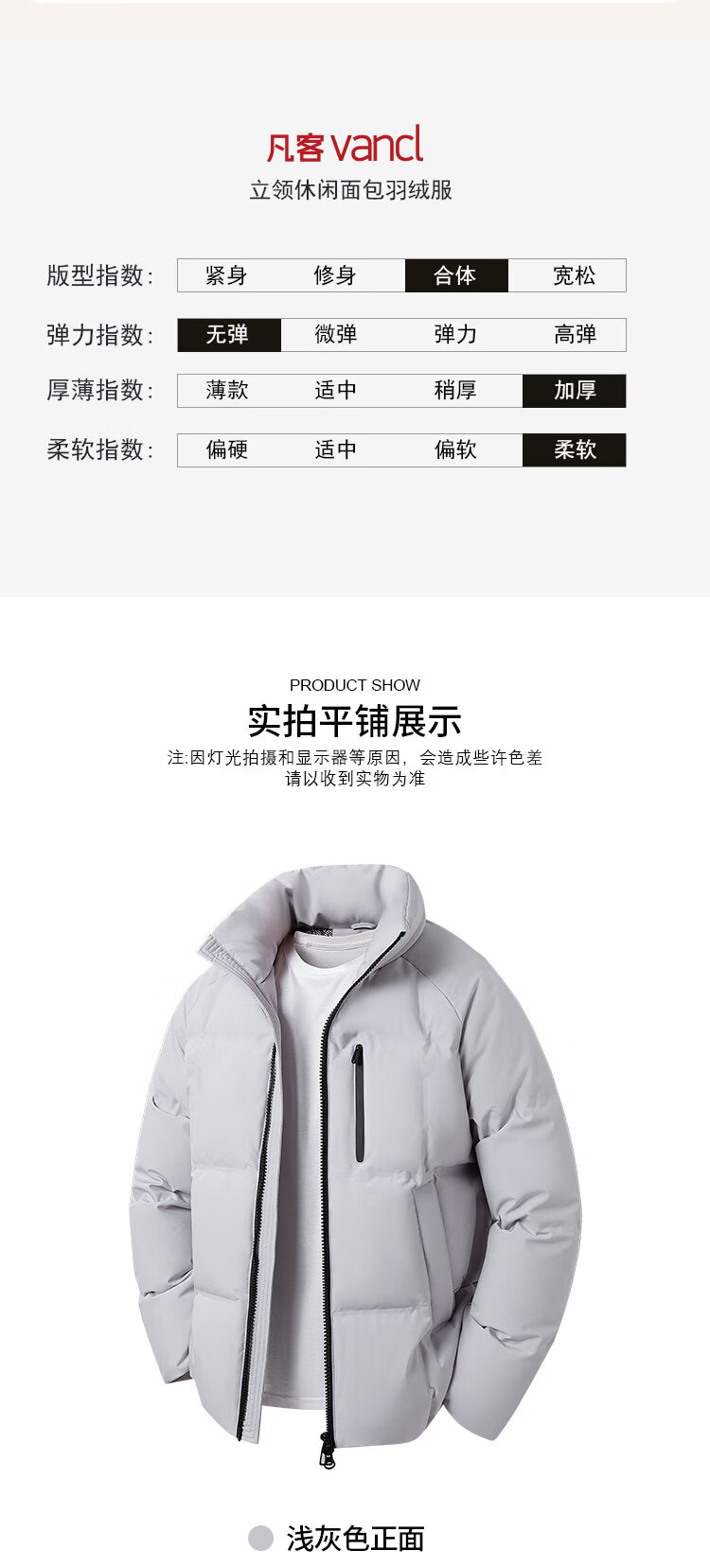凡客诚品(VANCL)凡客官方店立领休闲面包羽绒服 浅灰色 L