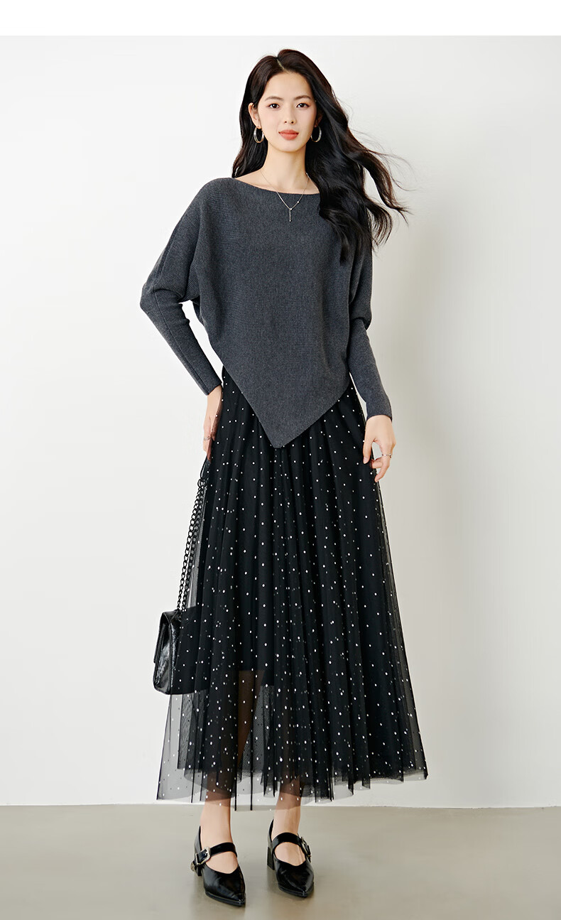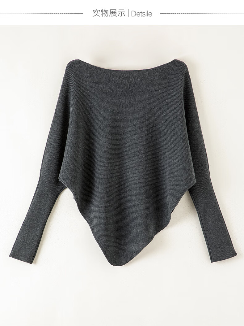 晚白【苹果型身材友好超显瘦】2026年春款蝙蝠袖大码显瘦格雷灰针织衫 灰色 S