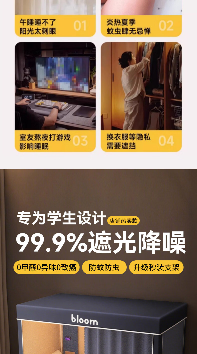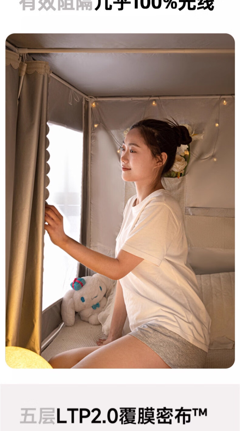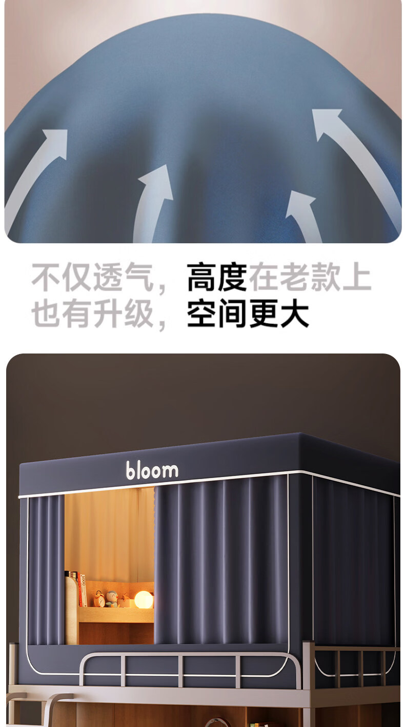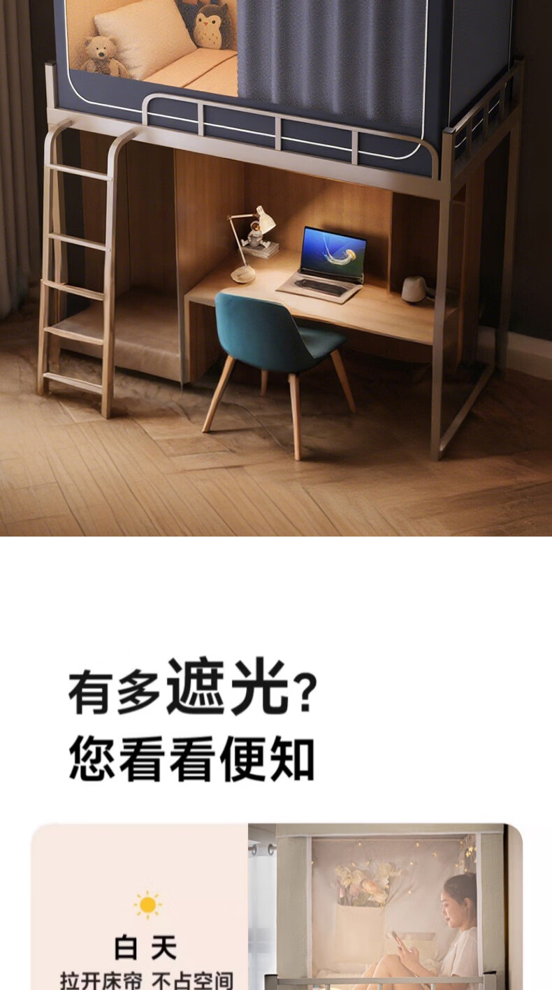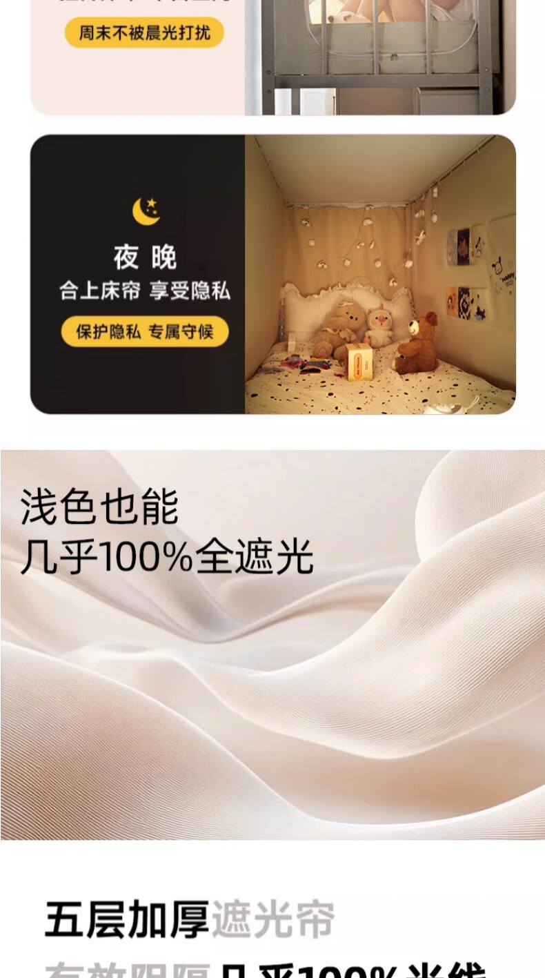 阿尔皮纳袋鼠大学生宿舍蚊帐全遮光床帘全封闭一体免安装单人上下铺寝室遮挡帘 绅士灰【帐纱+支架】 90cm*190cm 【上铺-三开门】