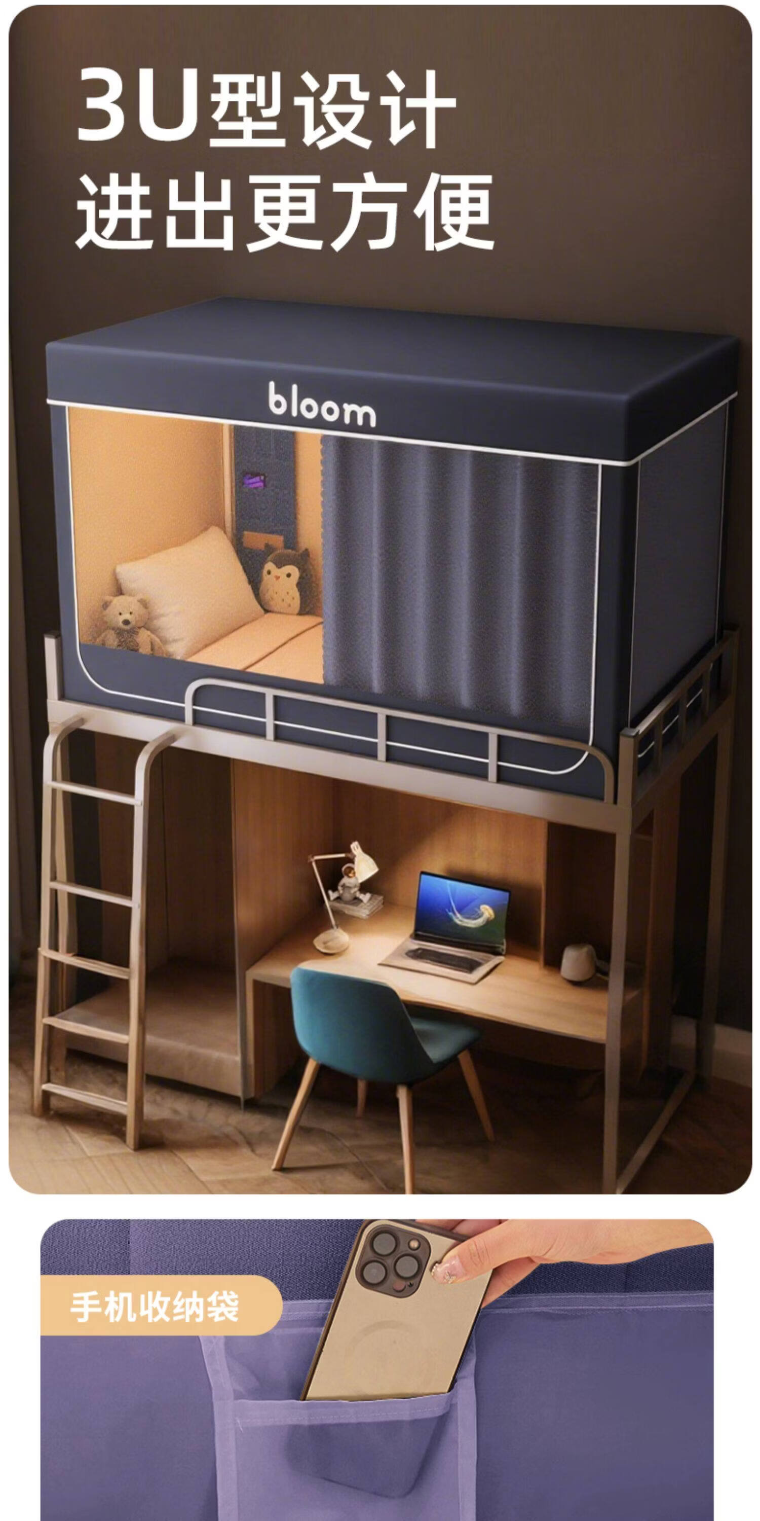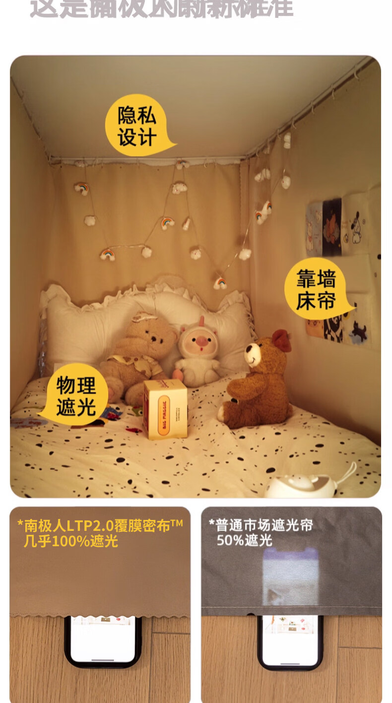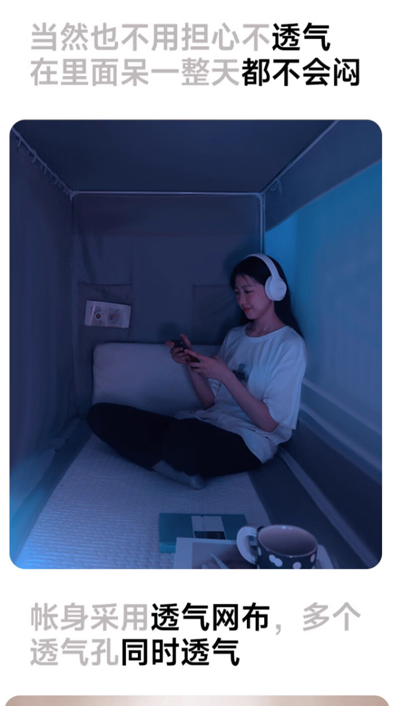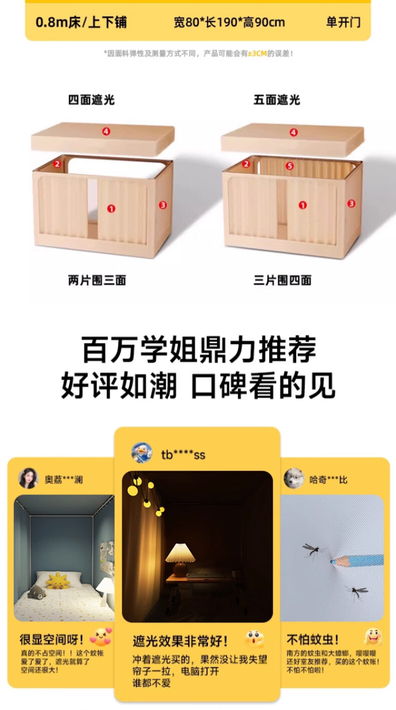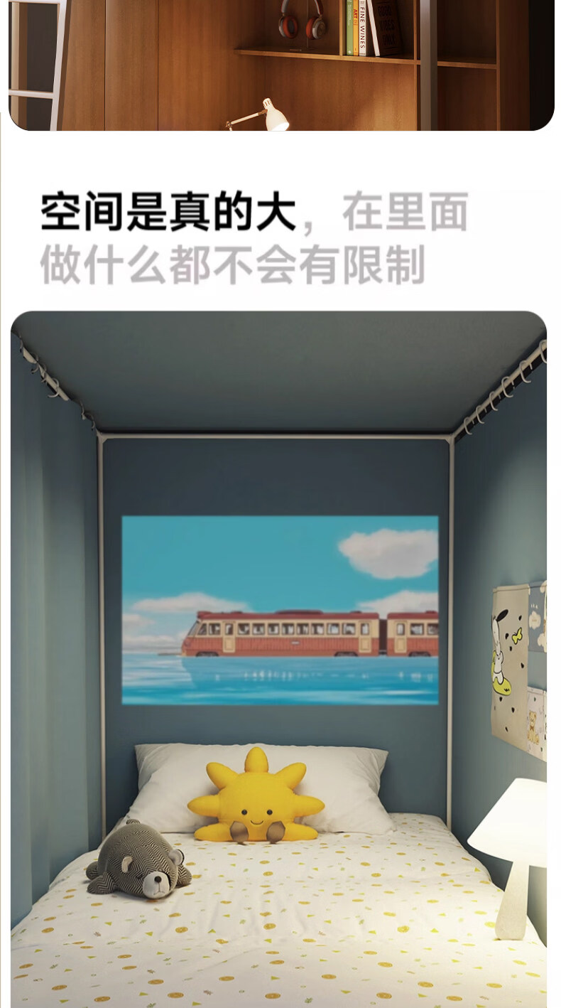 阿尔皮纳袋鼠大学生宿舍蚊帐全遮光床帘全封闭一体免安装单人上下铺寝室遮挡帘 绅士灰【帐纱+支架】 90cm*190cm 【上铺-三开门】