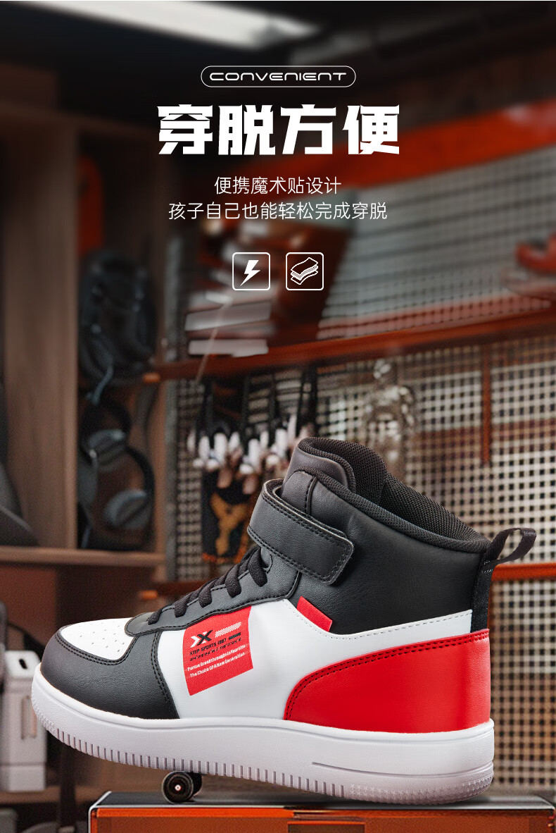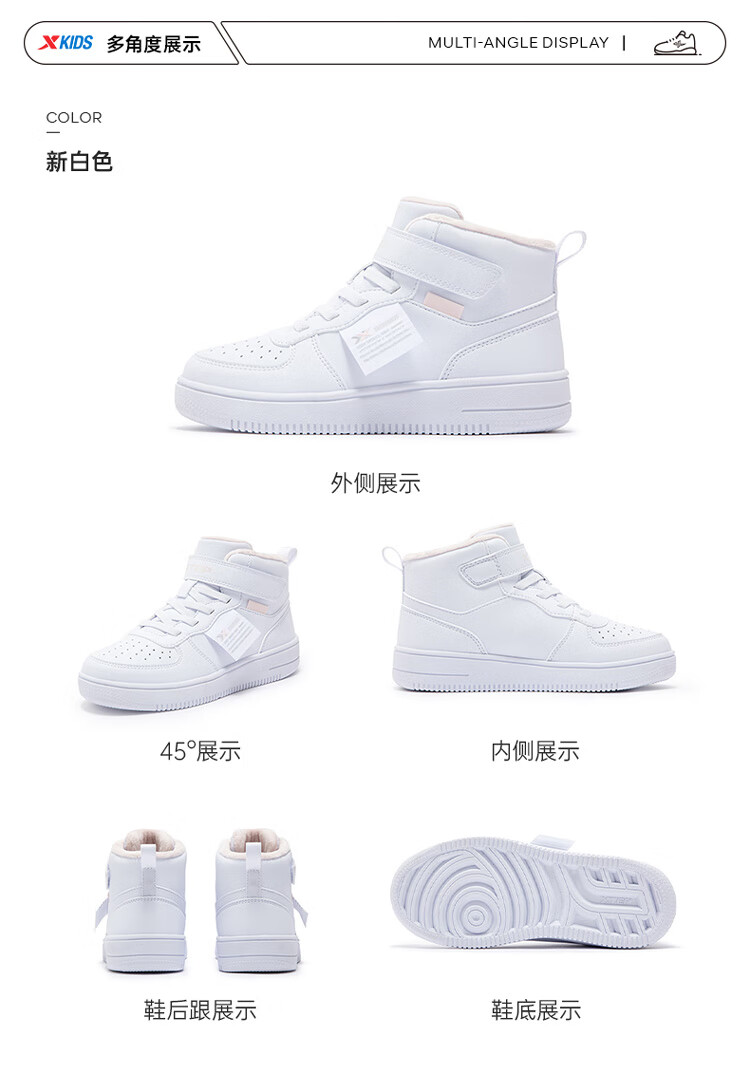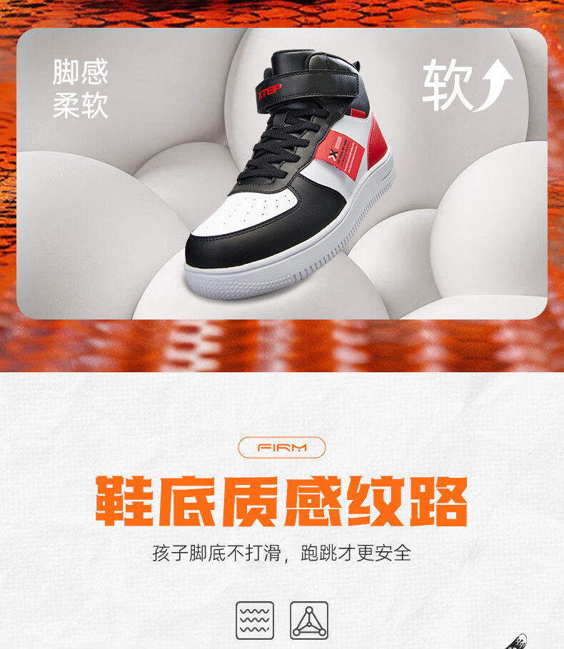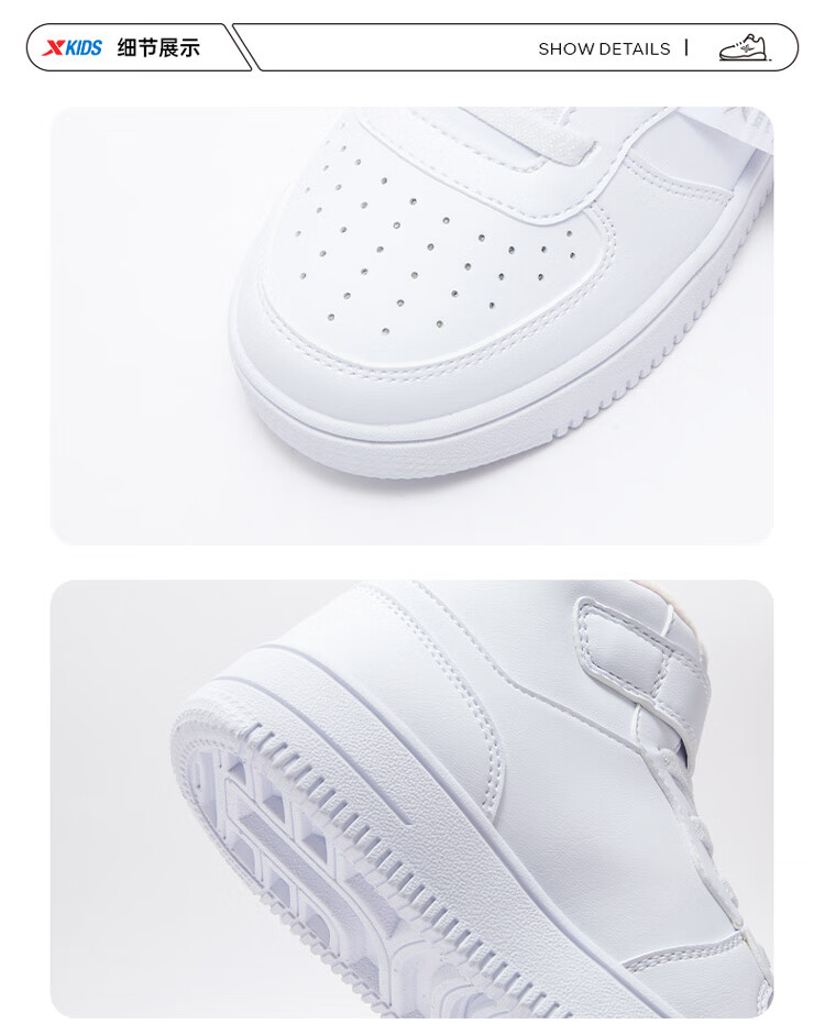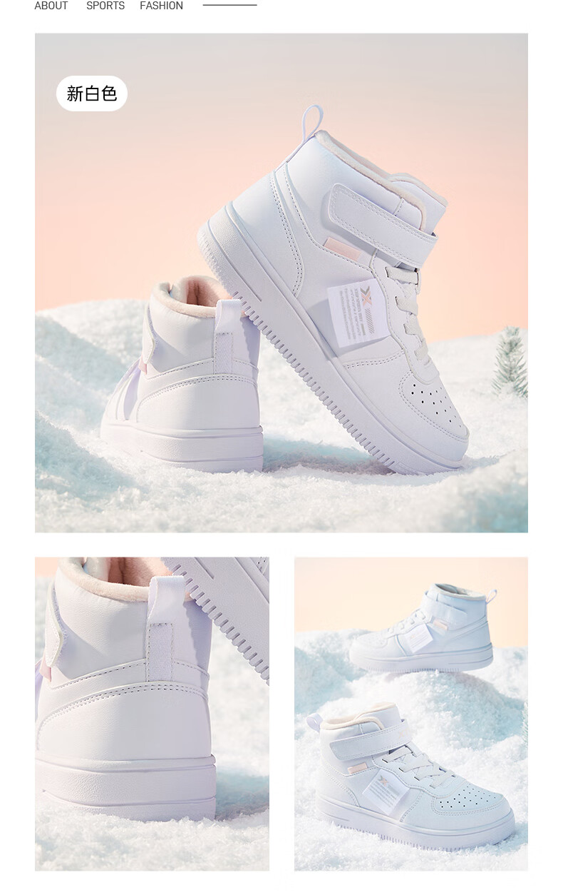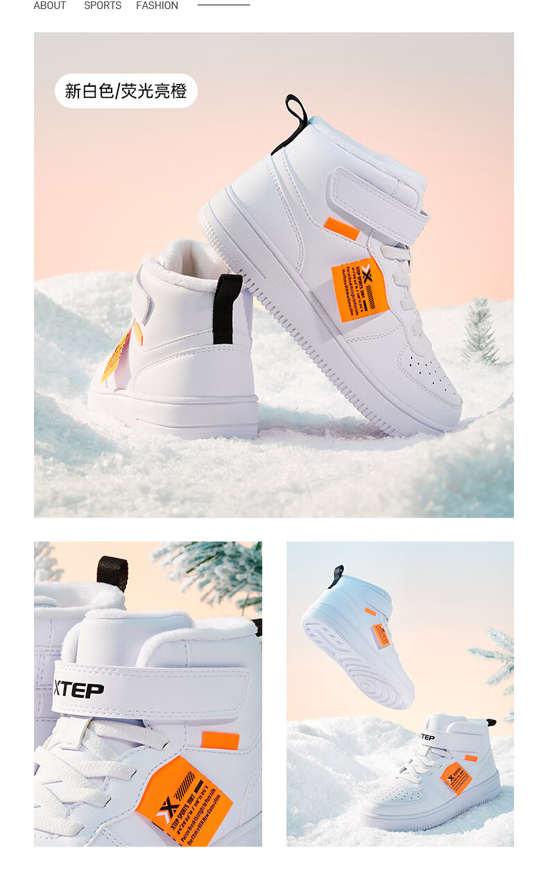 特步(XTEP)儿童童鞋男女童小童革面魔术贴搭带高帮棉鞋 黑/新白色 32码