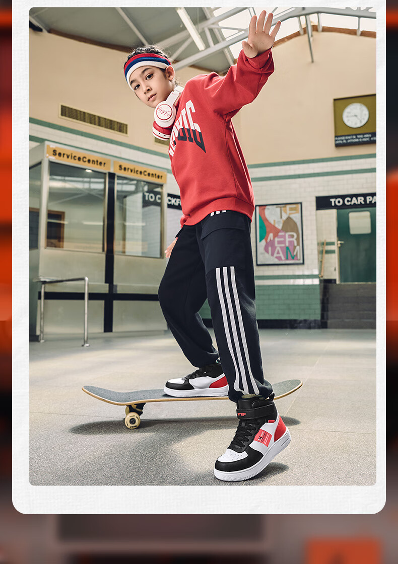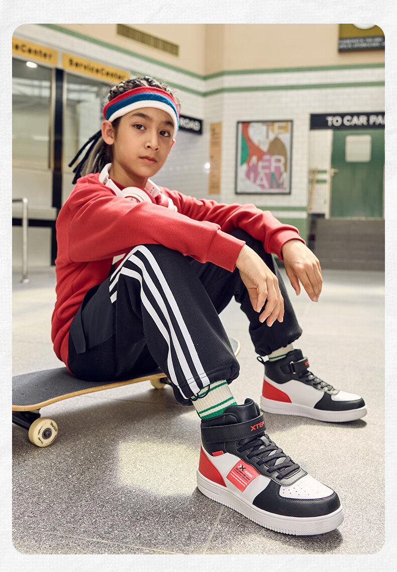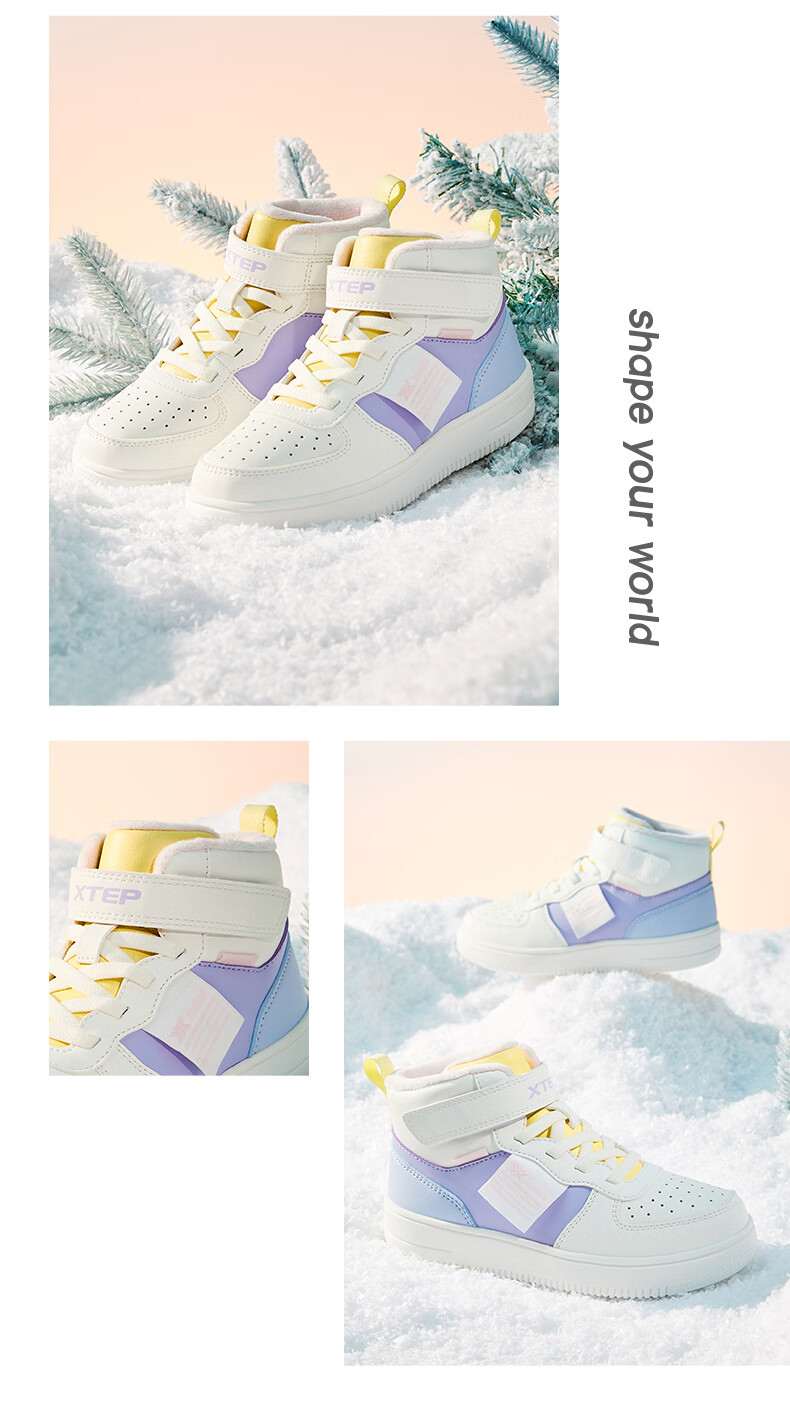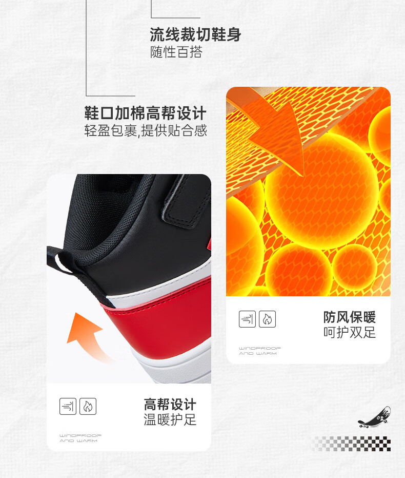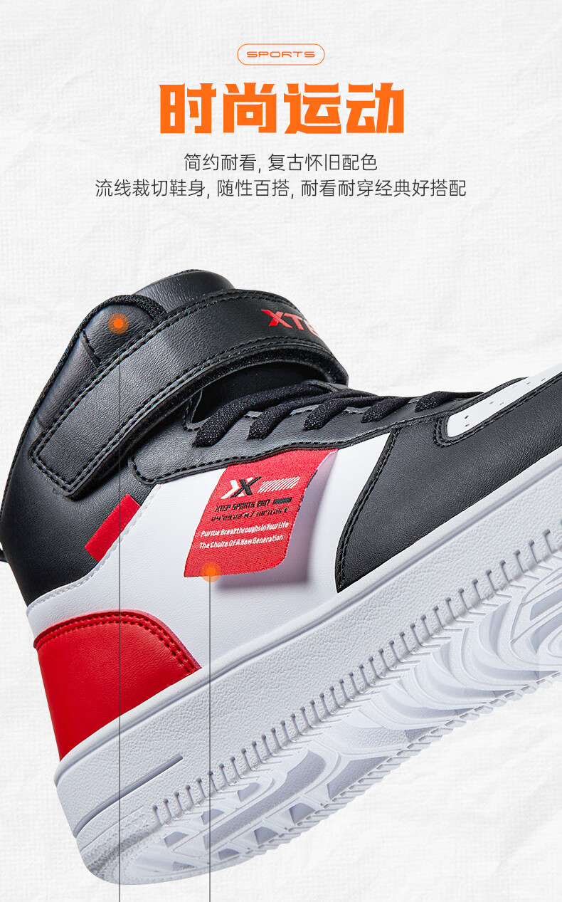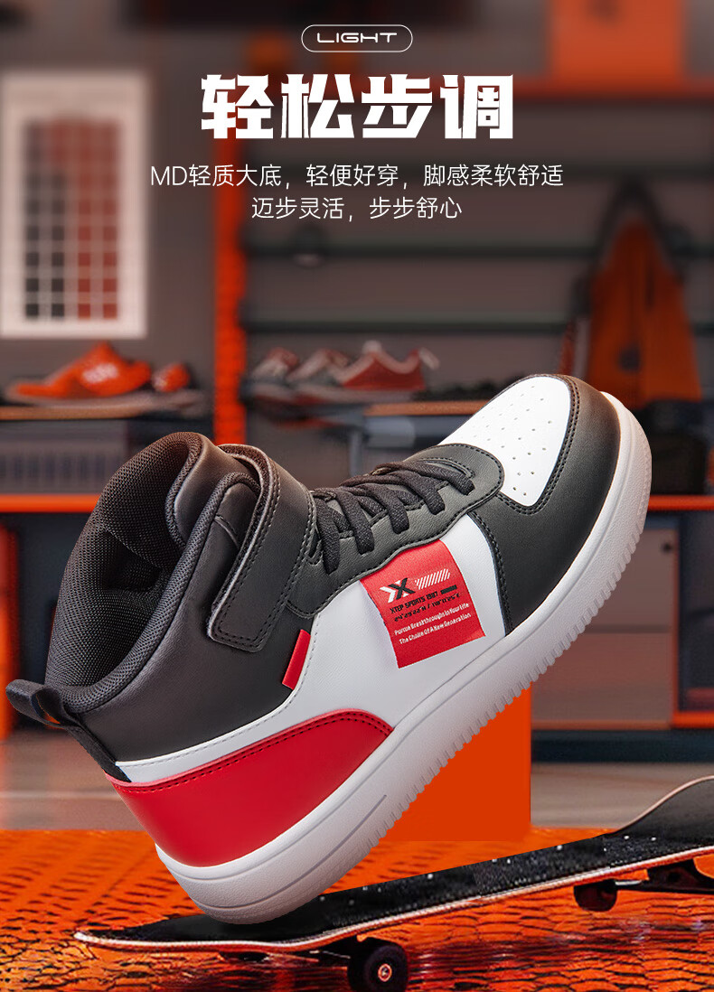特步(XTEP)儿童童鞋男女童小童革面魔术贴搭带高帮棉鞋 黑/新白色 32码