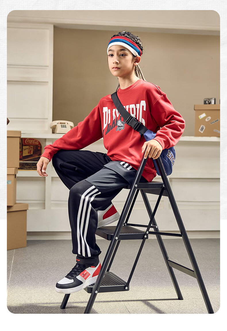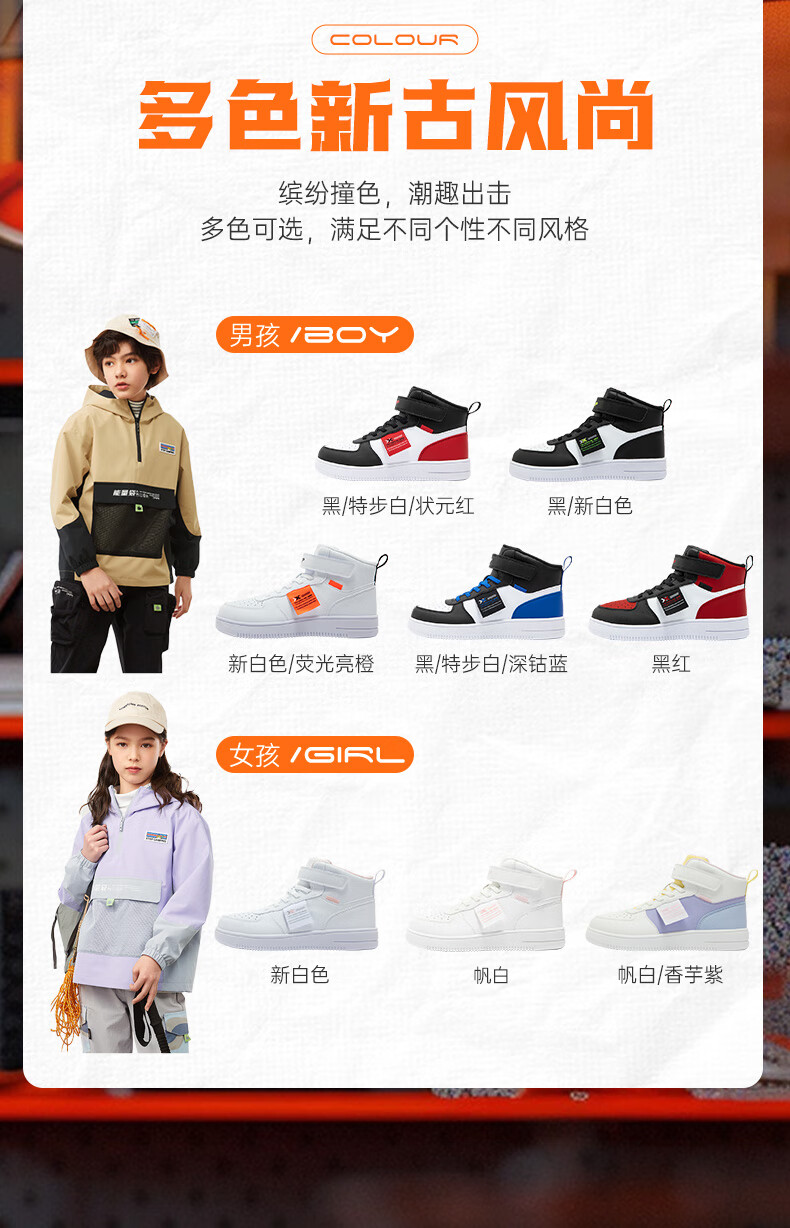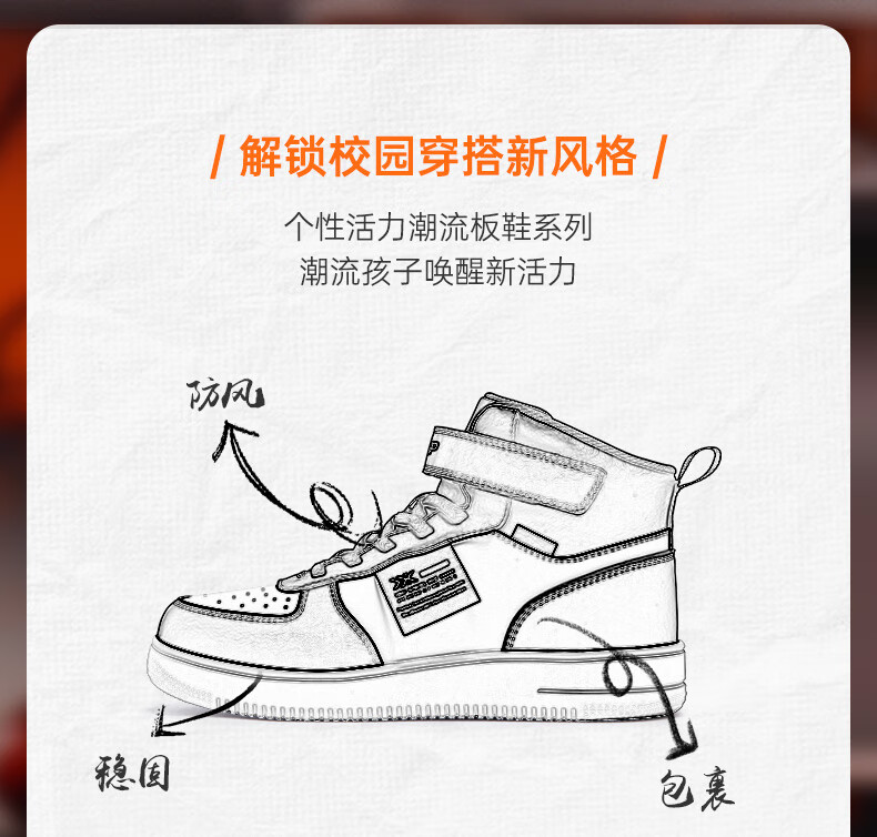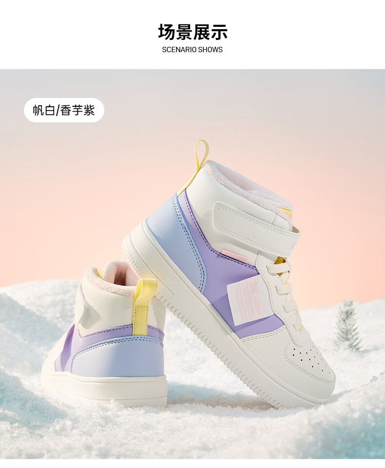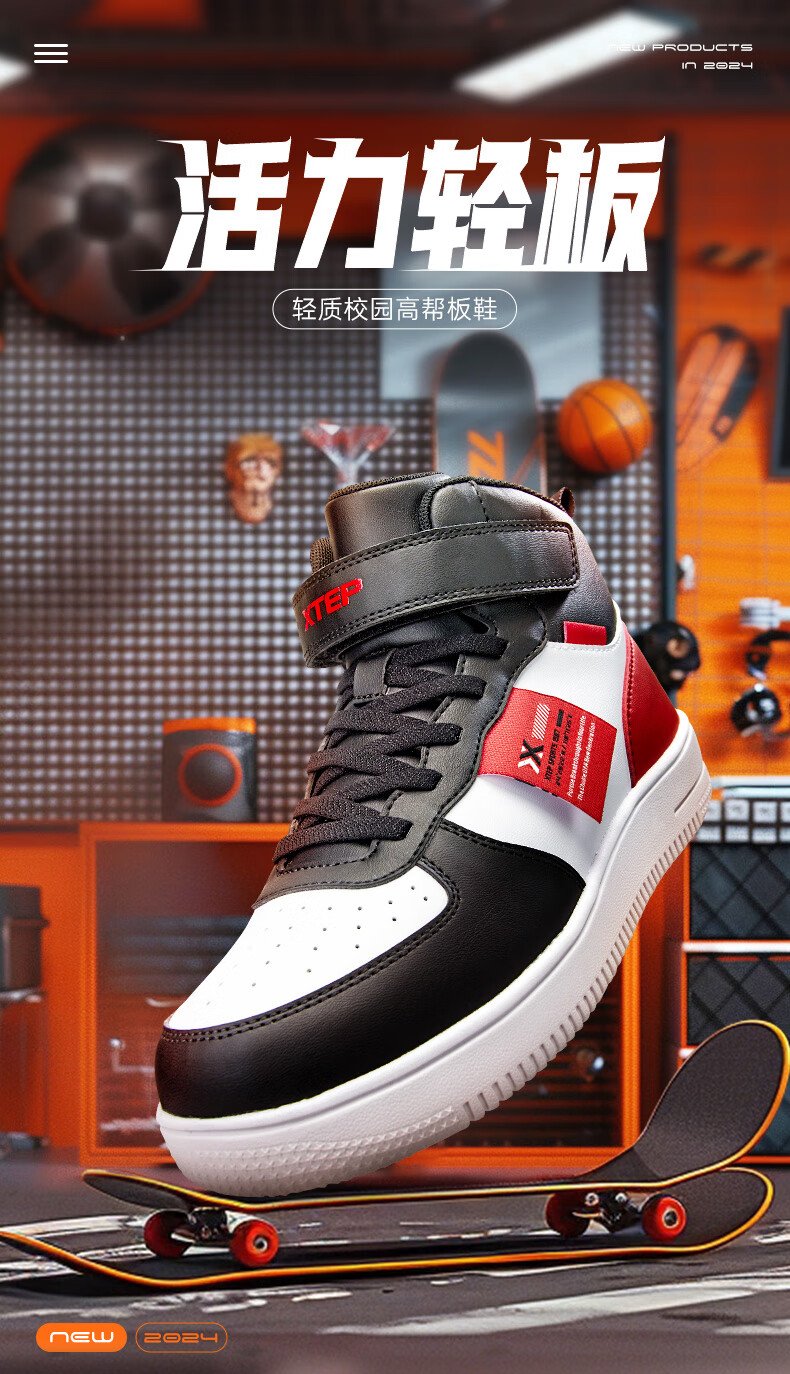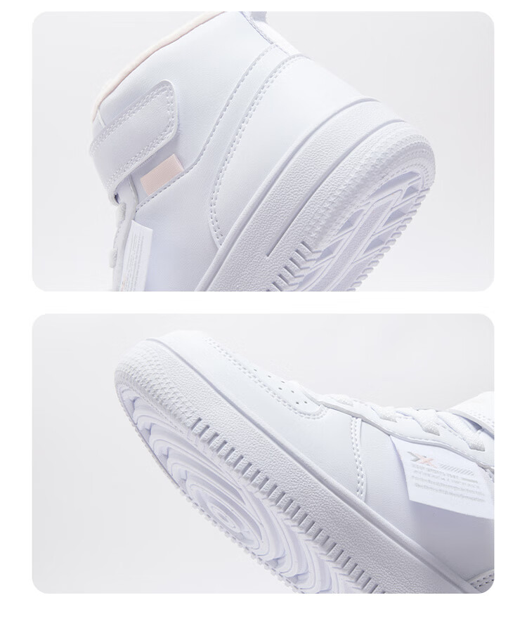 特步(XTEP)儿童童鞋男女童小童革面魔术贴搭带高帮棉鞋 黑/新白色 32码