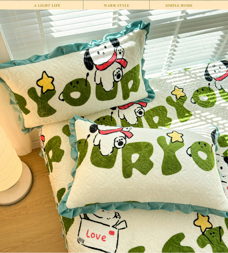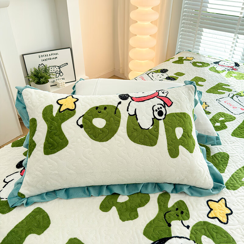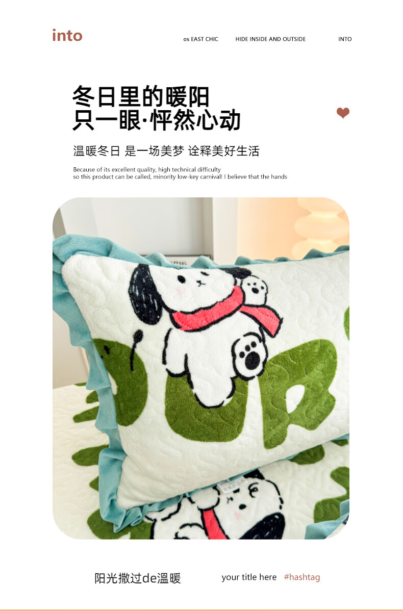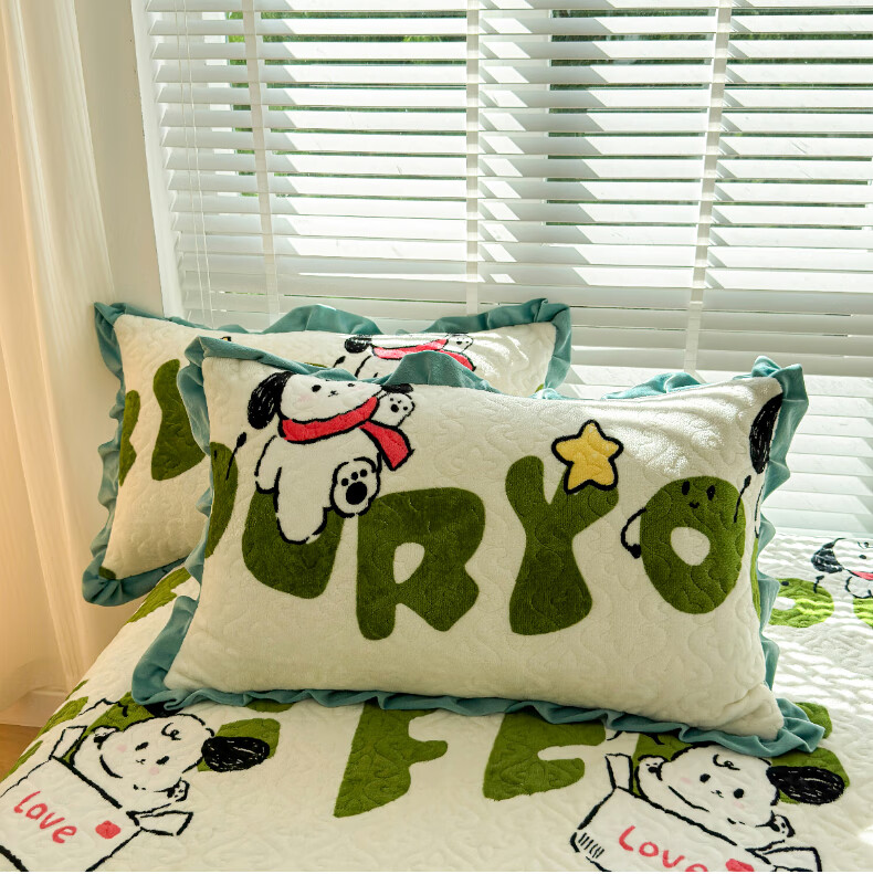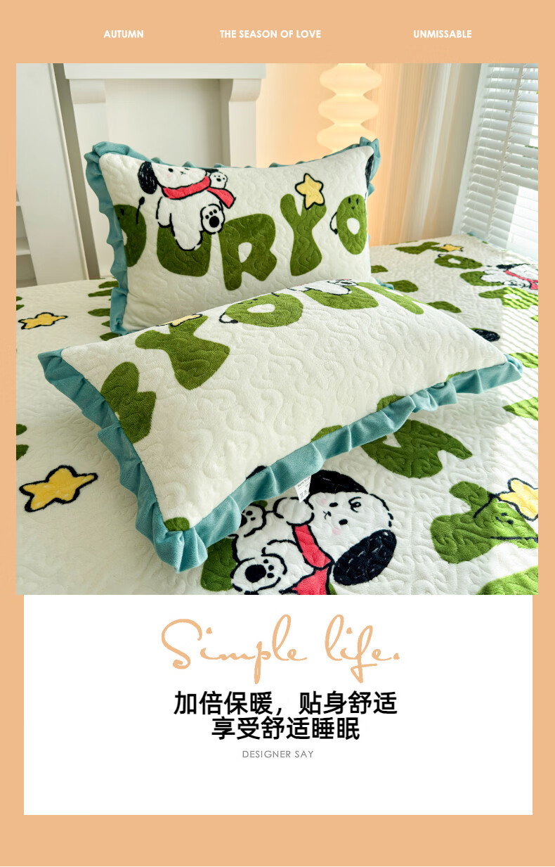 卡通高克重牛奶绒加厚枕套珊瑚绒睡眠家用加绒枕芯套内胆套枕头套 乐乐狗QBY 牛奶绒加厚枕套单只装