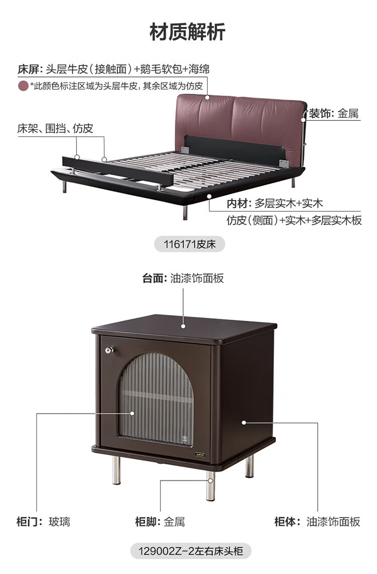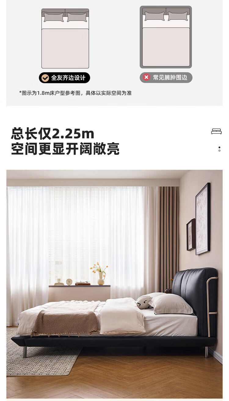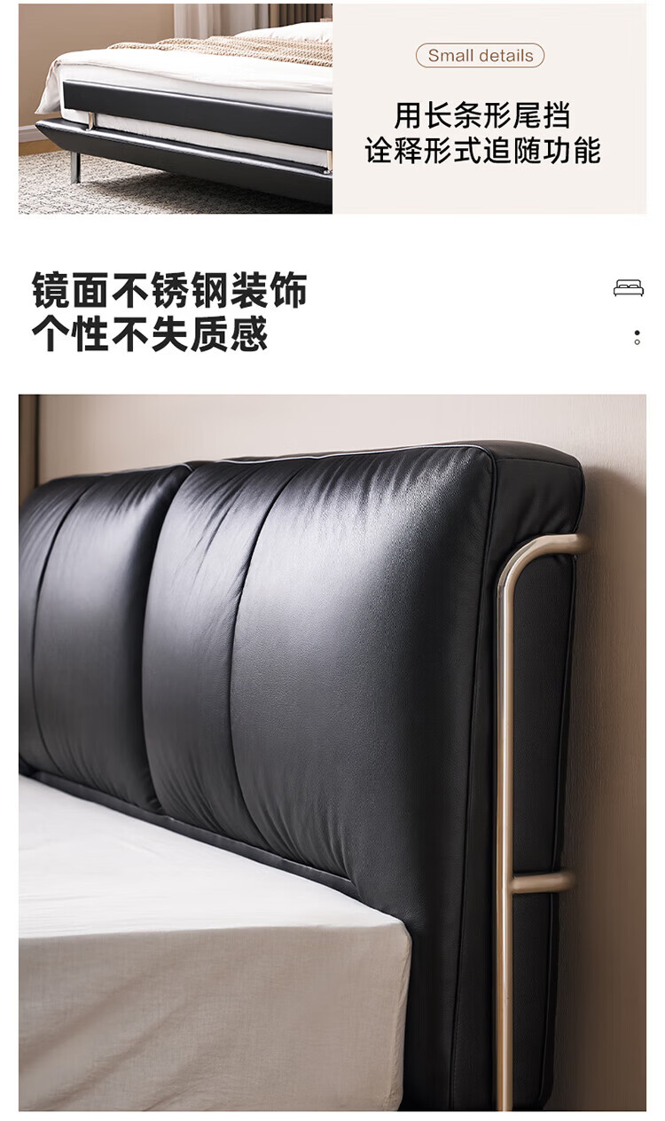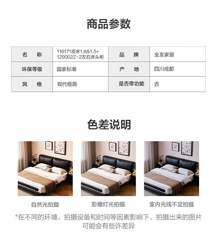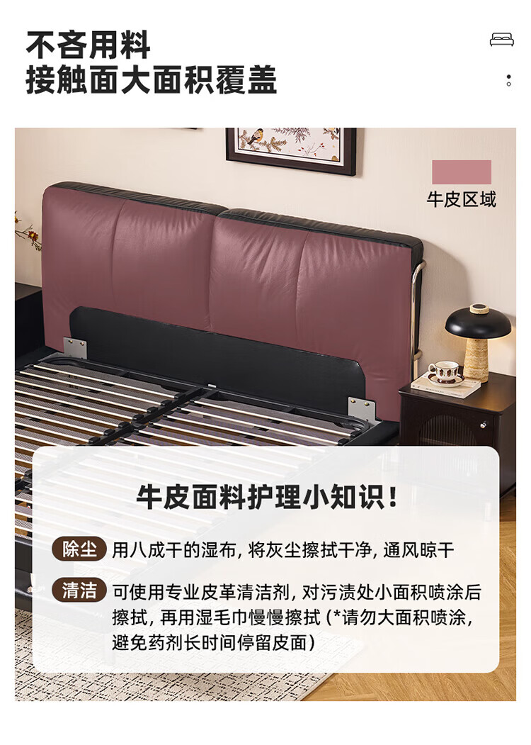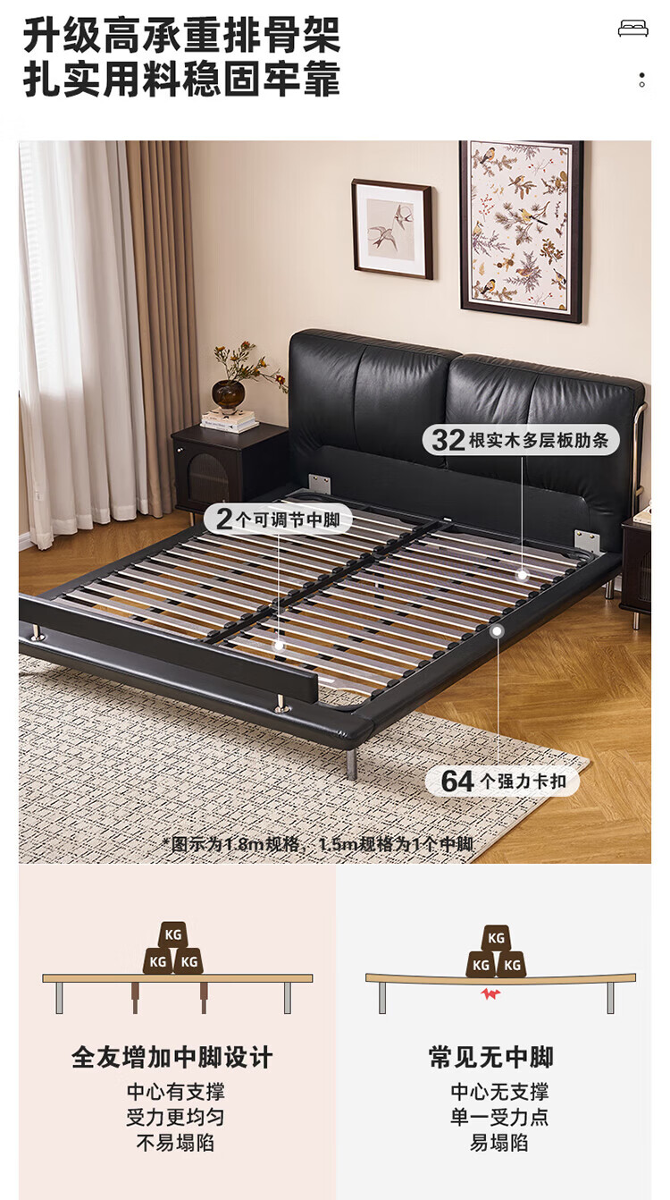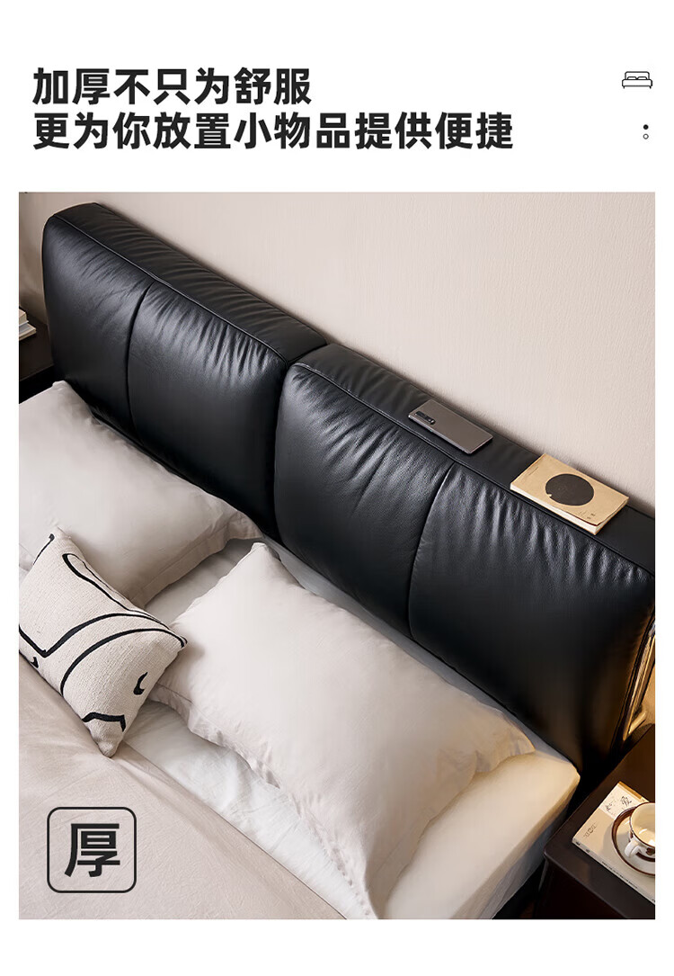 全友(QUANU)【迷瞪清仓货盘】真皮床头家用主卧室层牛皮软包床双人高脚大床 牛皮|单床+(左+右)床头柜+床垫 1.8米