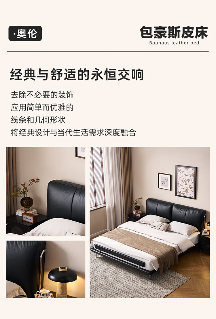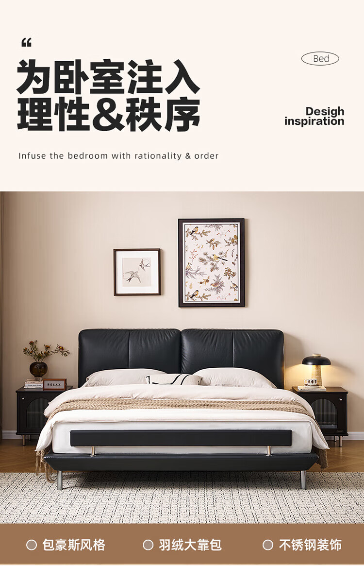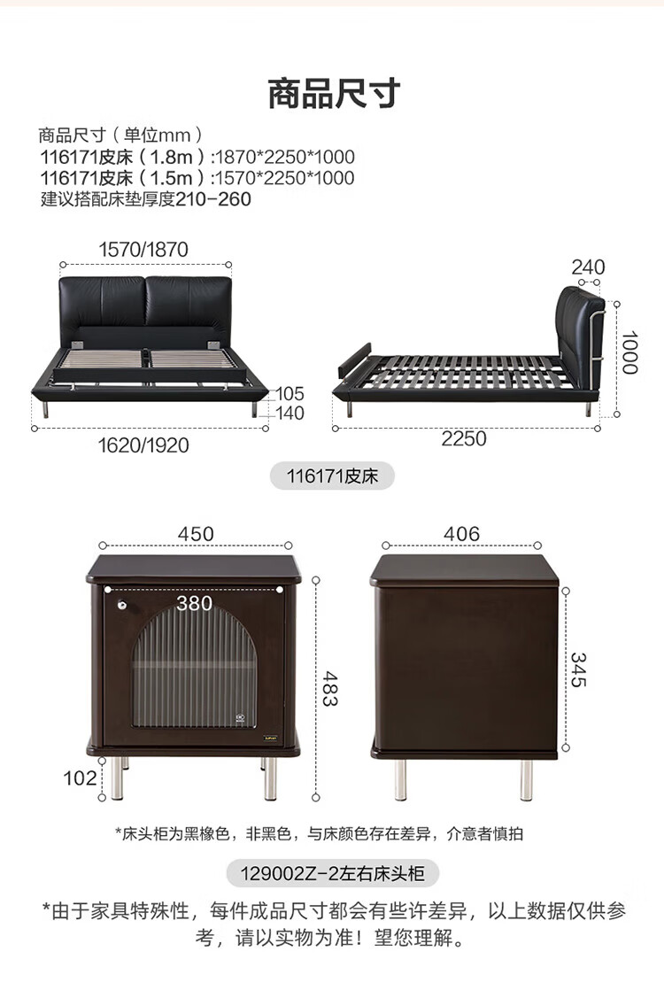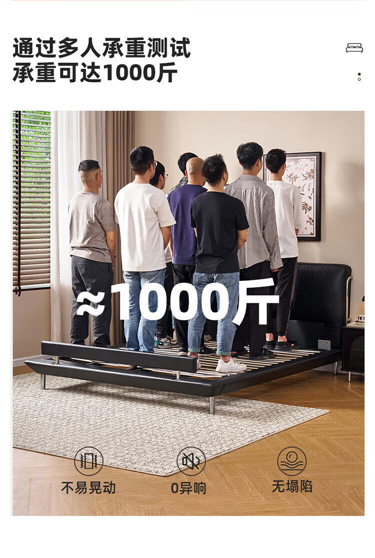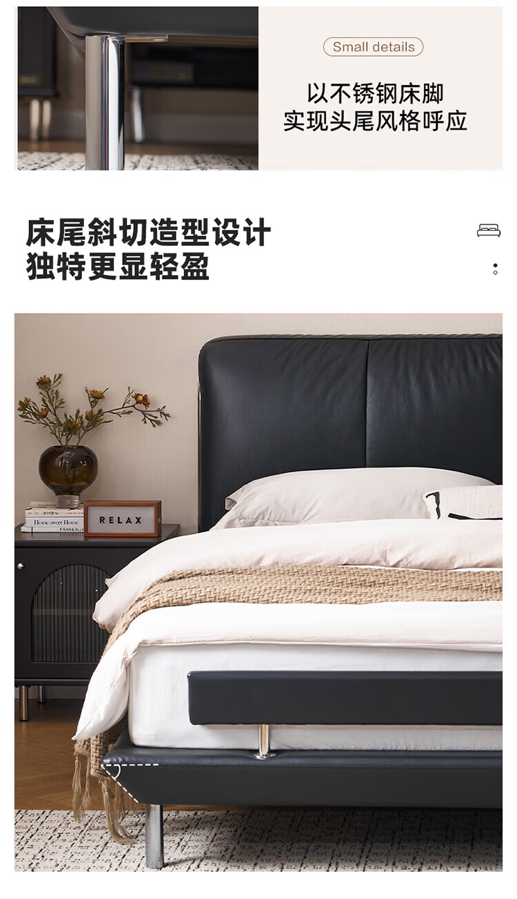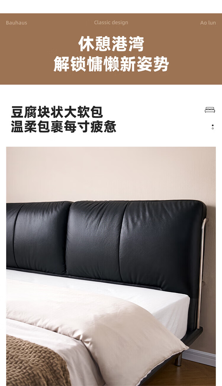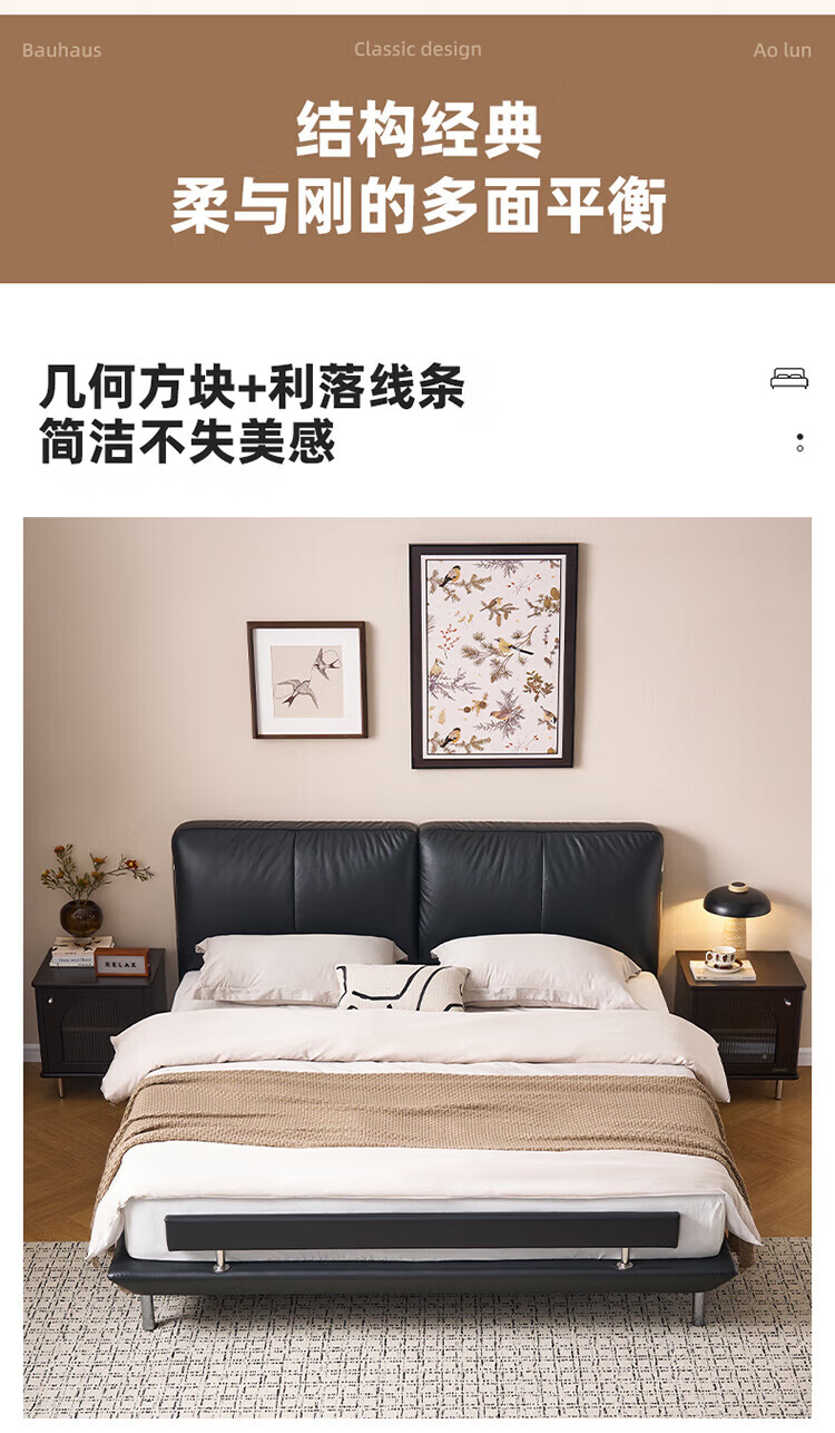 全友(QUANU)【迷瞪清仓货盘】真皮床头家用主卧室层牛皮软包床双人高脚大床 牛皮|单床+(左+右)床头柜+床垫 1.8米