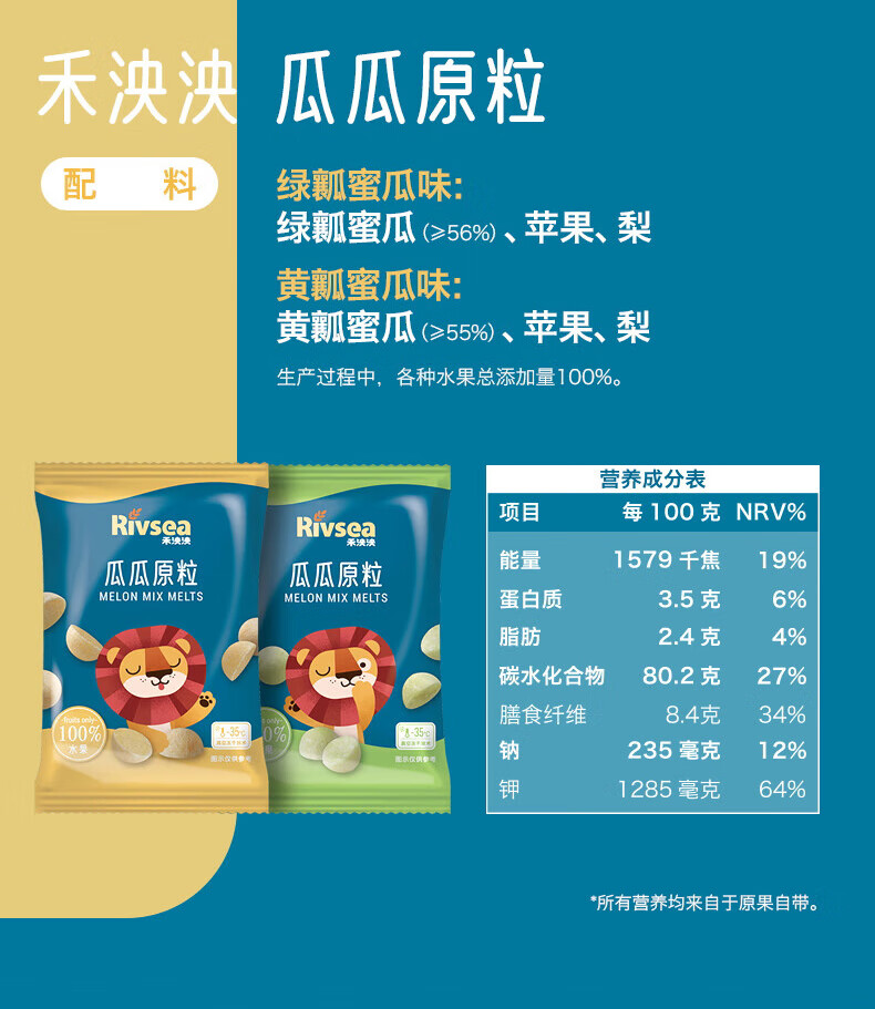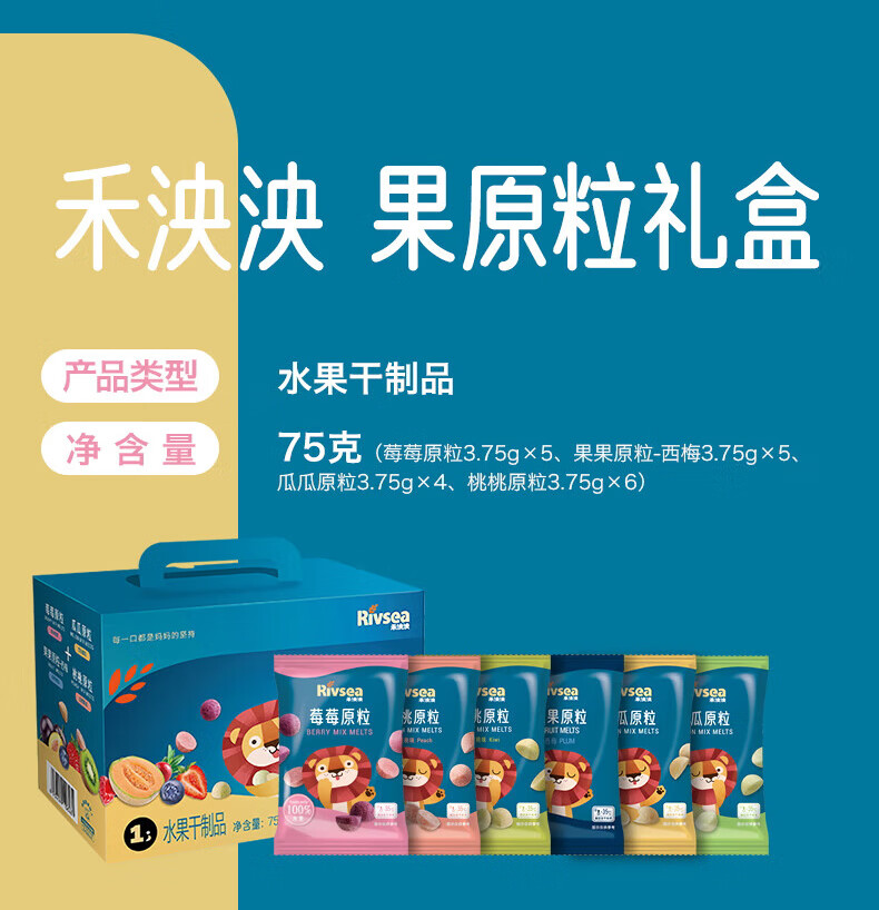 禾泱泱水果原粒礼盒75g 多倍水果浓缩100%水果入口易溶宝宝零食
