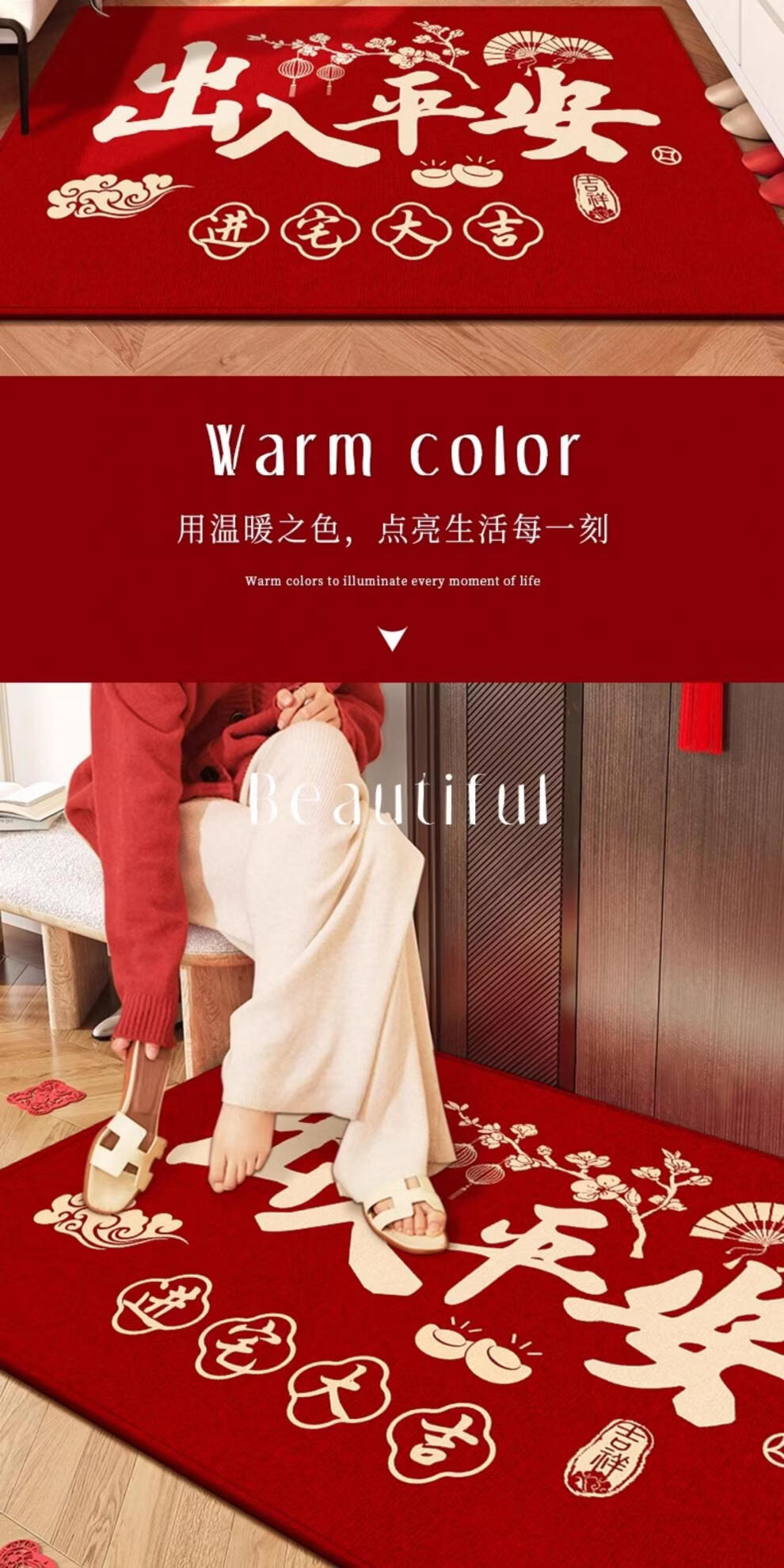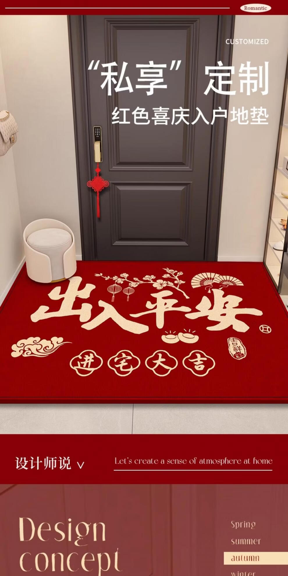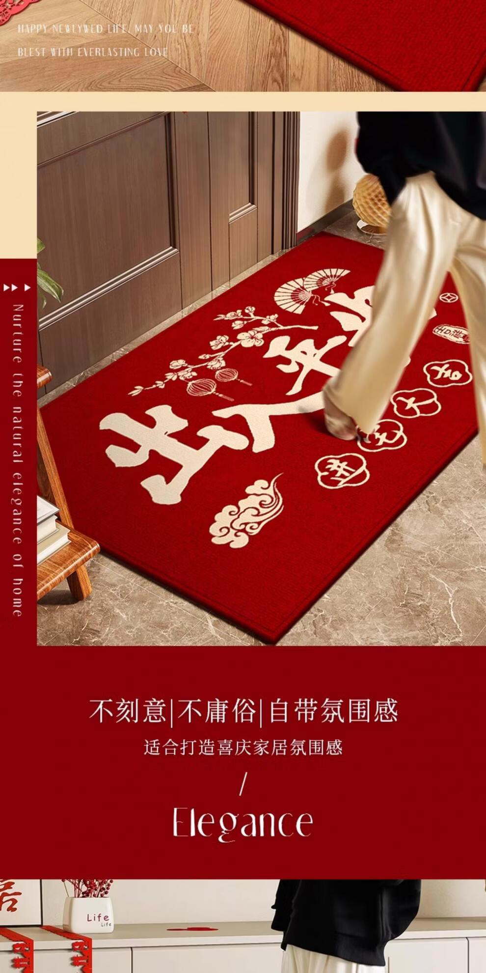DONOYA 多罗亚2026马年地垫入户门垫红色喜庆门口入户地垫玄关入户门地垫 马年柿柿如意QR-4105 1cm*1cm 定制联系客服改价