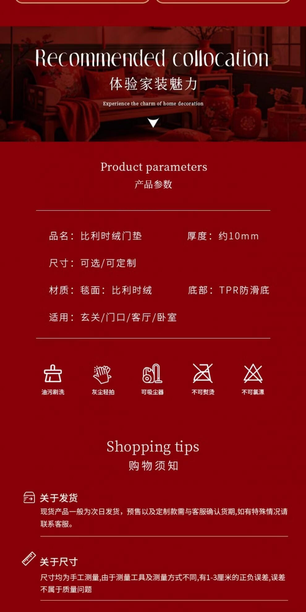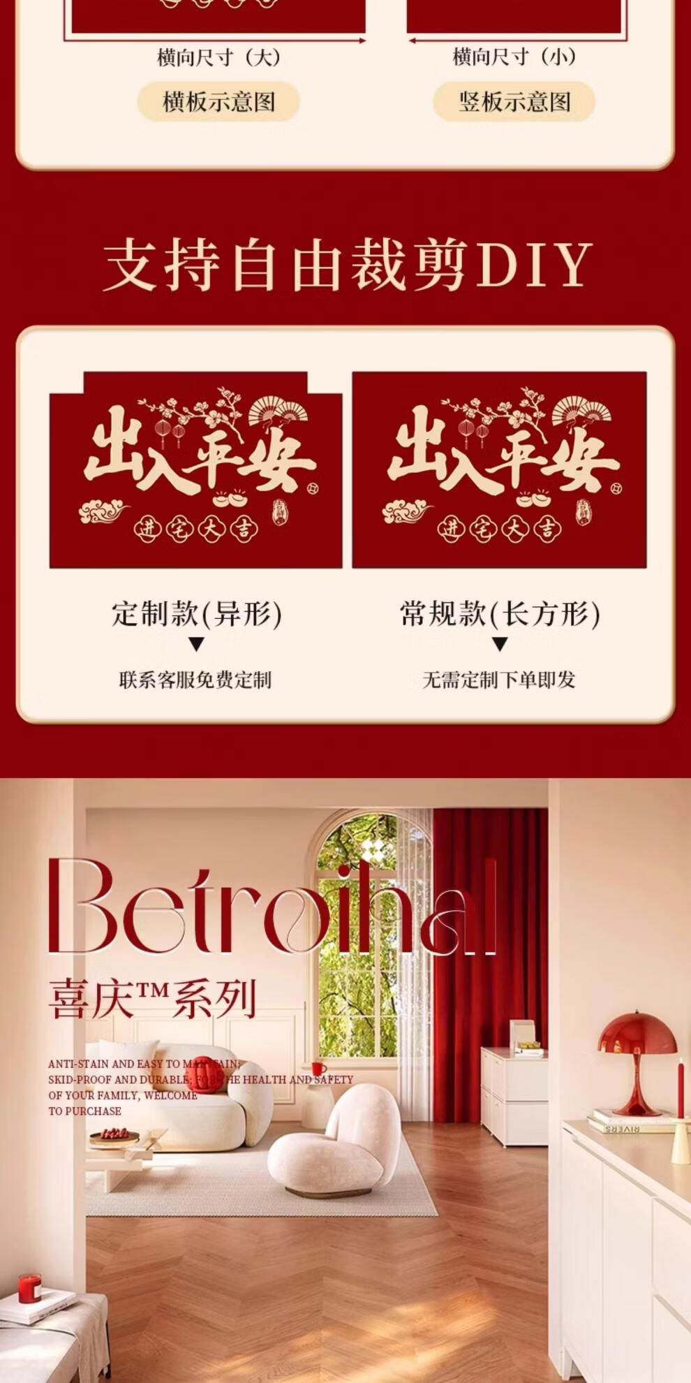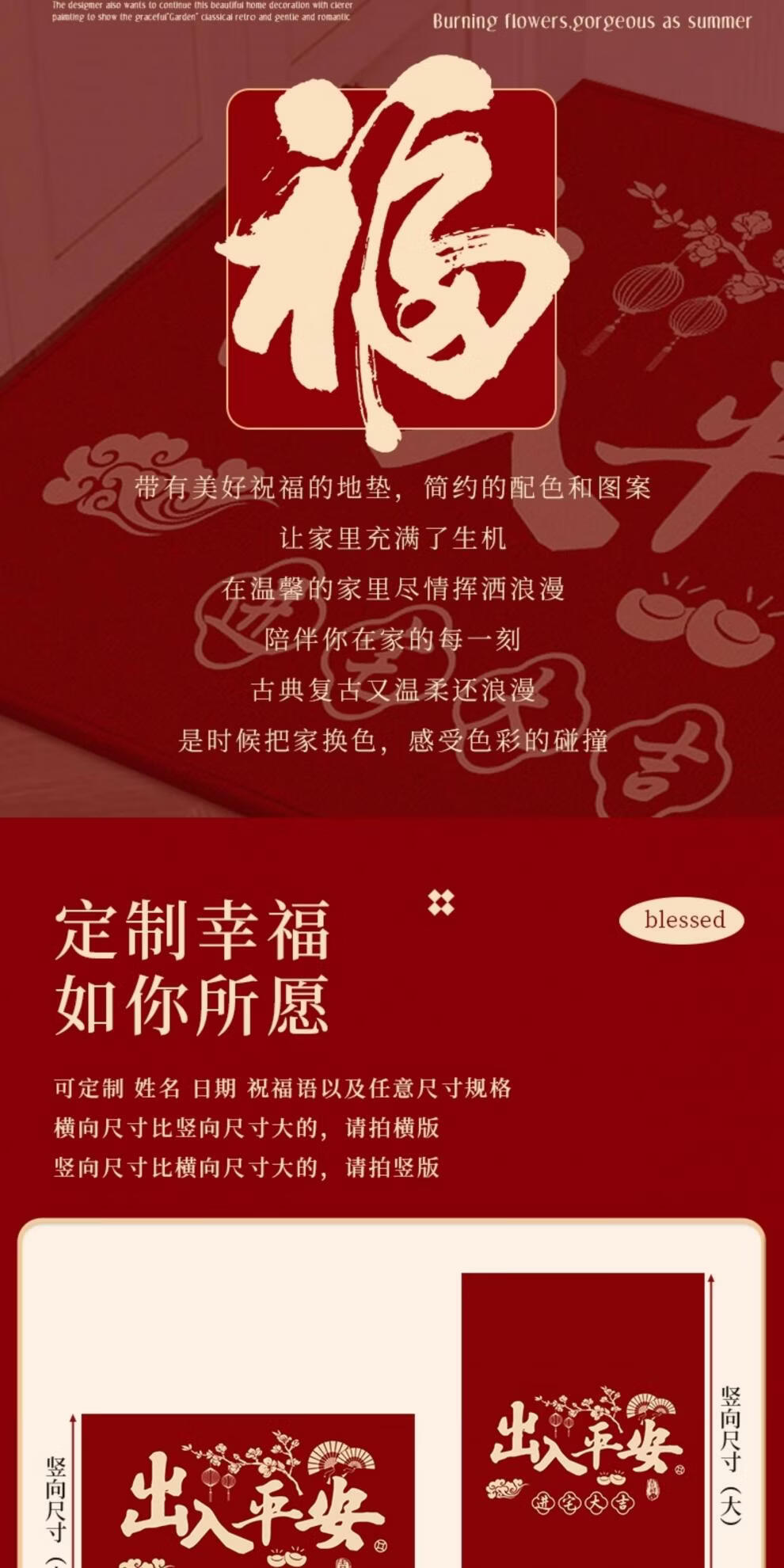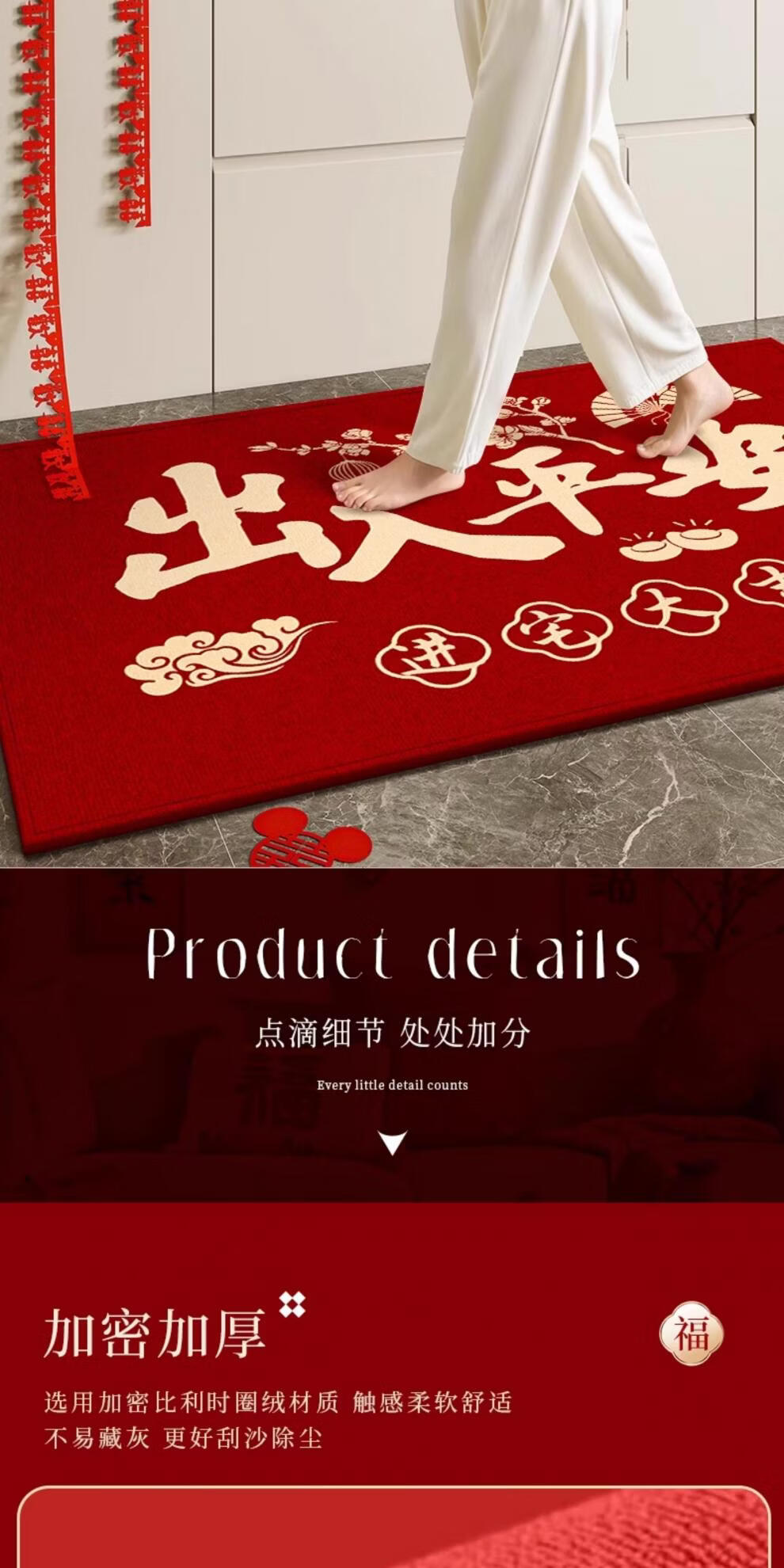 DONOYA 多罗亚2026马年地垫入户门垫红色喜庆门口入户地垫玄关入户门地垫 马年柿柿如意QR-4105 1cm*1cm 定制联系客服改价