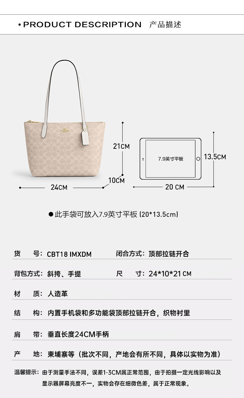 蔻驰(COACH)【品牌直供】女包FIONA24小号单肩托特包 CBT18生日礼物