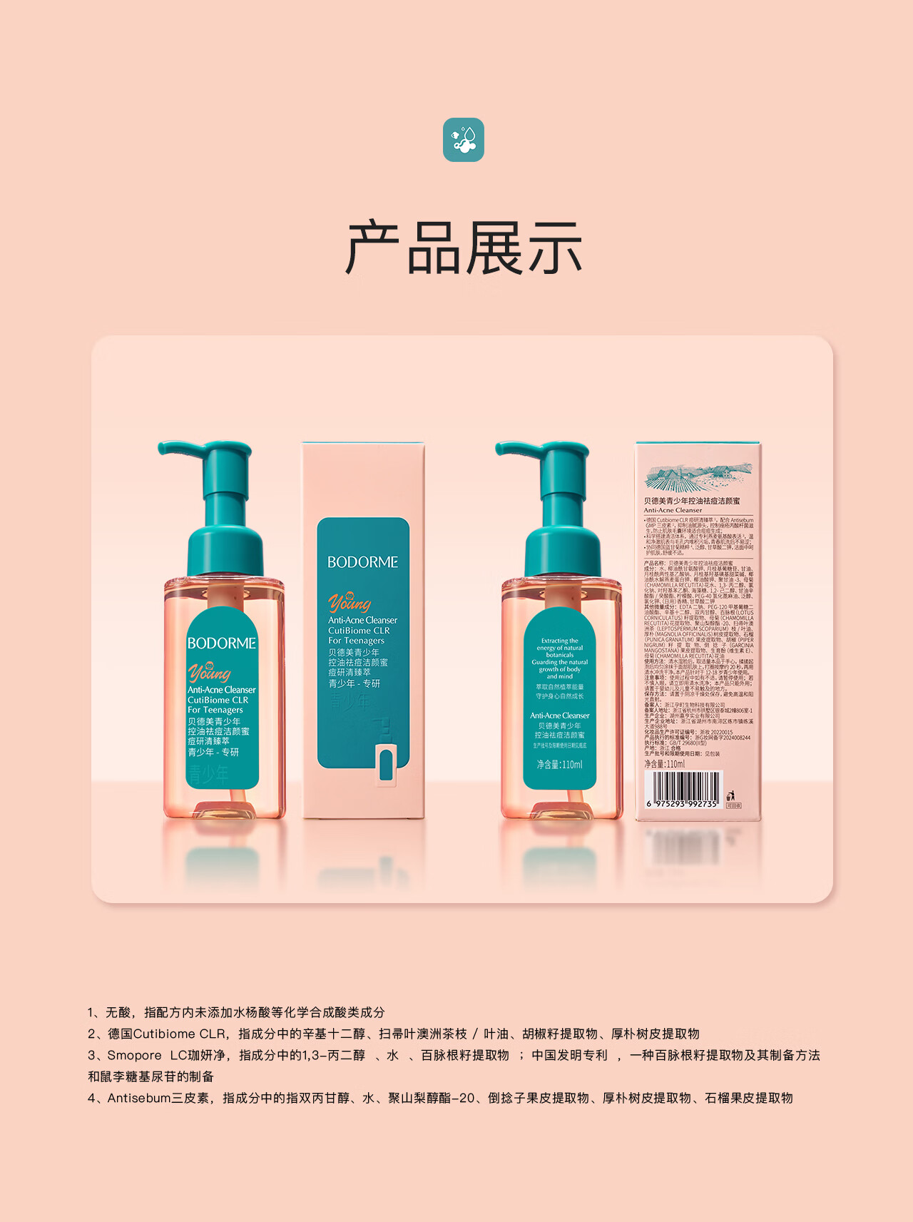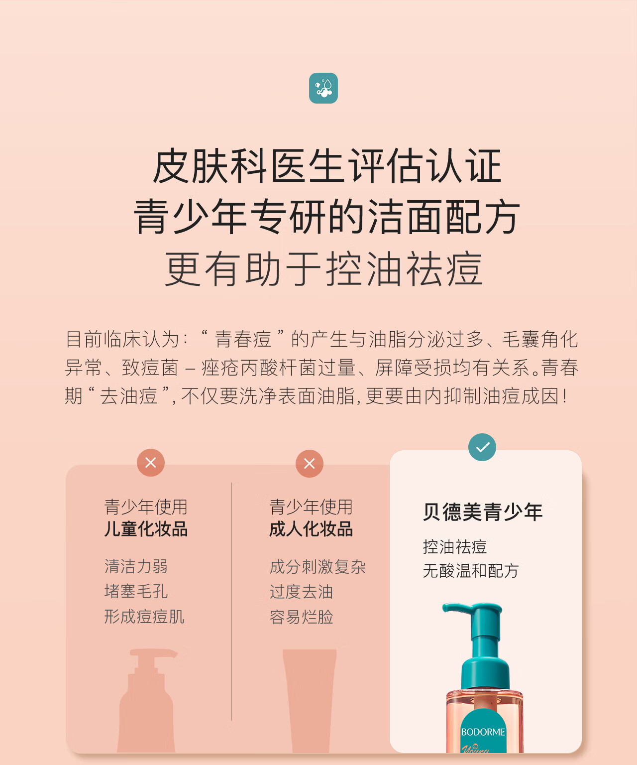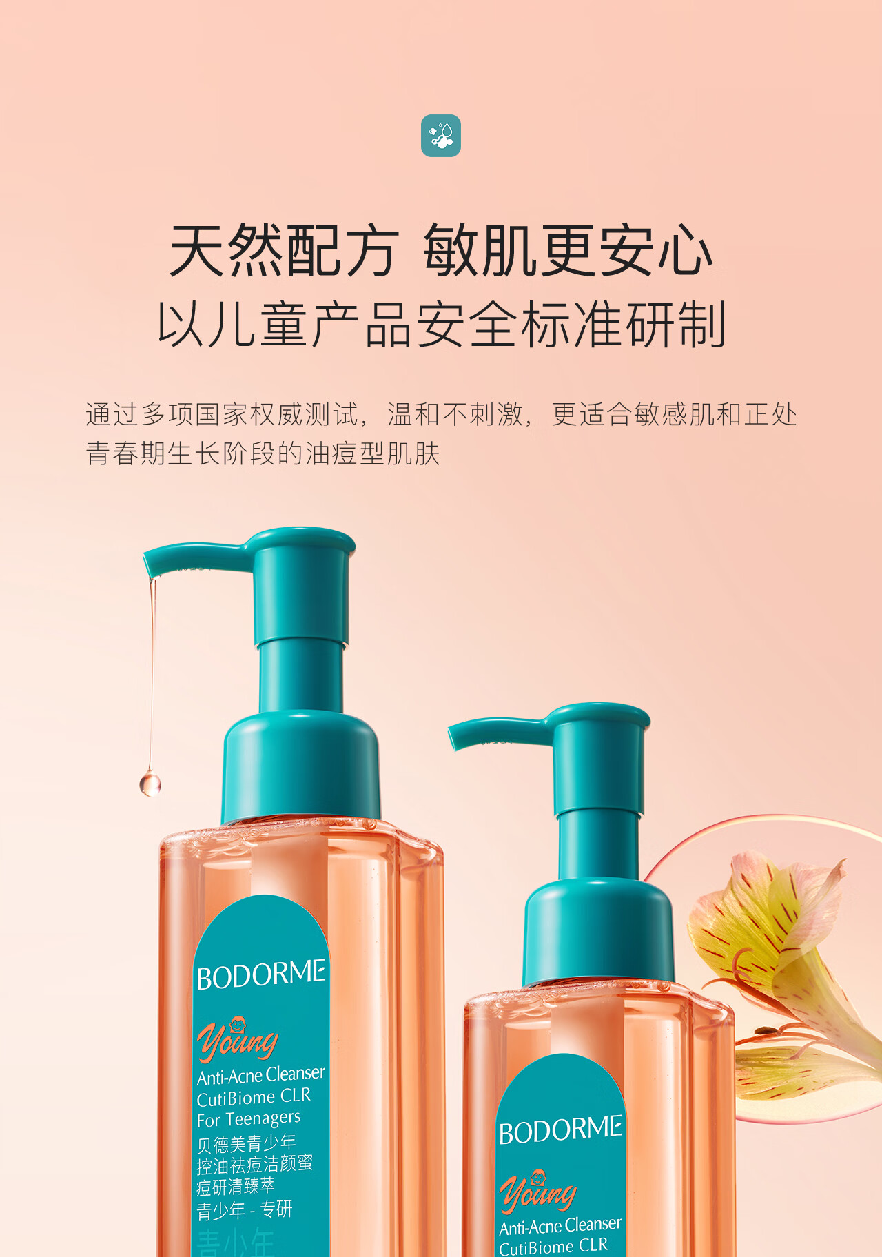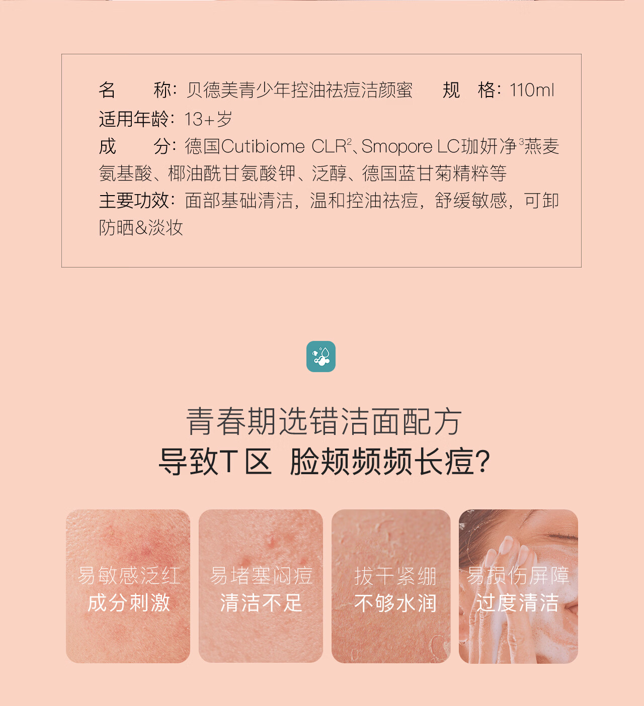 贝德美青少年洁面乳控油水套装温和洁净12岁以上男孩女孩学生110ml*2