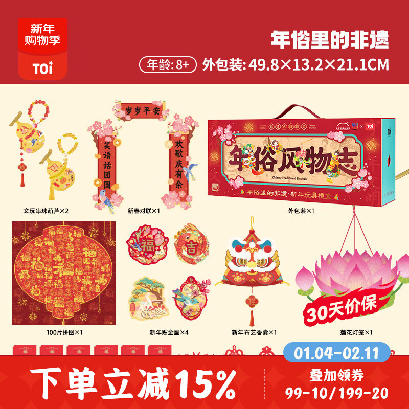 TOI国潮手工diy2025年新款非遗联名款儿童拼图玩具手工套装生日礼物 年俗里的非遗-新年玩具礼盒