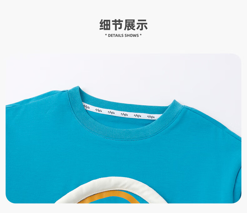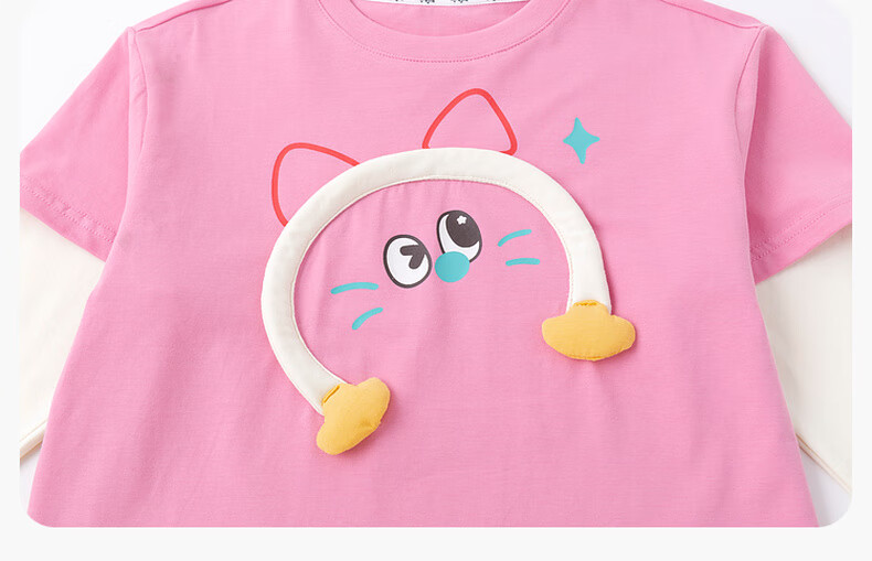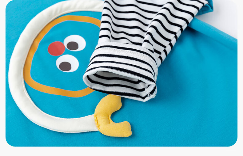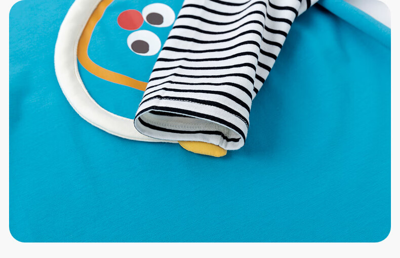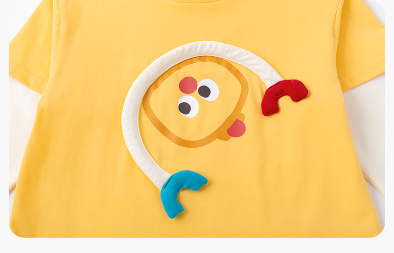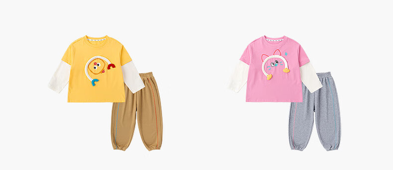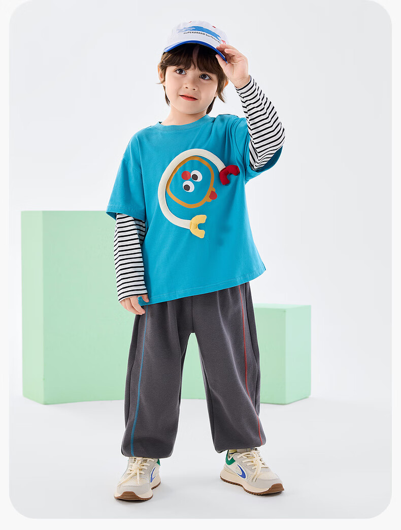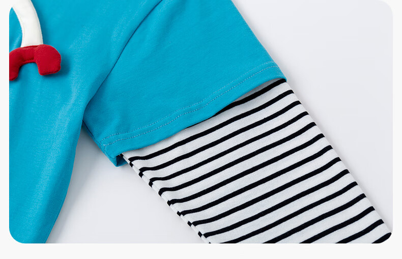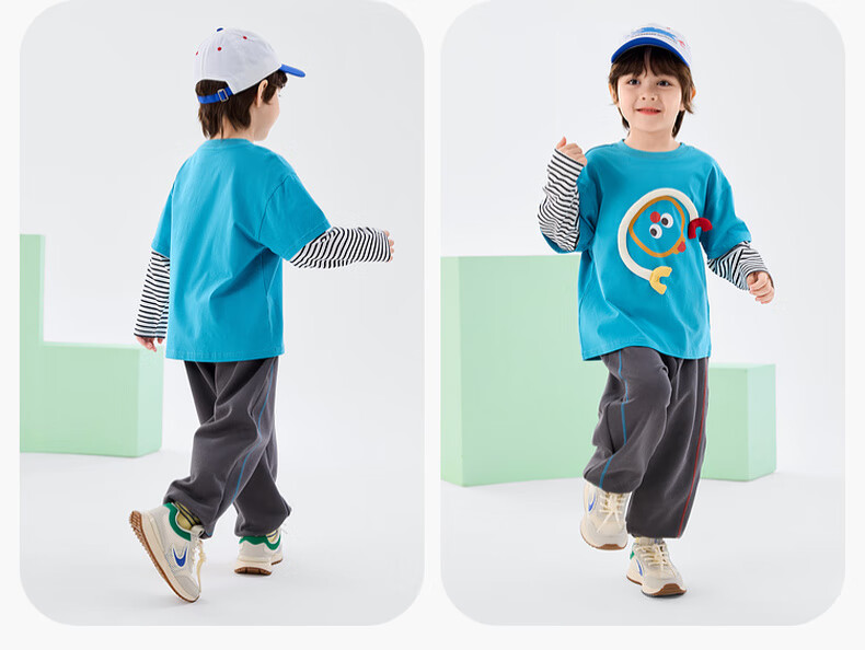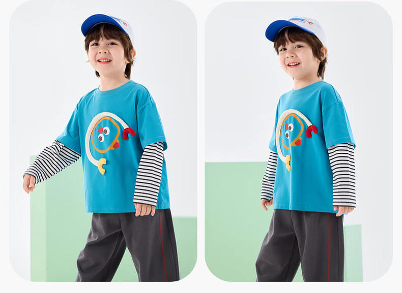 嘟嘟家男童春季卡通套装儿童透气假两件长袖T恤女童休闲针织裤子童装潮 比斯开蓝 100