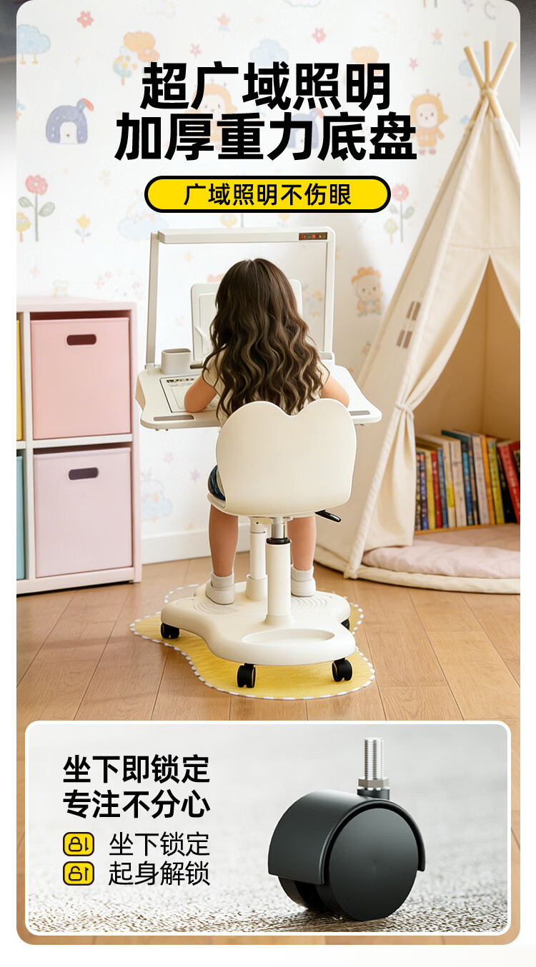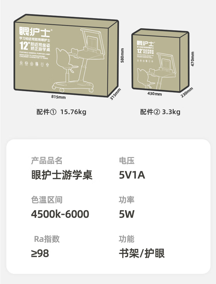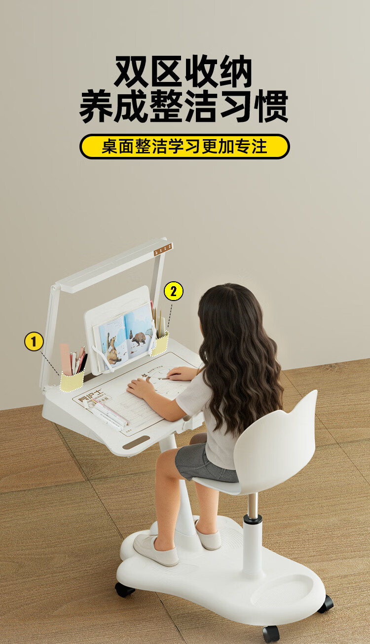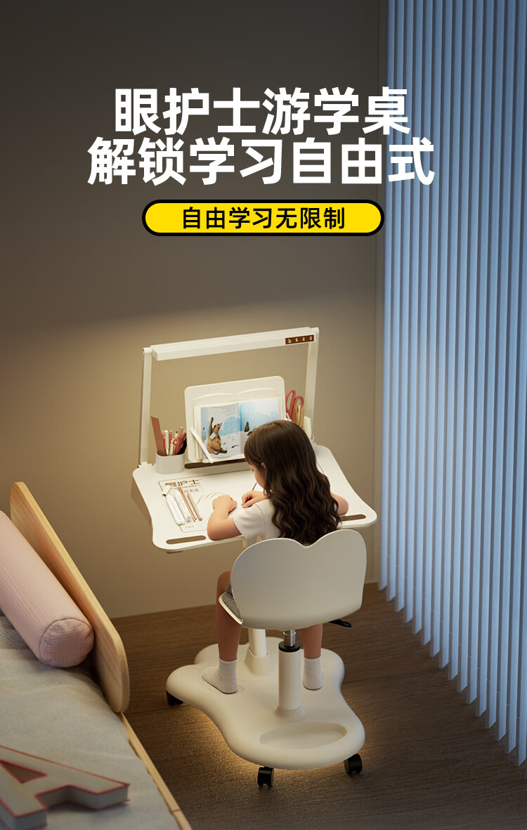 眼护士小学生坐姿矫正器儿童书桌写字姿势矫正器防驼背写作业坐姿纠正器桌面款视力保护器防低头支架护眼 【国AA级护眼款】眼护士一体桌-桌椅可移动可升降
