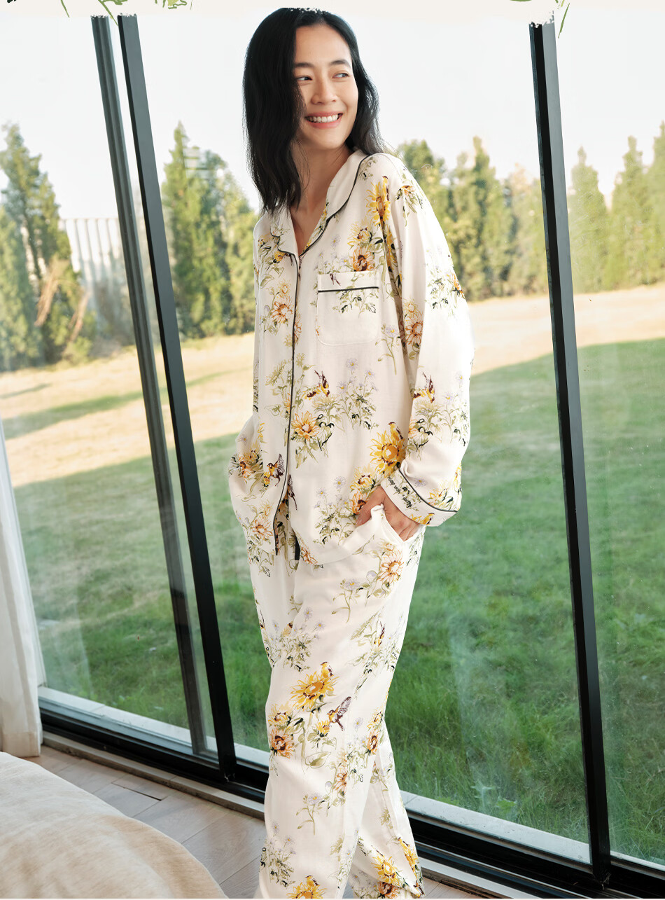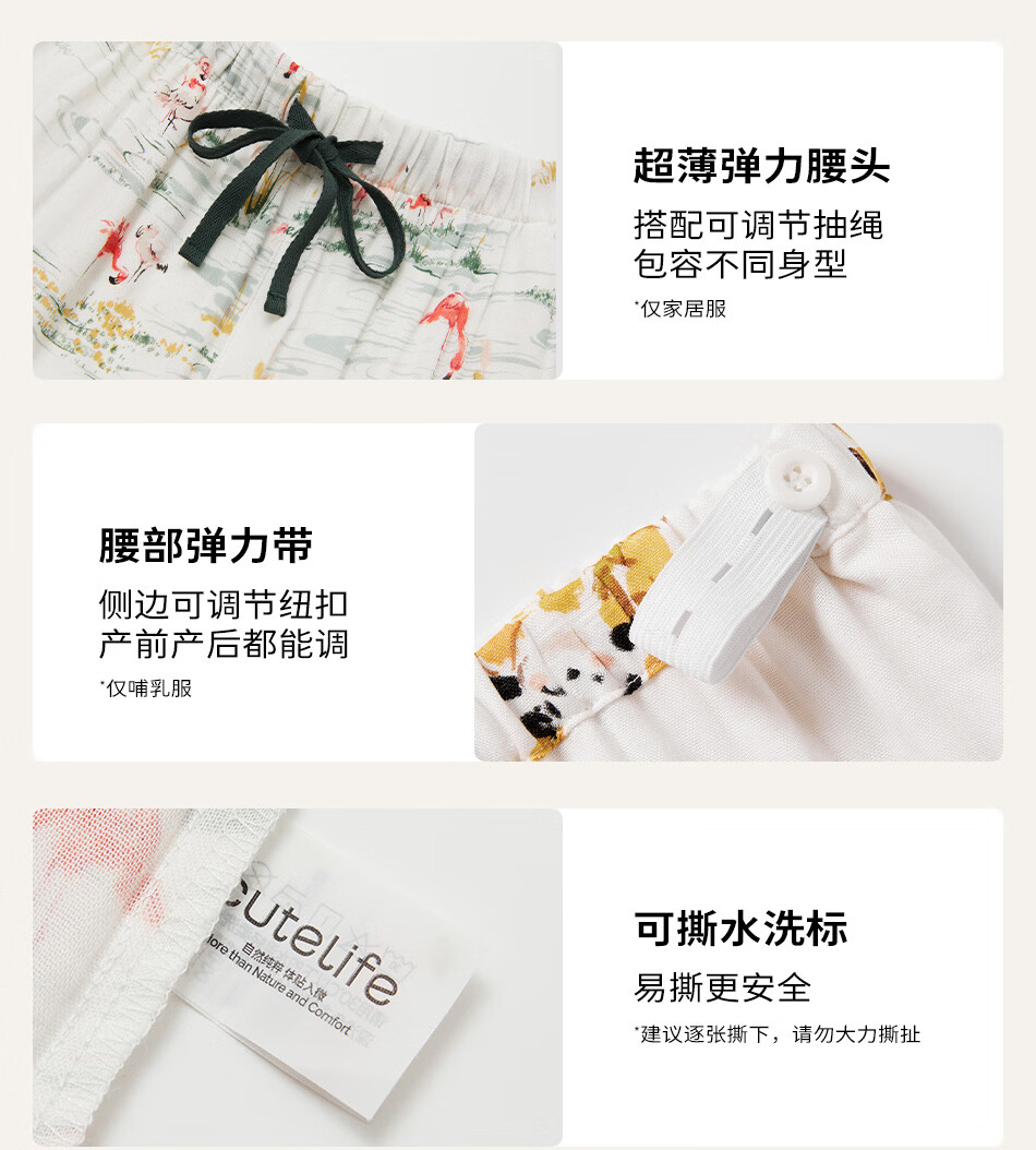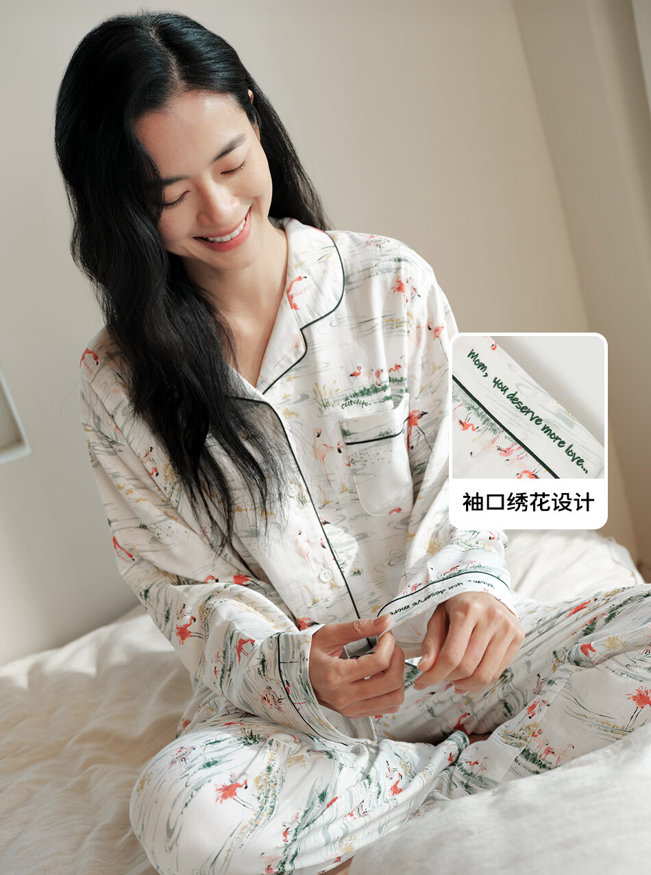 Cutelife女士竹棉月子哺乳衣家居服新花色春夏四季舒适孕妇装产后睡衣套装 【双层家居服】忽而春光 M码【推荐50-65kg】