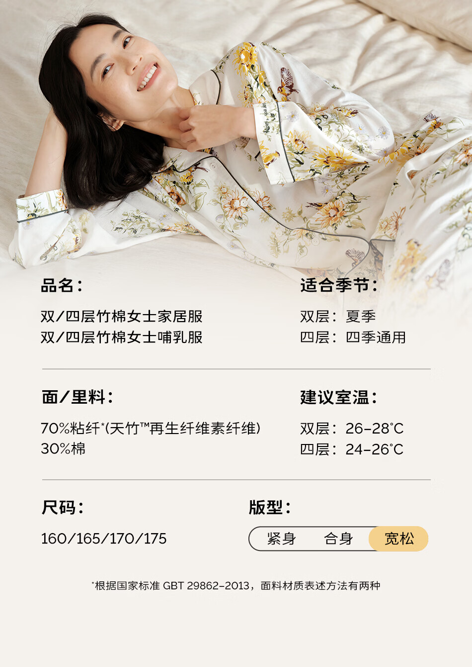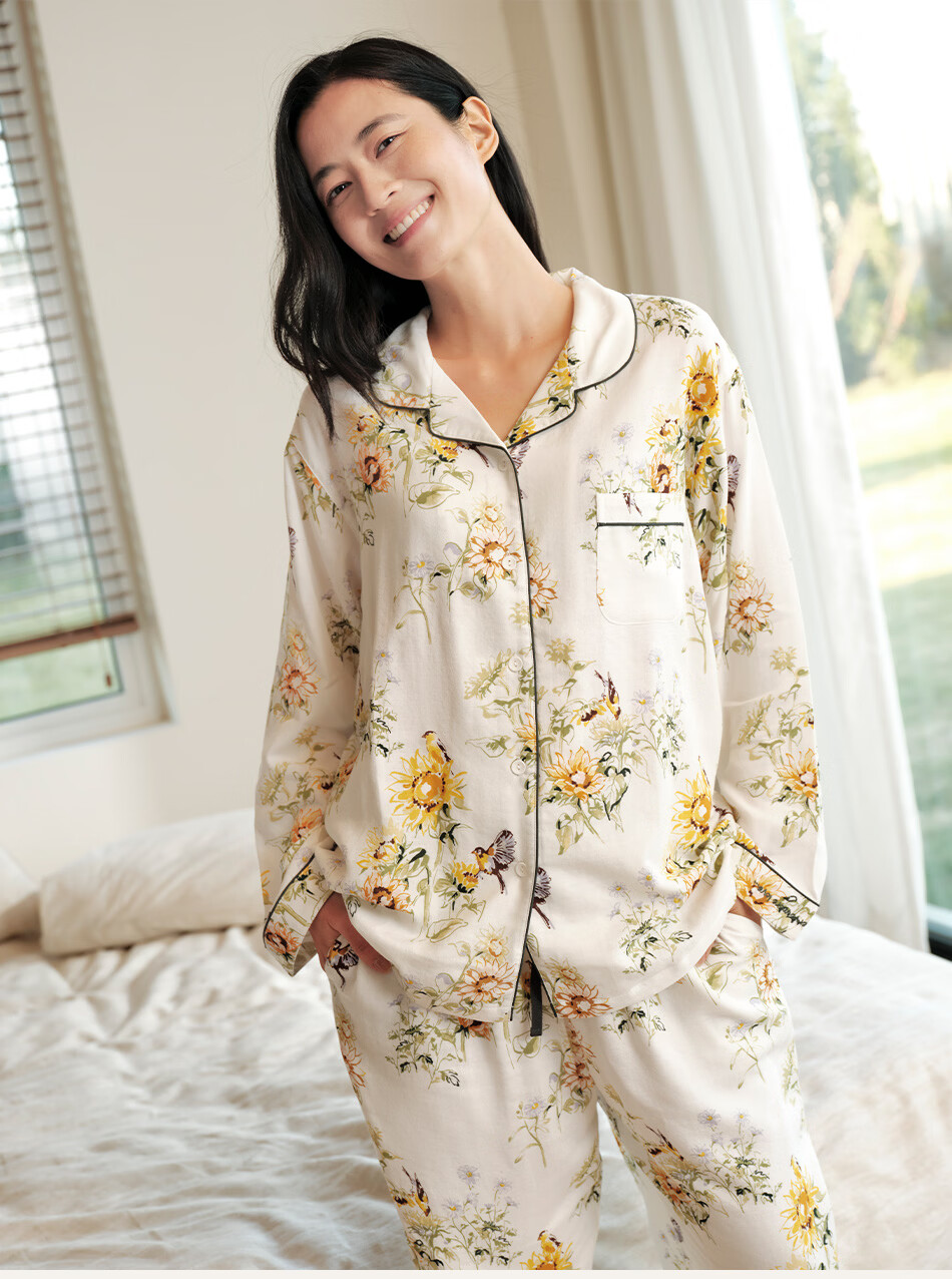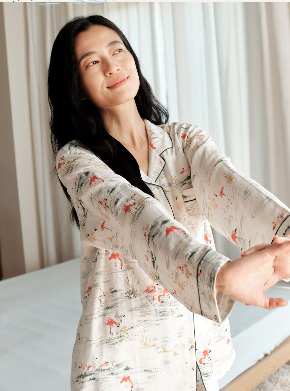 Cutelife女士竹棉月子哺乳衣家居服新花色春夏四季舒适孕妇装产后睡衣套装 【双层家居服】忽而春光 M码【推荐50-65kg】
