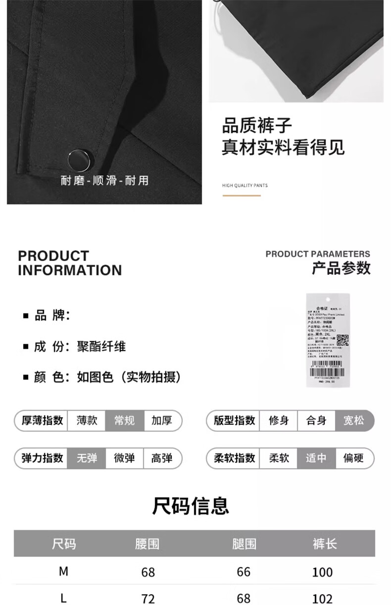 JEEP SPIRIT吉普冲锋裤男春秋季新款三防休闲裤子男户外宽松直筒长裤 黑色 2XL (建议150-165斤)