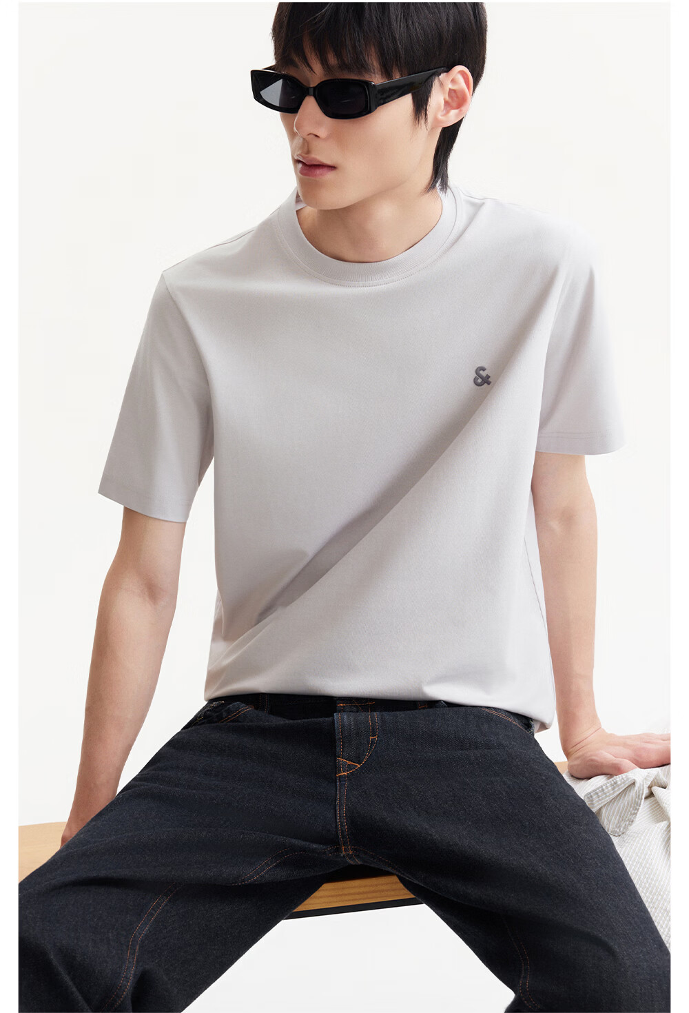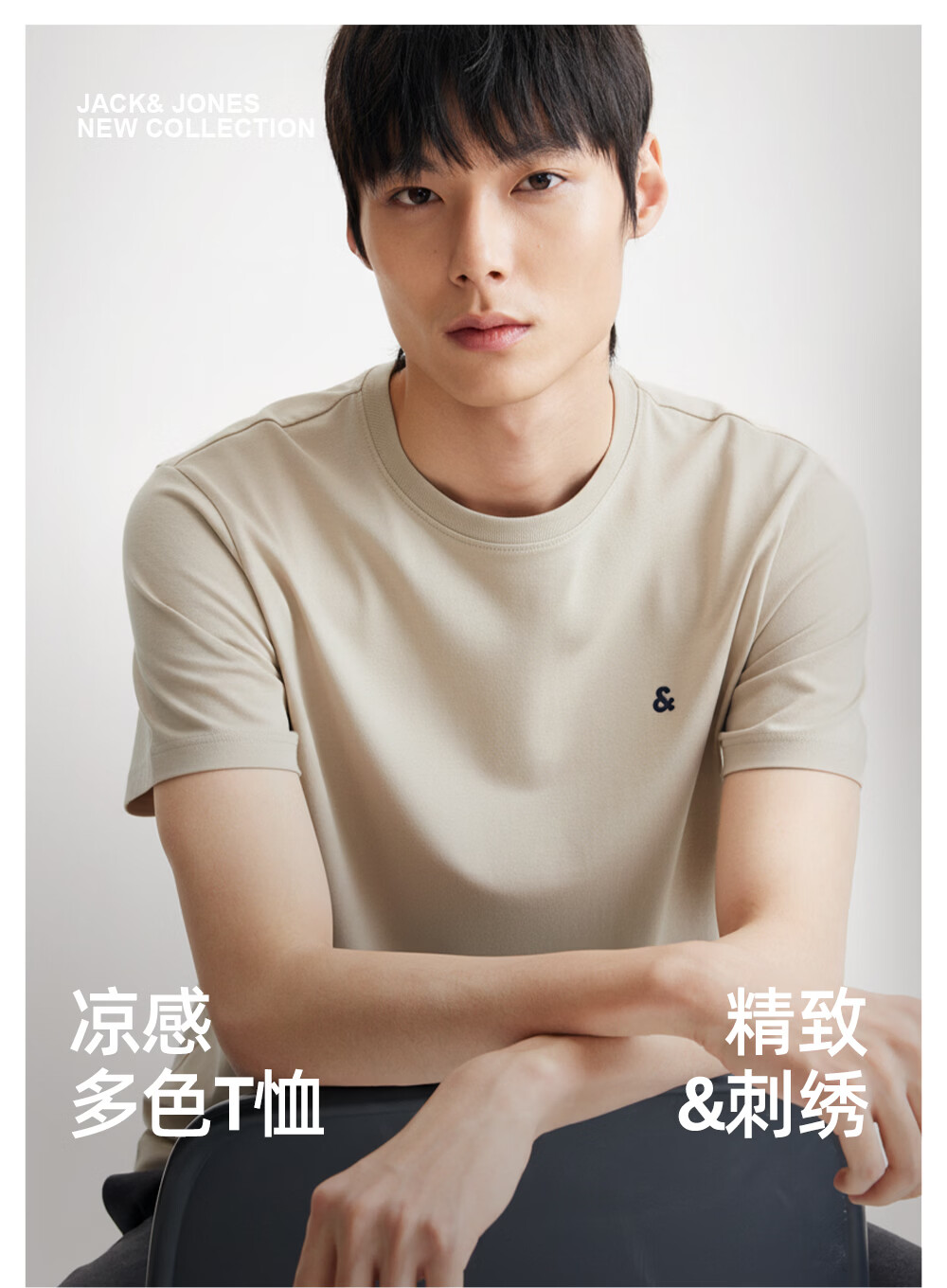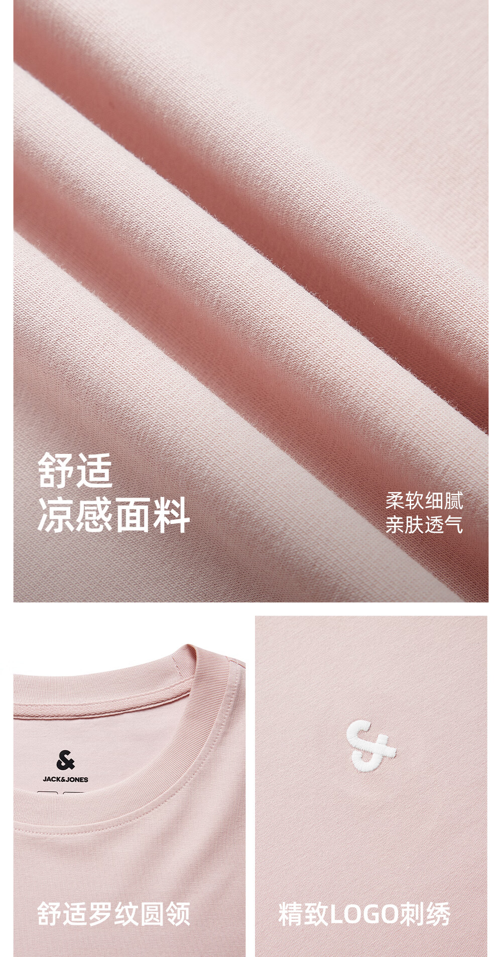 杰克·琼斯(JACK&JONES)26年男装四季打底T恤男士凉感透气多色情侣款短袖t恤水洗不易走形 白色A06 M 175