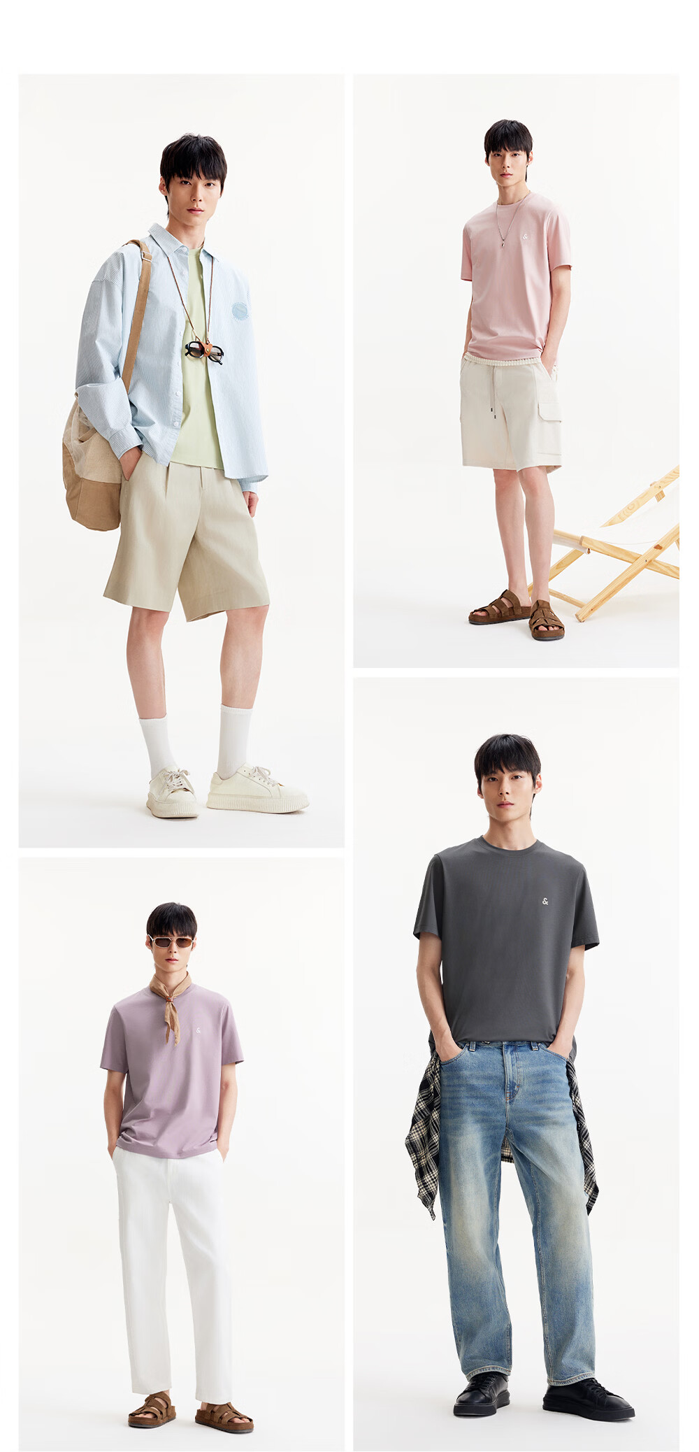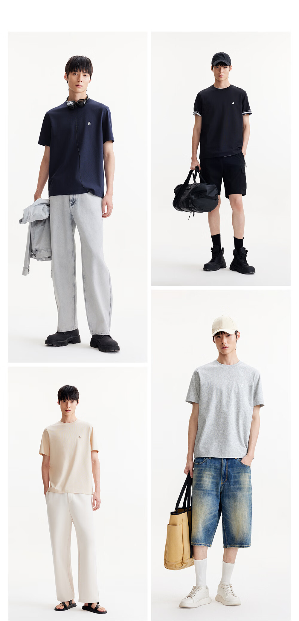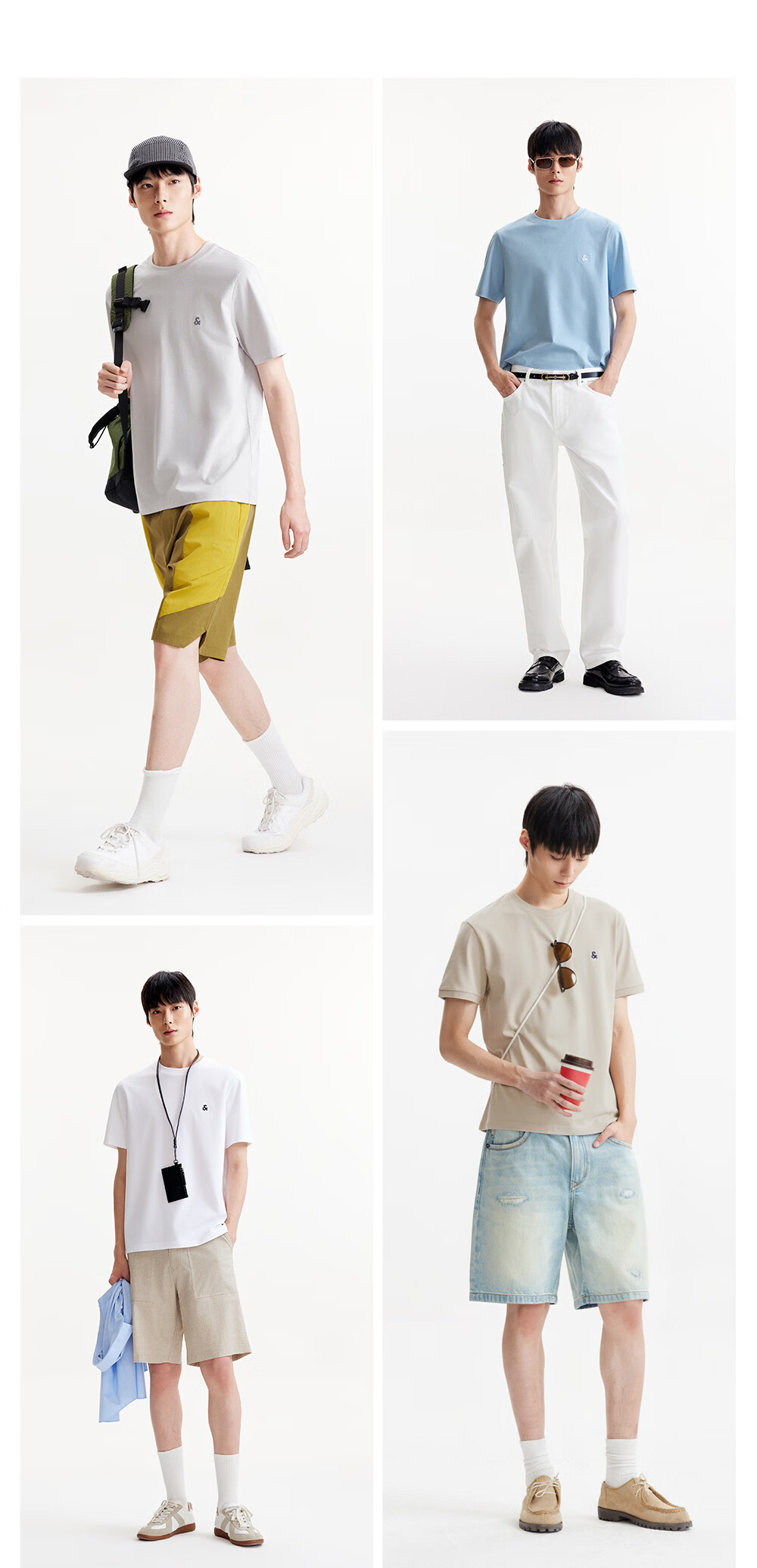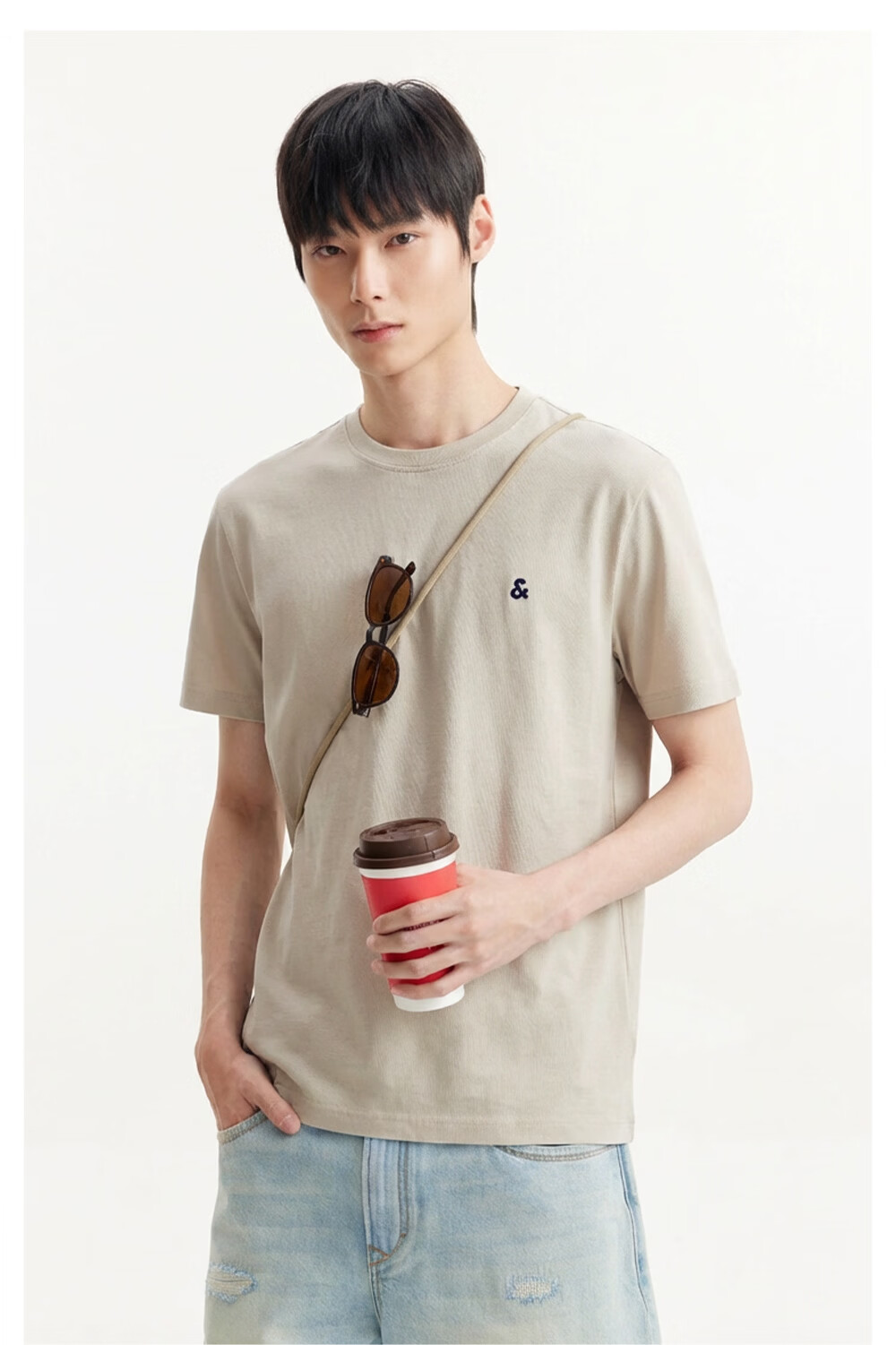 杰克·琼斯(JACK&JONES)26年男装四季打底T恤男士凉感透气多色情侣款短袖t恤水洗不易走形 白色A06 M 175