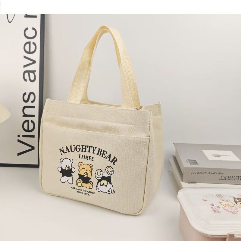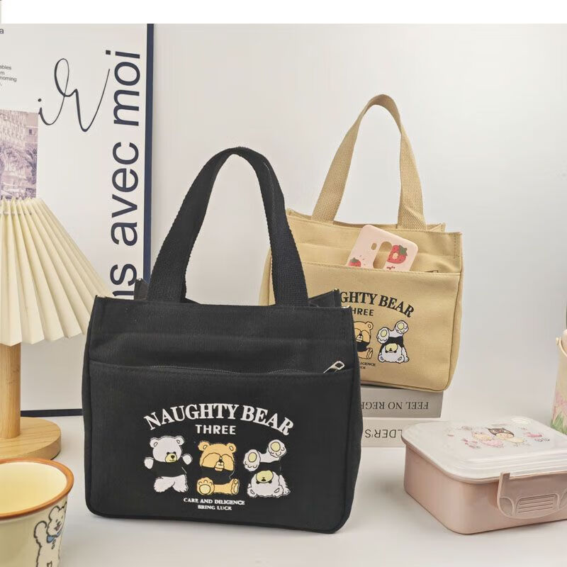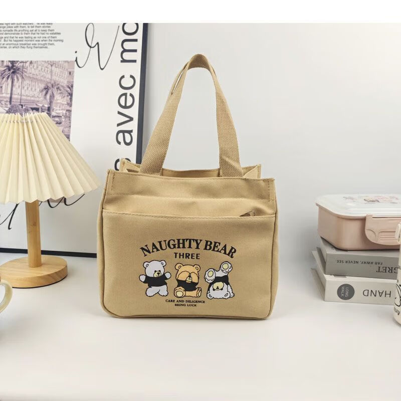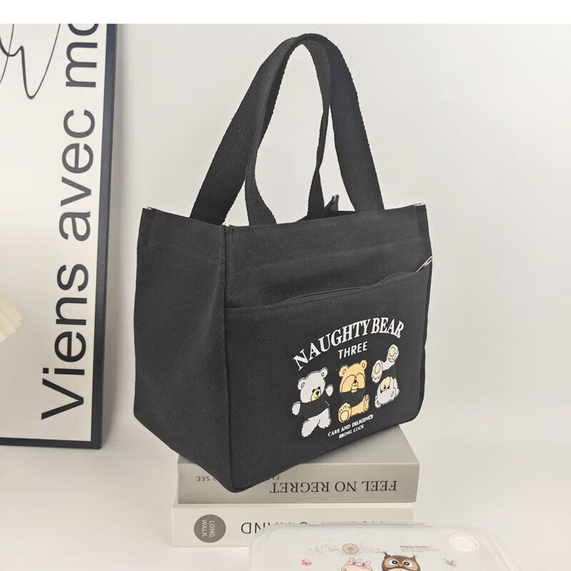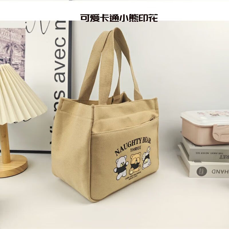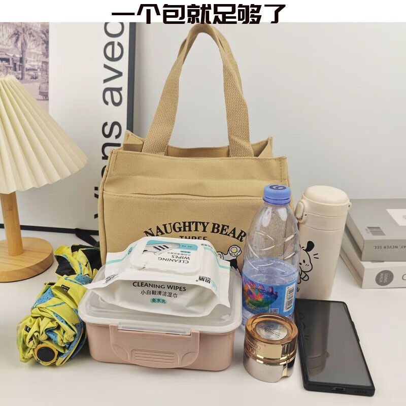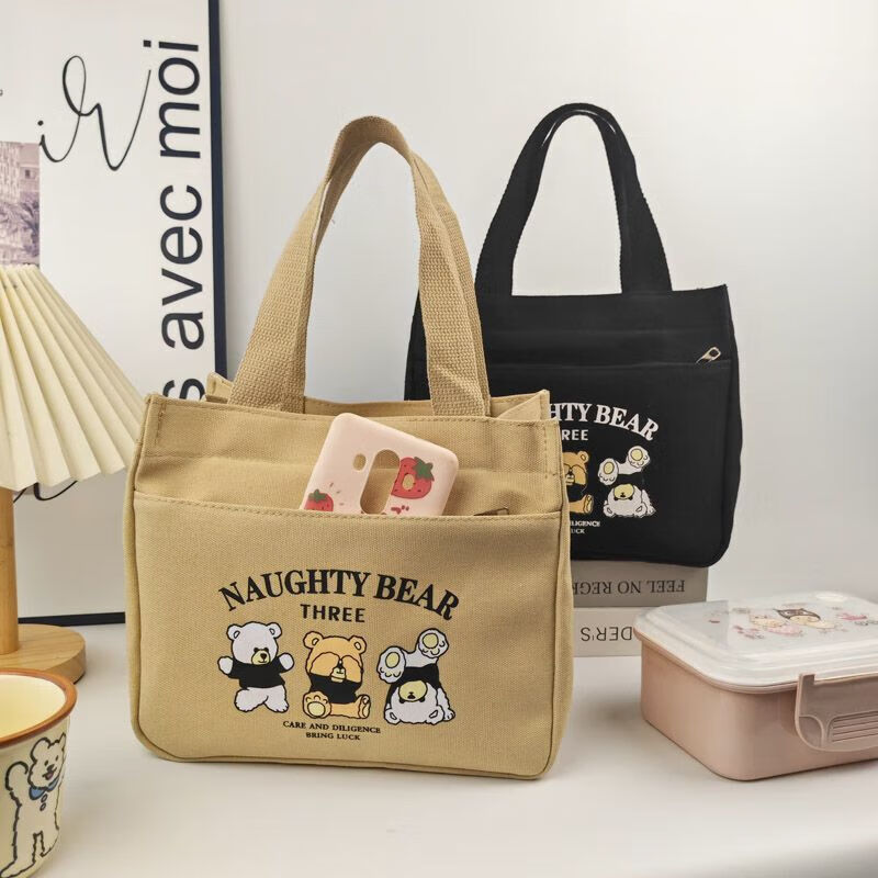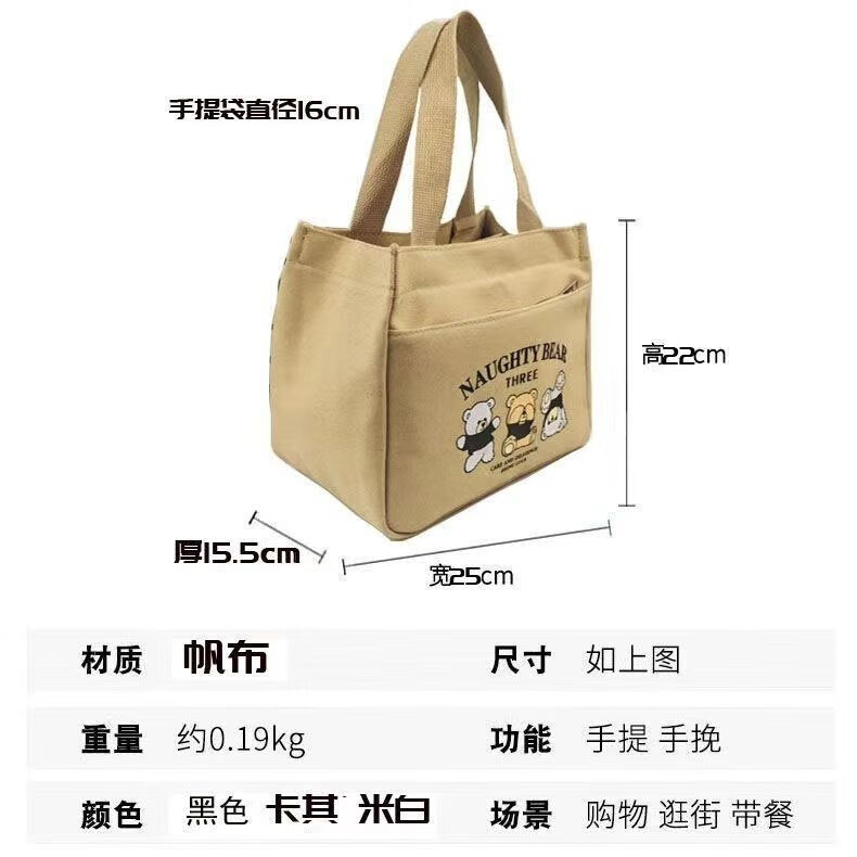 橙央新款帆布手提包帆布大容量简约上班族学生百搭饭盒妈咪上班便当袋 小猫手提斜挎包