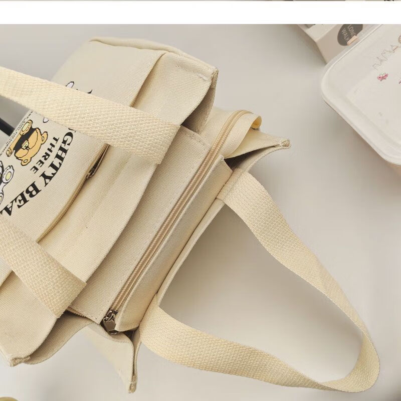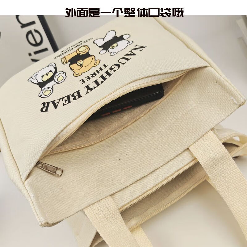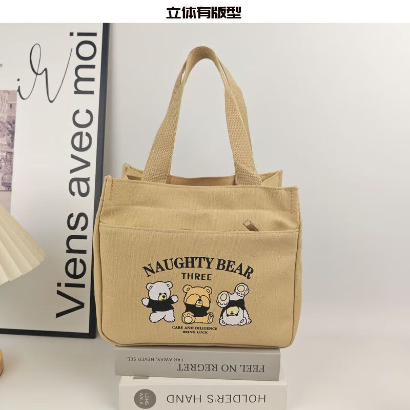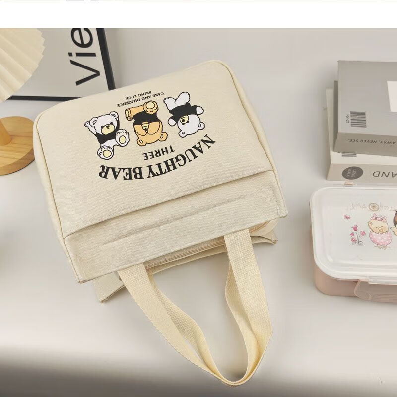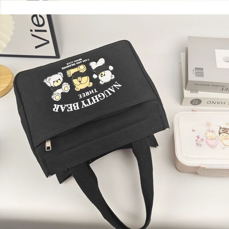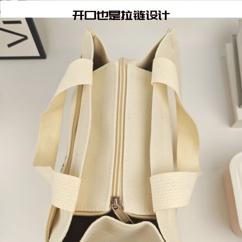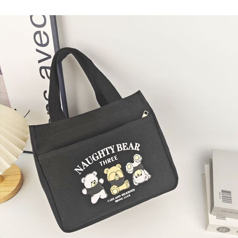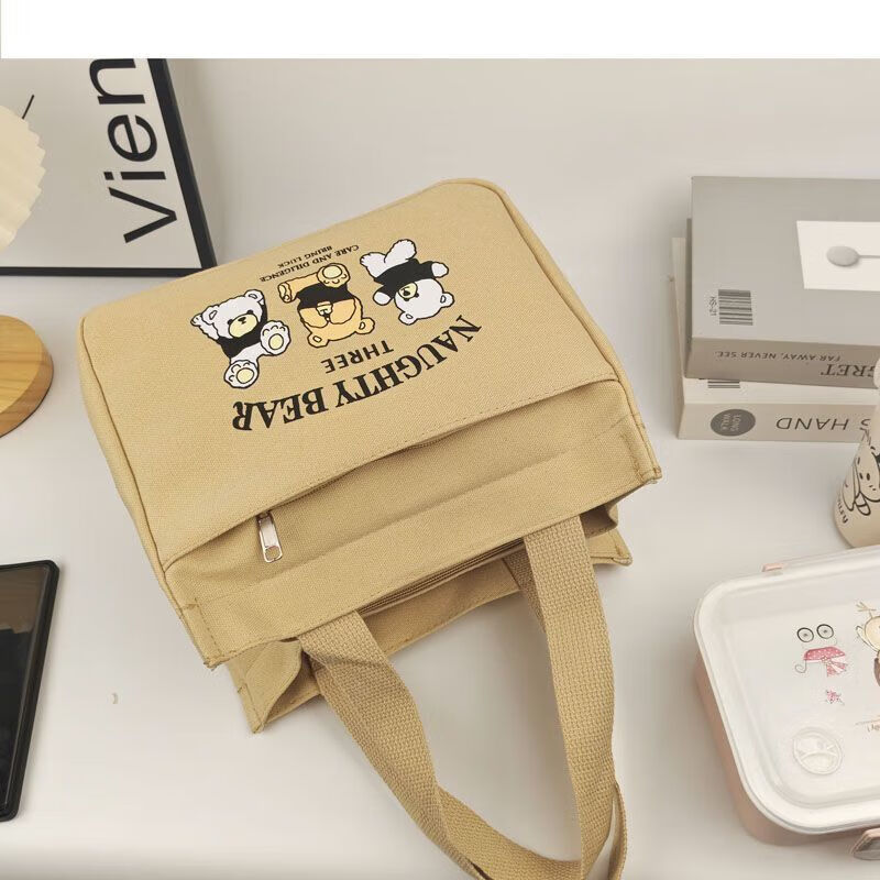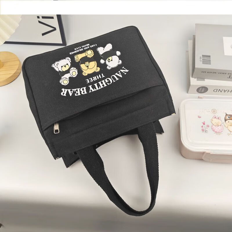 橙央新款帆布手提包帆布大容量简约上班族学生百搭饭盒妈咪上班便当袋 小猫手提斜挎包